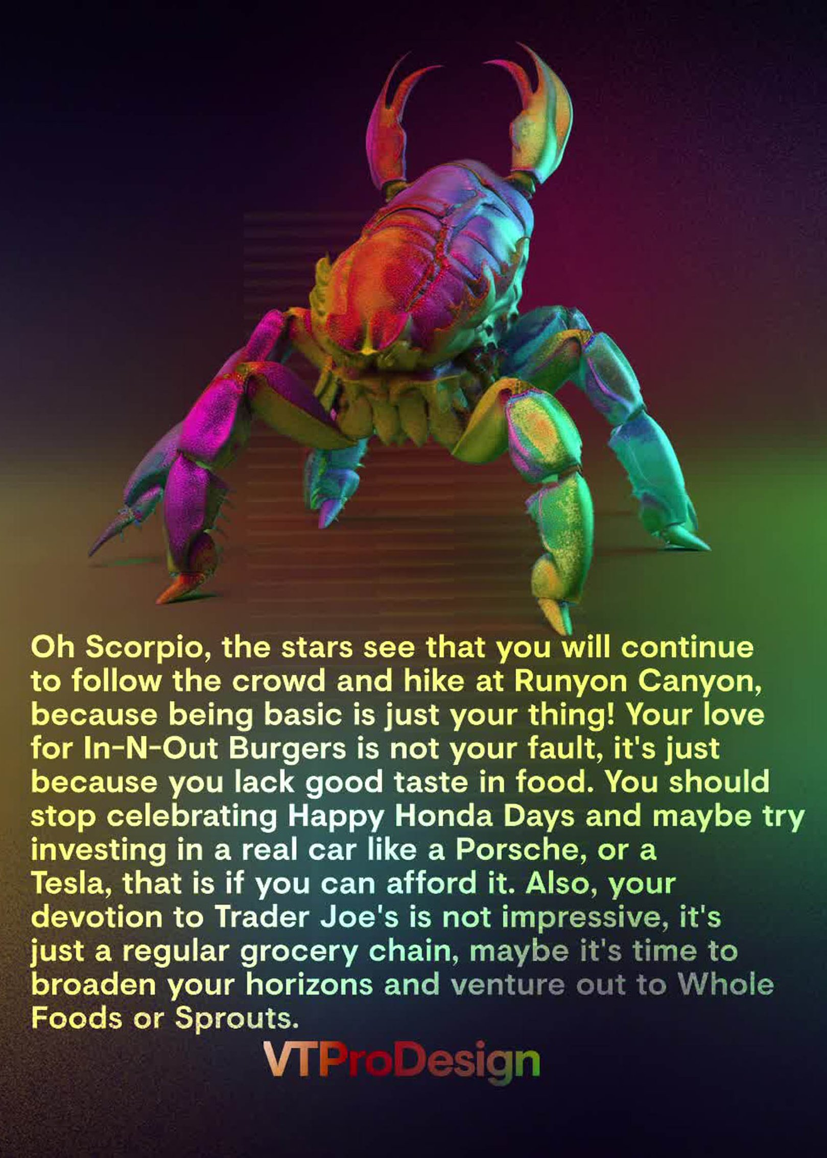 Sarcasm and Scathing Predictions4036 Have you ever wanted your horoscope to be sarcastic, scathing, and downright rude? Look no further! We at VTProDesign have put together an AI horoscope generator that will have you rolling your eyes and laughing at the same time.