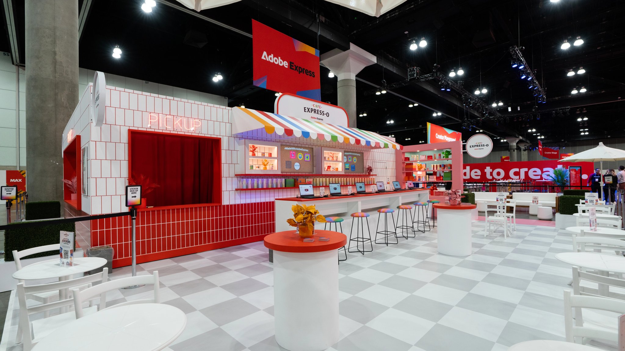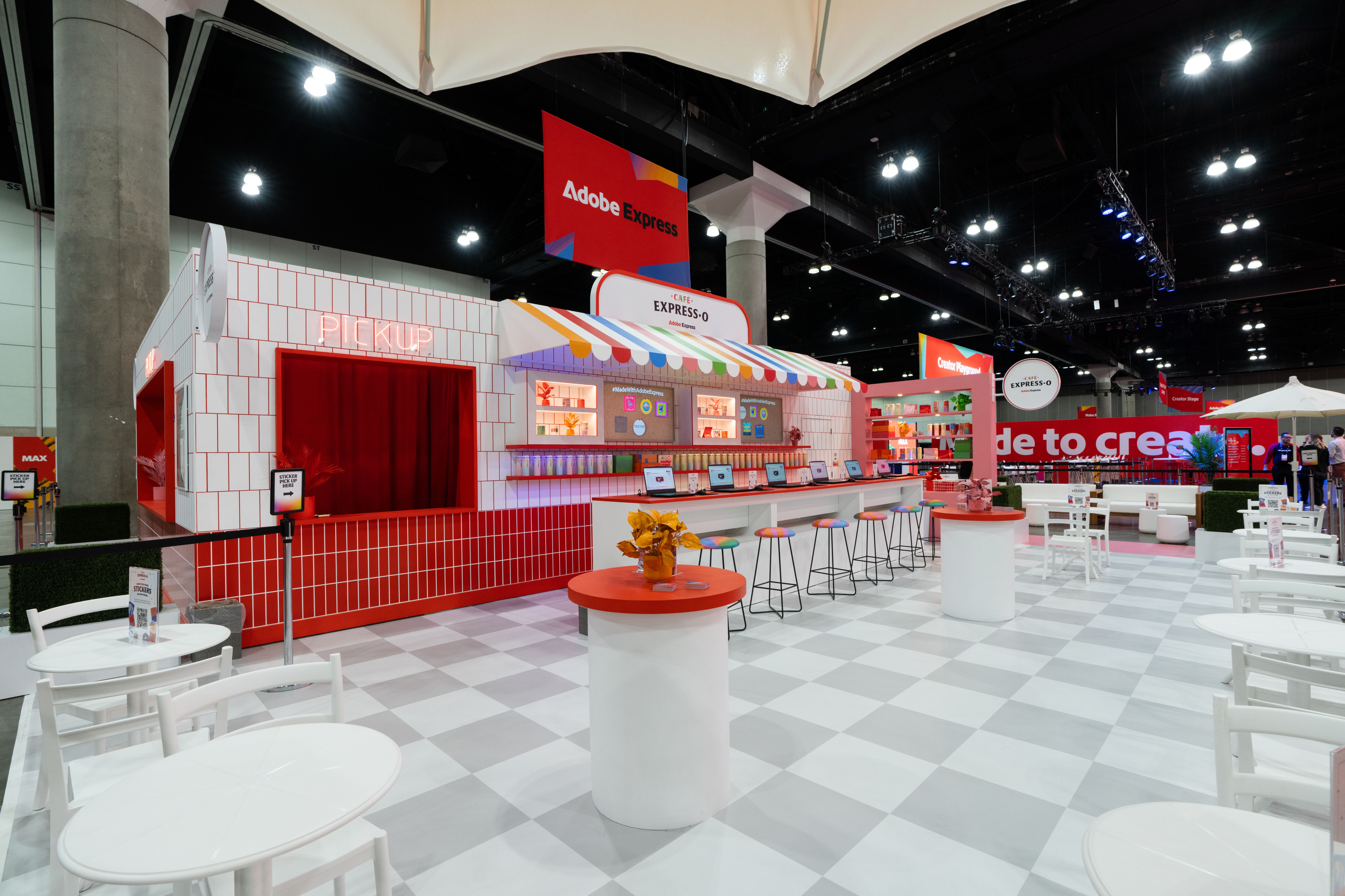 Café Express-O4038 What happens when you mix caffeine with creativity? For Adobe MAX 2025, we found out—by brewing Café Express-O, a one-of-a-kind café experience that turned Adobe Express into something you could sit with, sip on, and create inside of. This was our third year bringing the Adobe Express story to life at MAX, and we wanted this chapter to feel especially welcoming. Not a booth. Not a demo. A place you actually wanted to hang out. Café Express-O reframed Adobe Express as part of a daily creative ritual—fast, social, and effortlessly human.