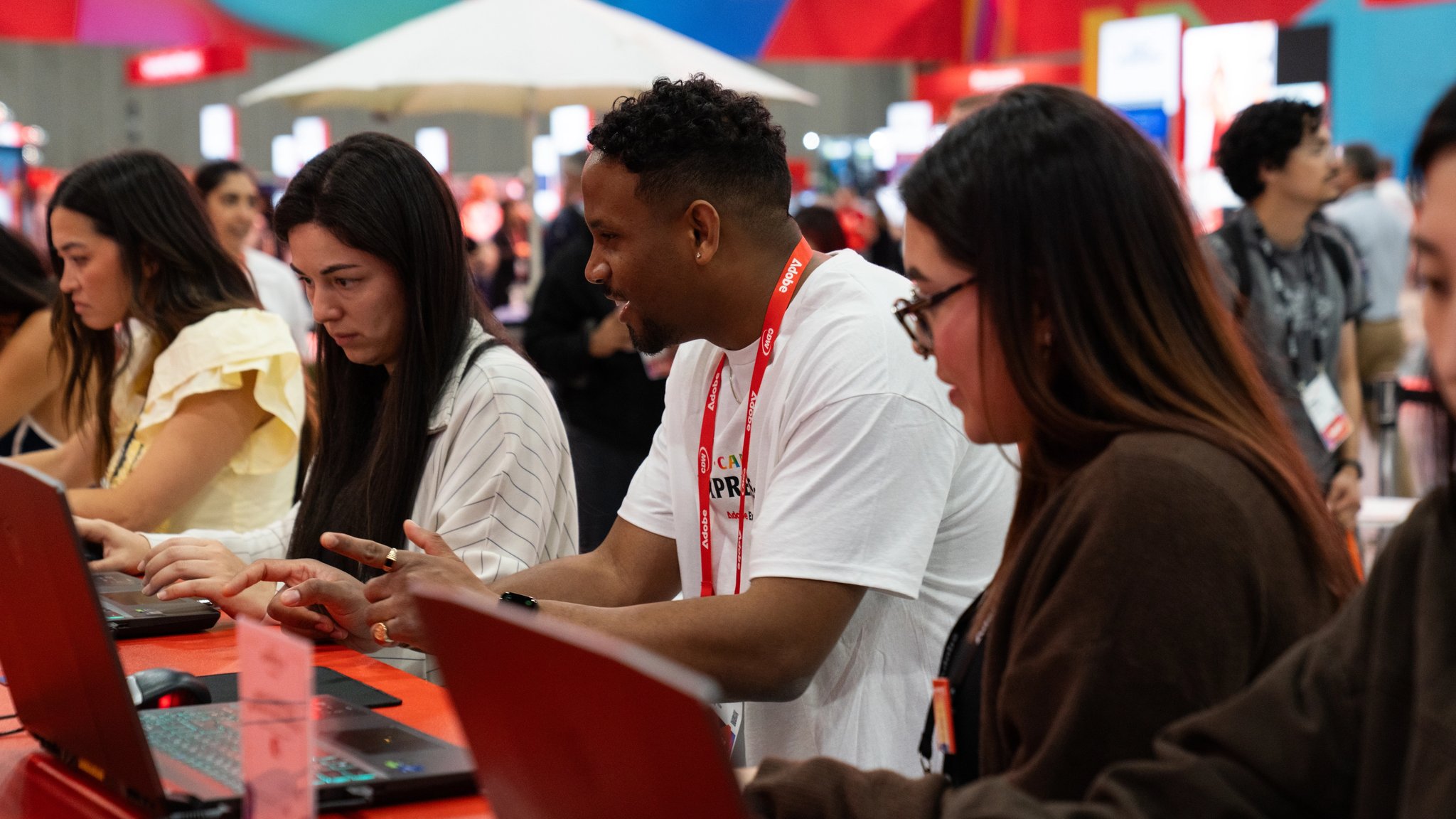 At the center of the space, attendees jumped onto demo laptops and designed in Adobe Express in real time. Stickers came together in minutes. Hit print, and those digital ideas became physical takeaways—right there, no friction, no overthinking. Creativity moved at the same pace as the crowd.
