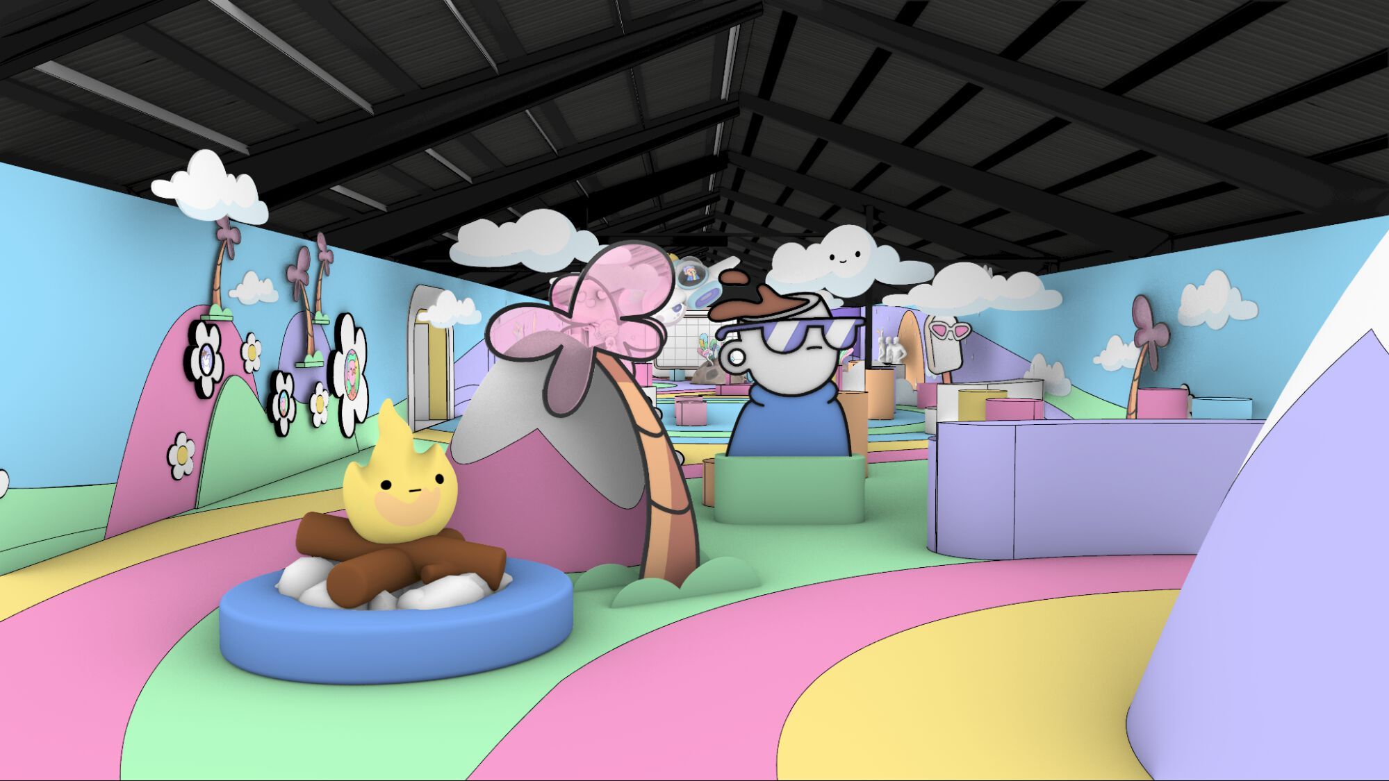 To accomplish our mission, we cultivated a vibrant holographic pastel rainbow color scheme for the activation using matte paint, powder coating, frosted acrylic, and inflatable fixtures. We kept our design consistent with Burnt Toast’s style to preserve the vision of Doodles in our activation.