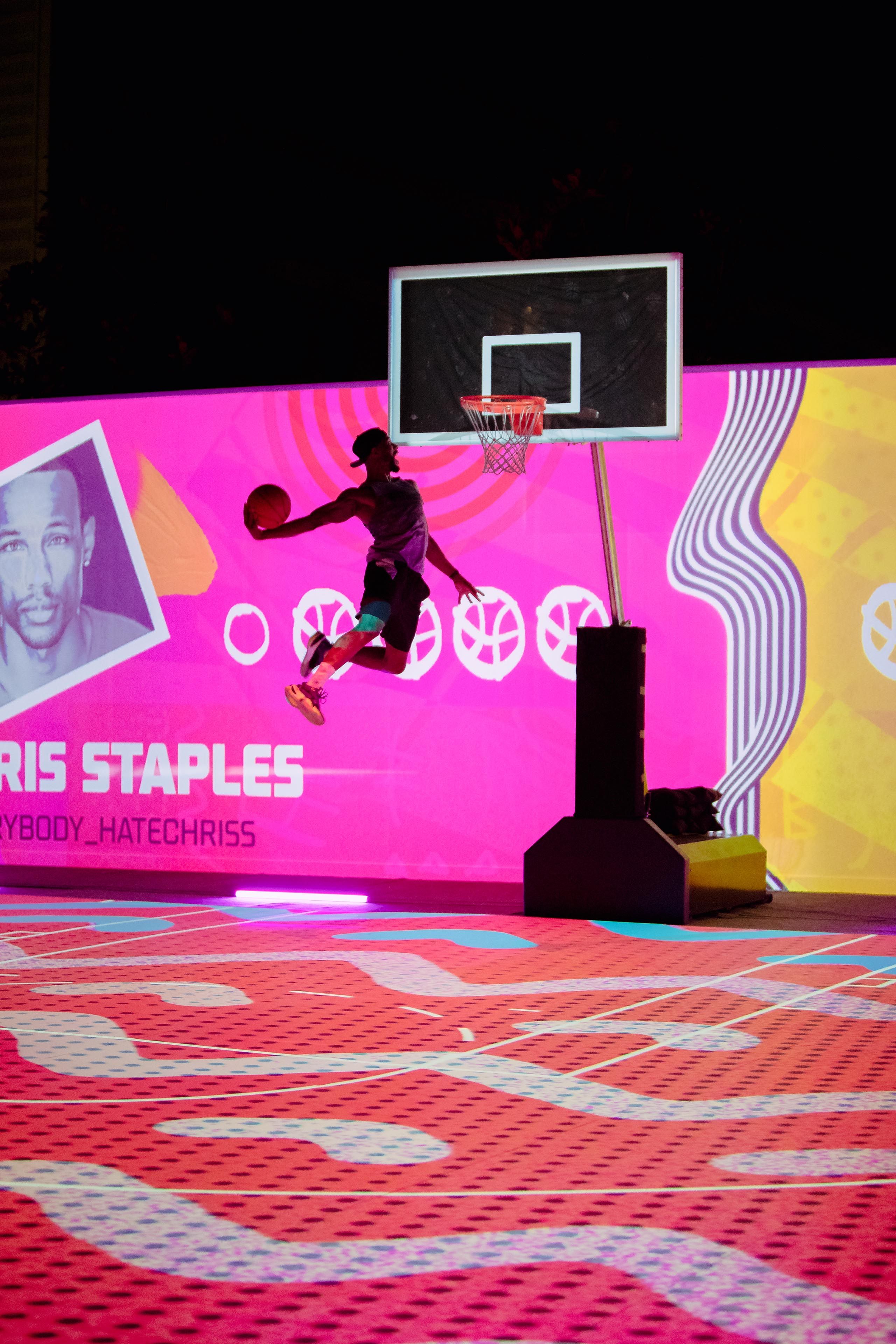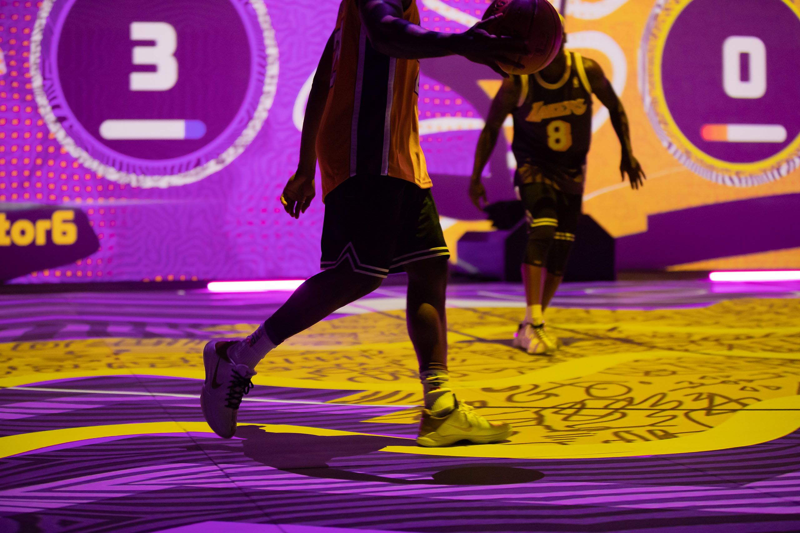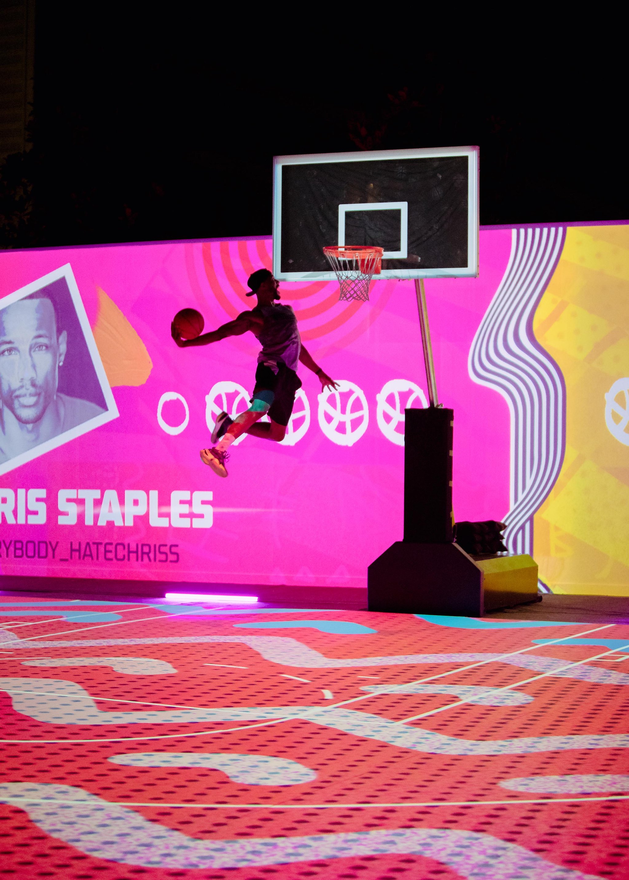 Each night, influencer cameos were motivated by a unique theme: NBA, WNBA, and a Kobe Bryant tribute. For each influencer showcase, we created a different interactive basketball game with theme-specific imagery to drive the Visual Engine for each day.