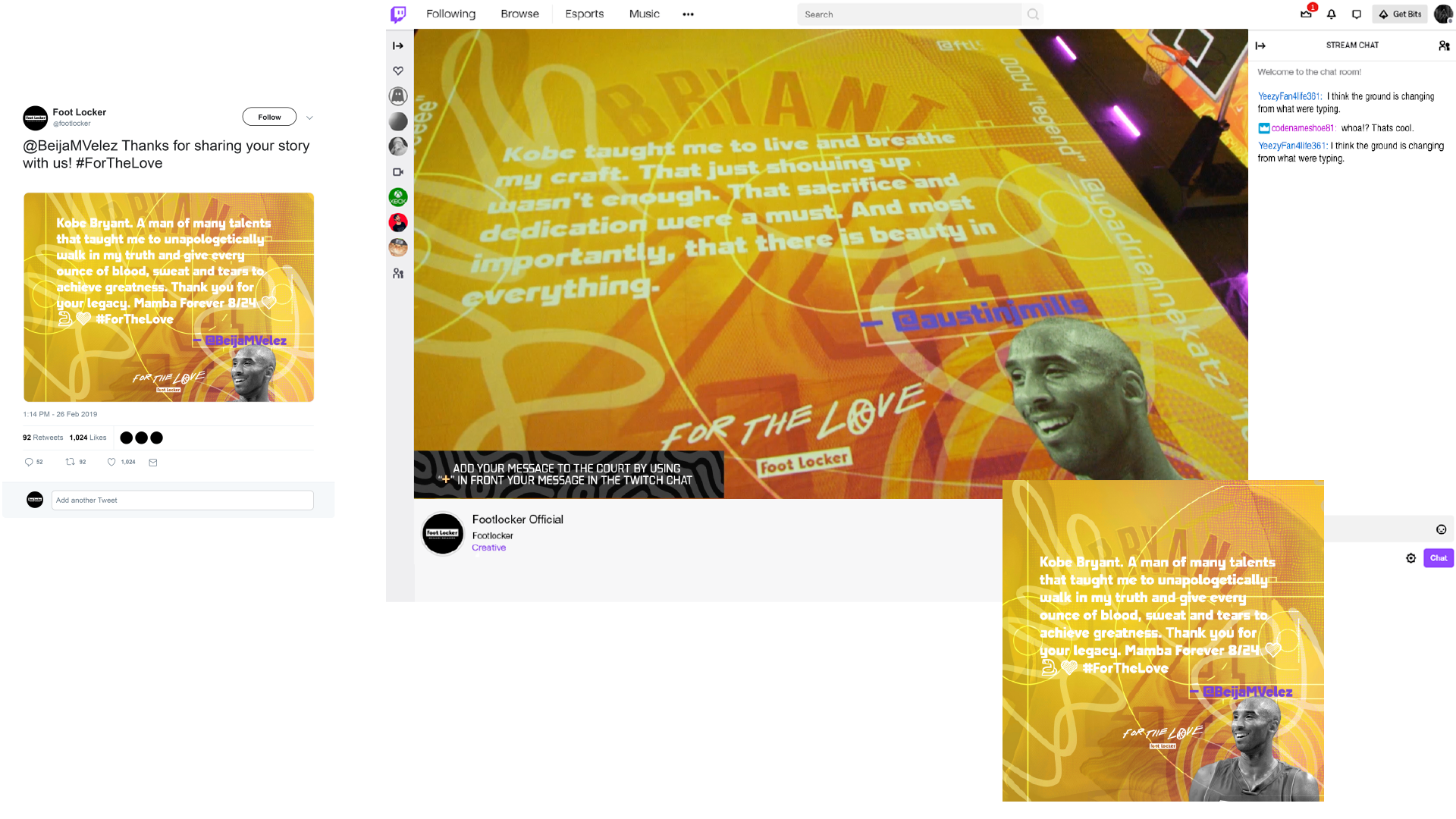 Our first program “Digital Poster” prompted the at home audience to answer what basketball culture means to them by tweeting @Footlocker and using the hashtag #ForTheLove.