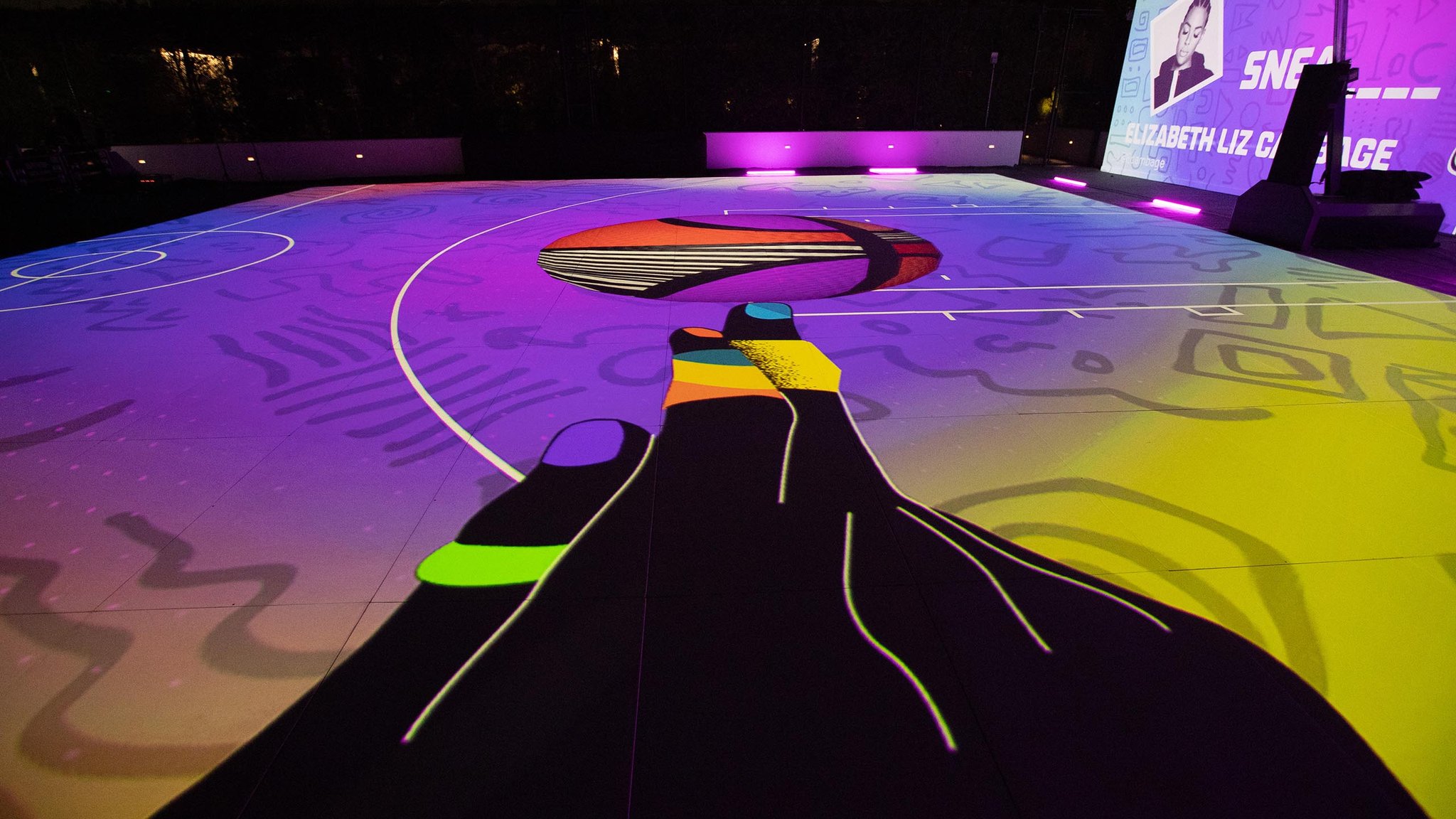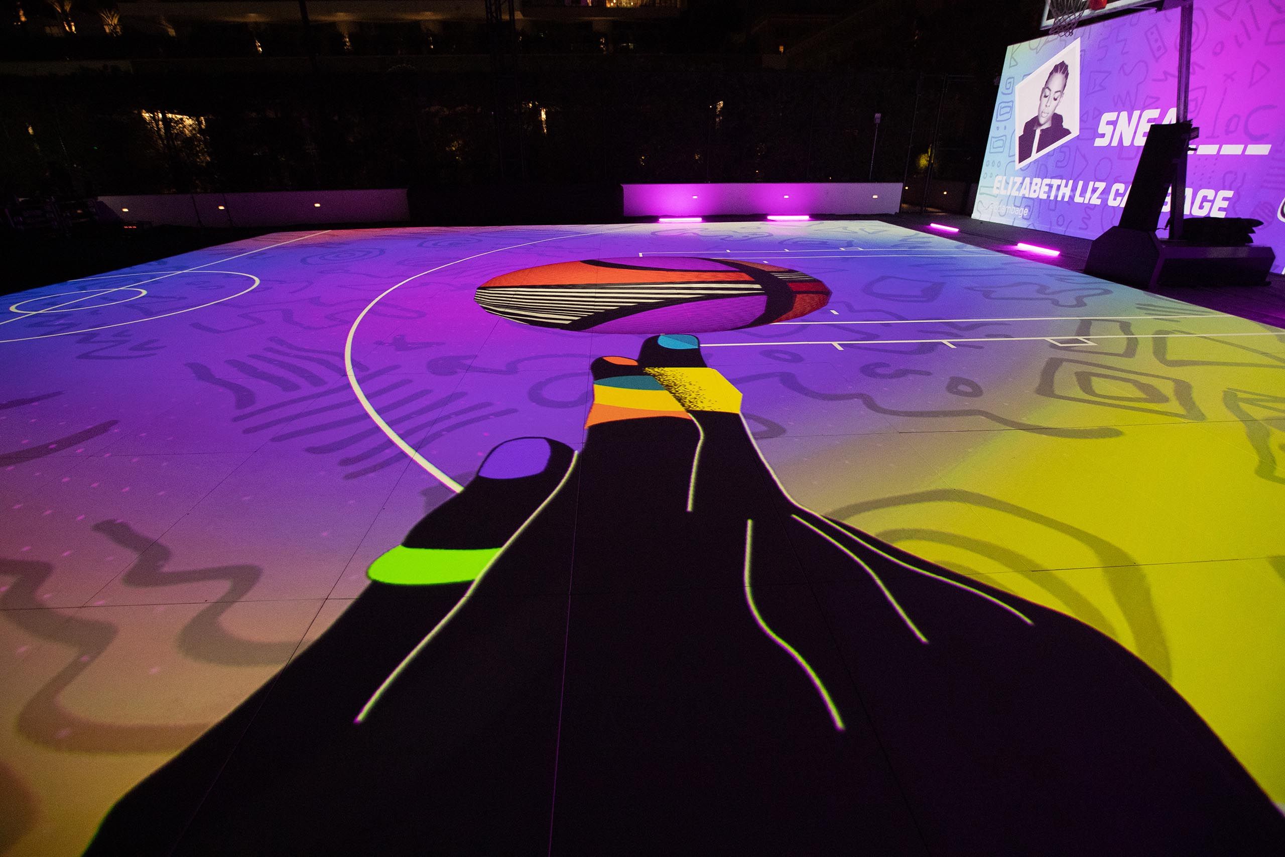 To tell this story, we created a collaborative on-court art canvas, fueled by creativity and the love of the game. Our Temi Coker-inspired Visual Engine provided expressive tools for capturing user input and interpreting it to compose unique designs that were projected on a basketball court in real-time.