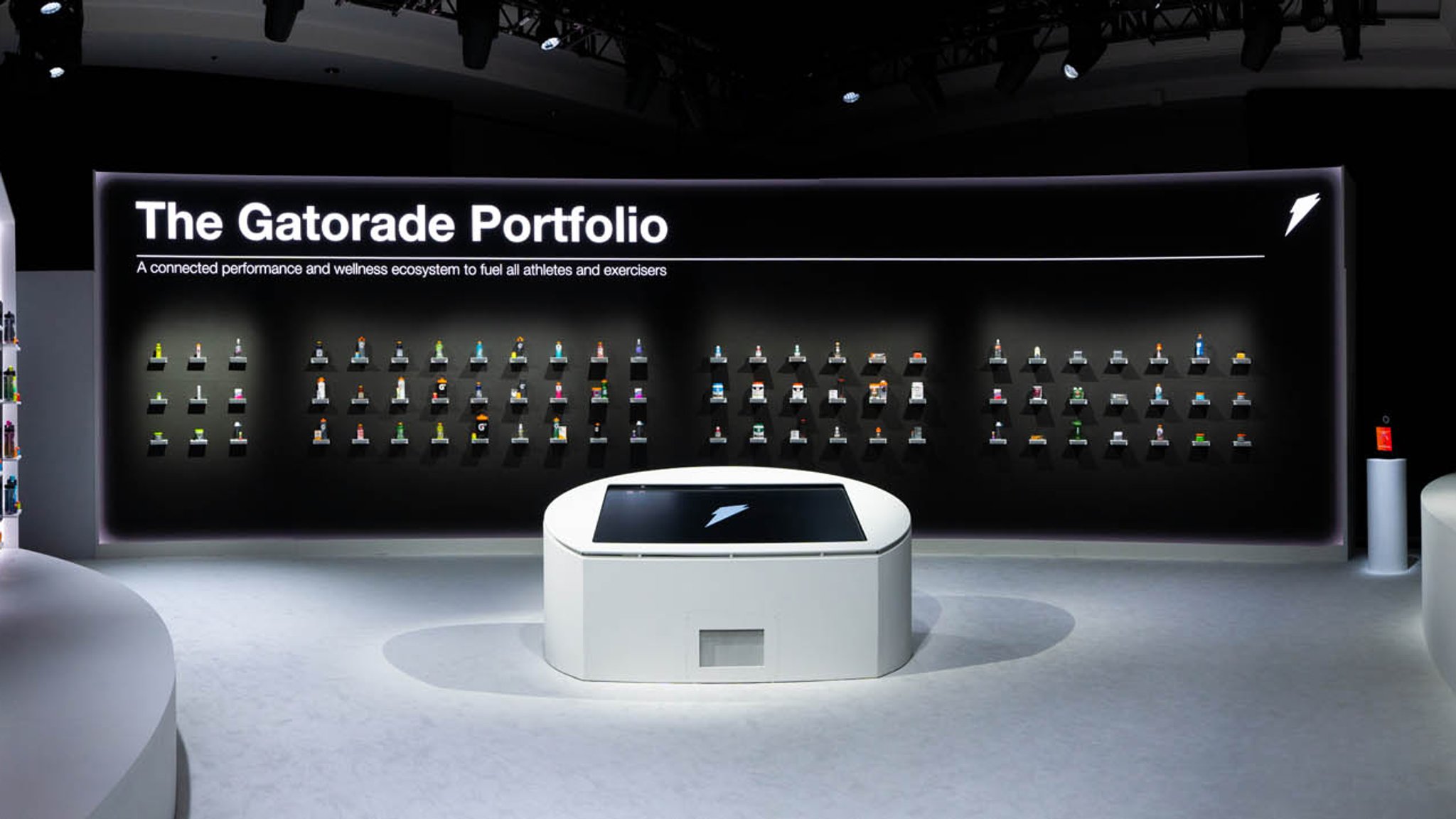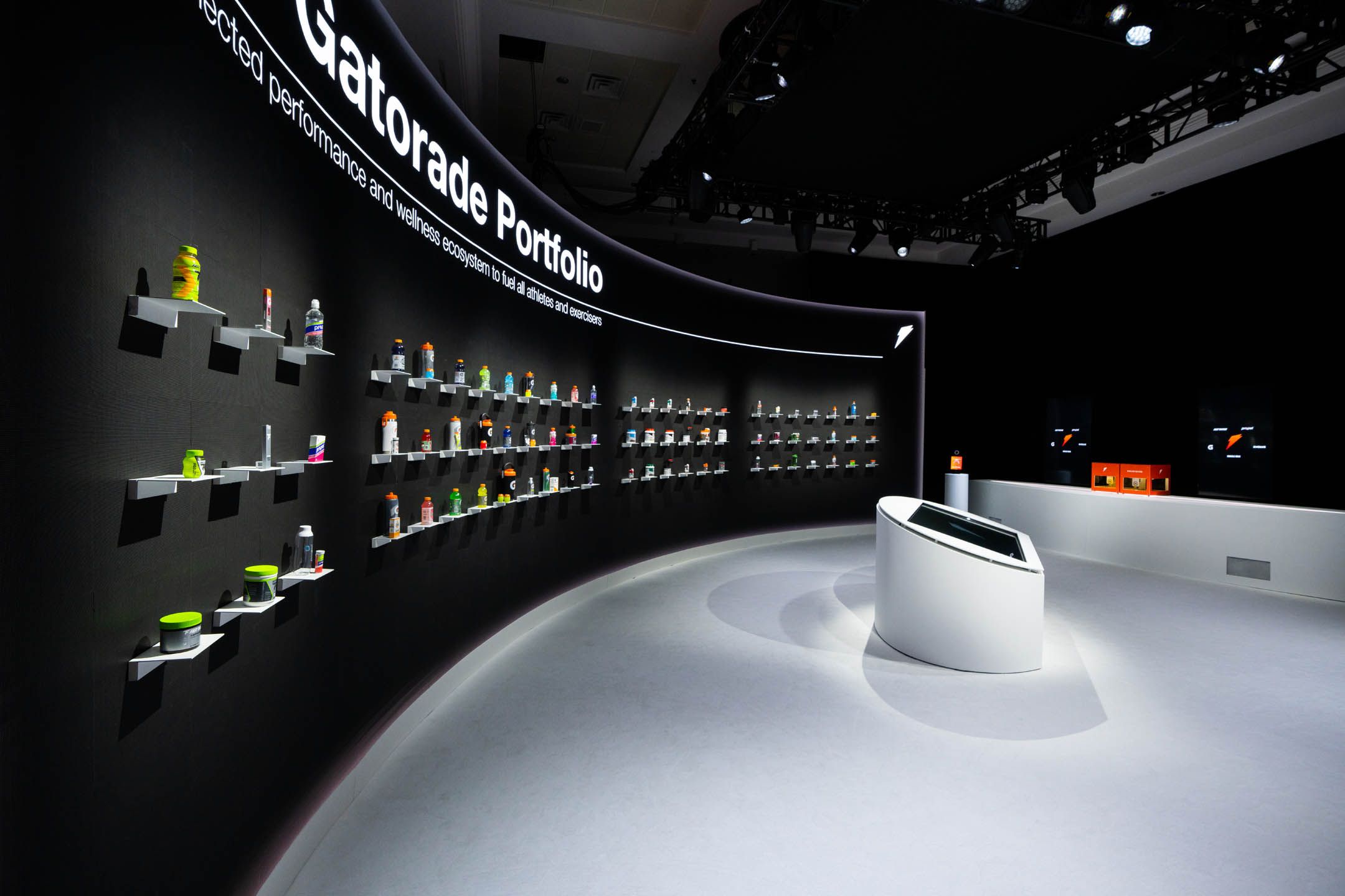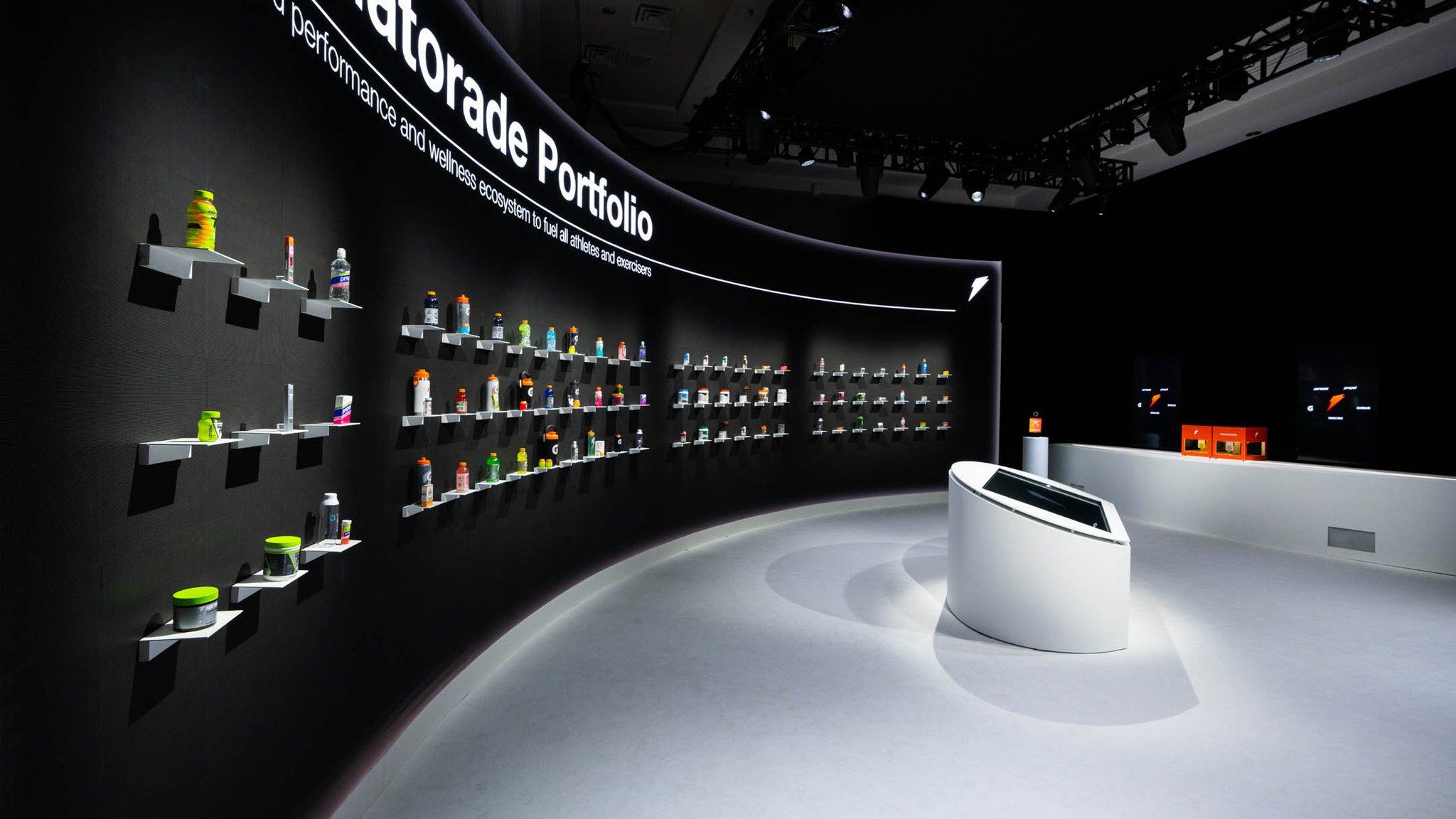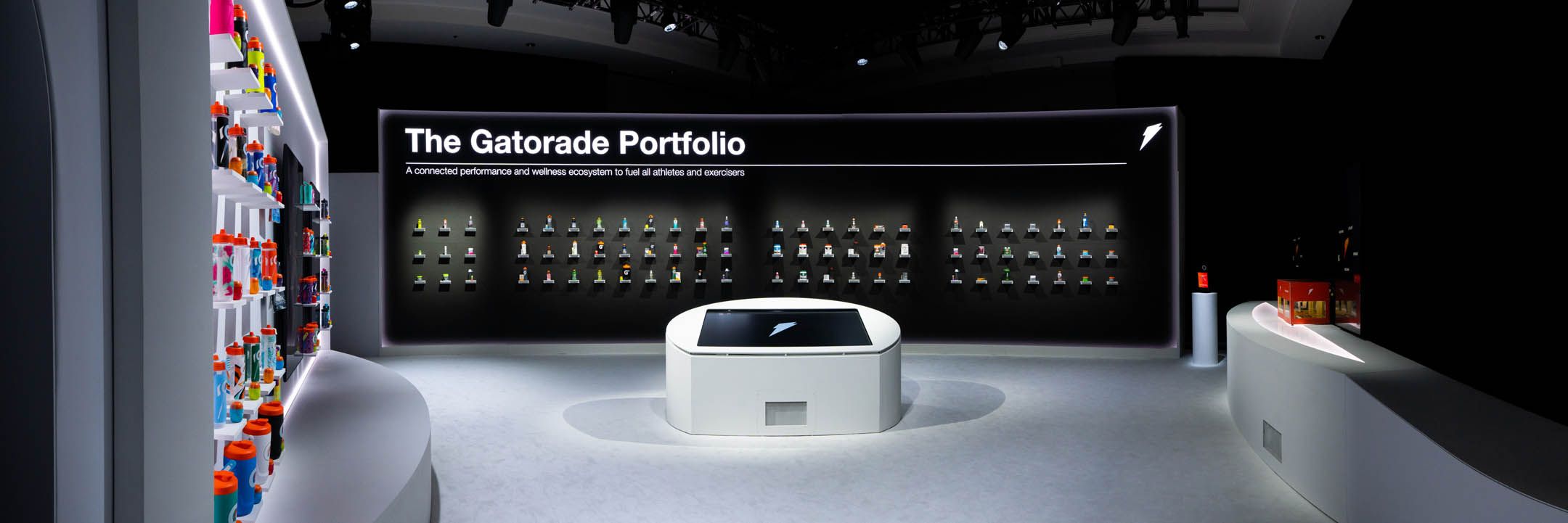 Yet, the experience was more than some cutting-edge displays. The neutrality of the physical backdrop served as the perfect canvas for the vibrant hues of each Gatorade product to burst forth and captivate the eye.