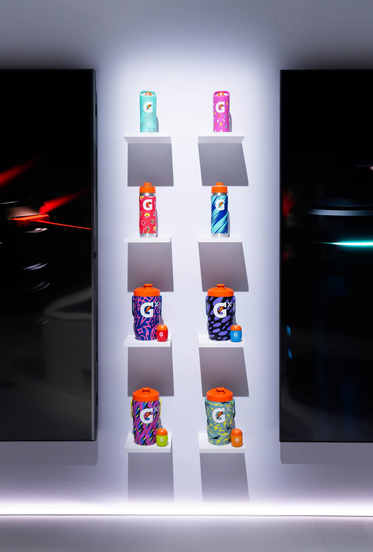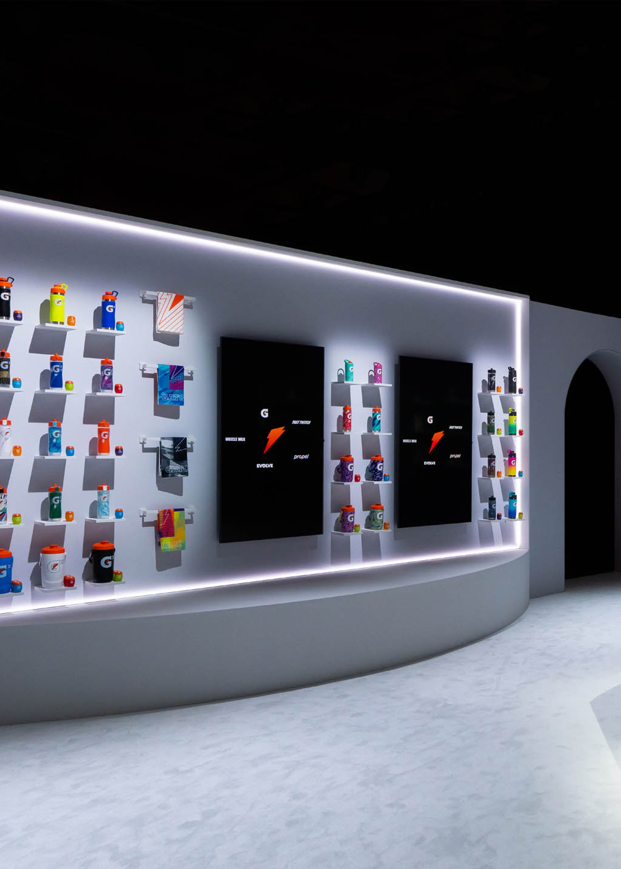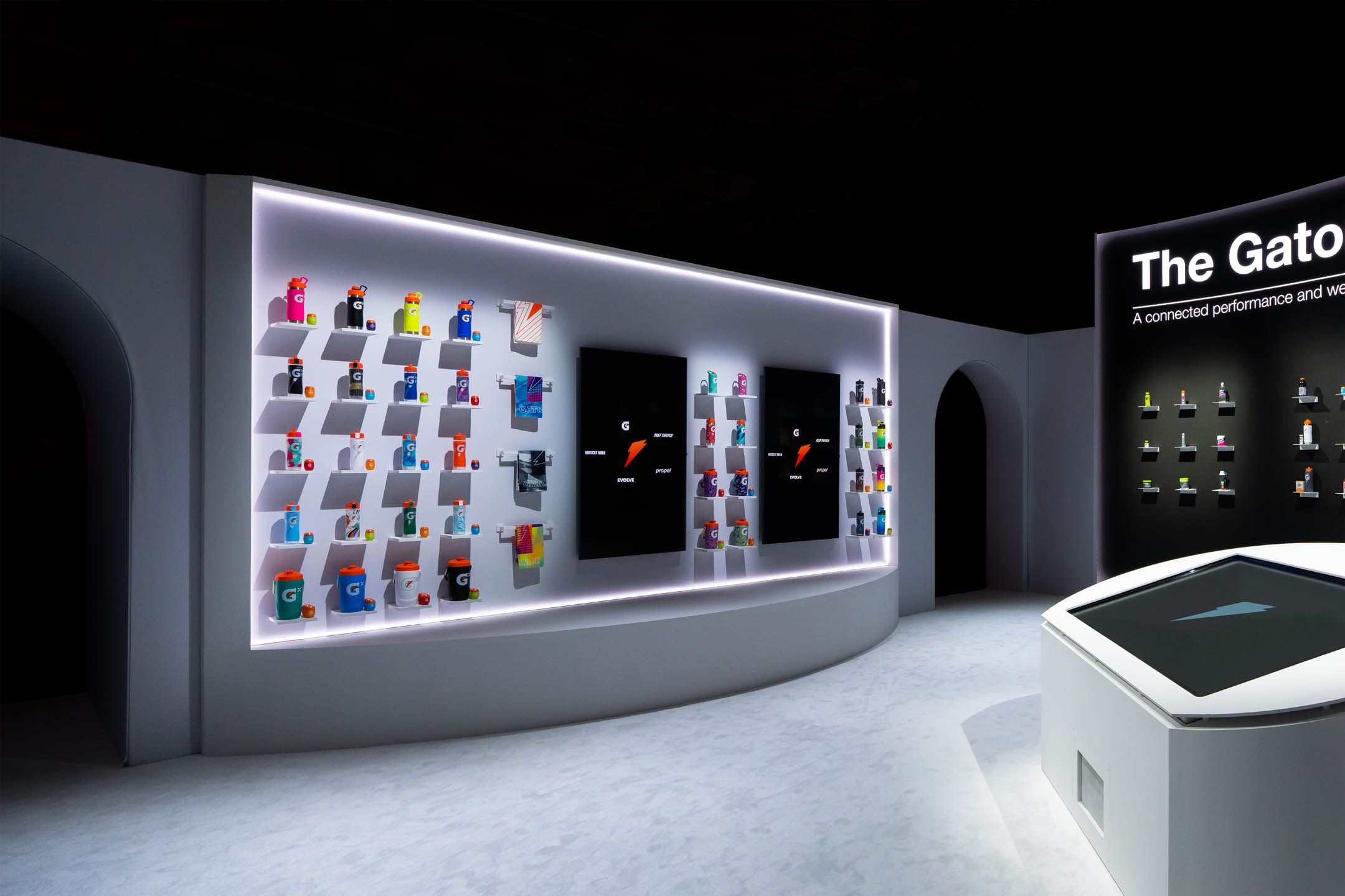 Yet, the experience was more than some cutting-edge displays. The neutrality of the physical backdrop served as the perfect canvas for the vibrant hues of each Gatorade product to burst forth and captivate the eye.