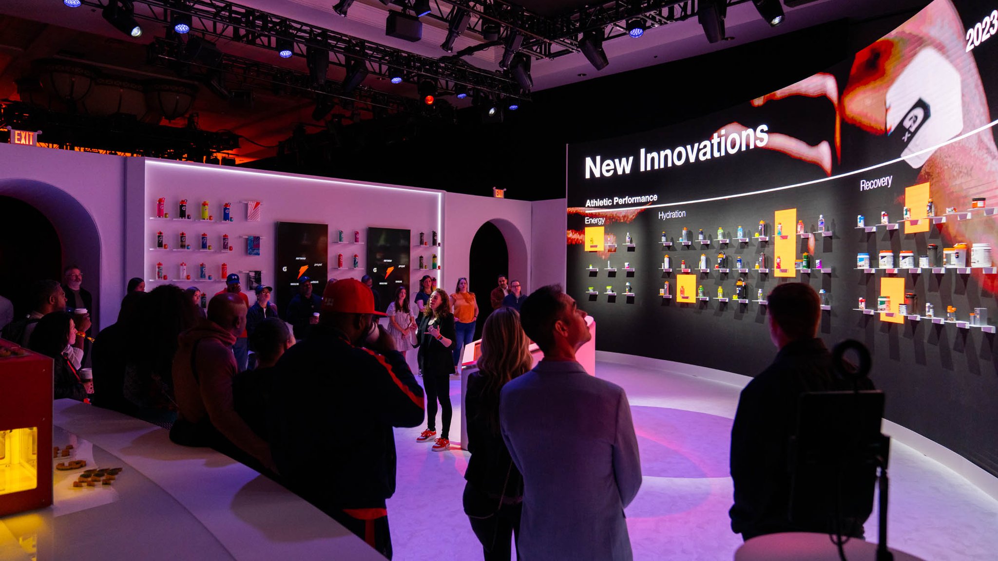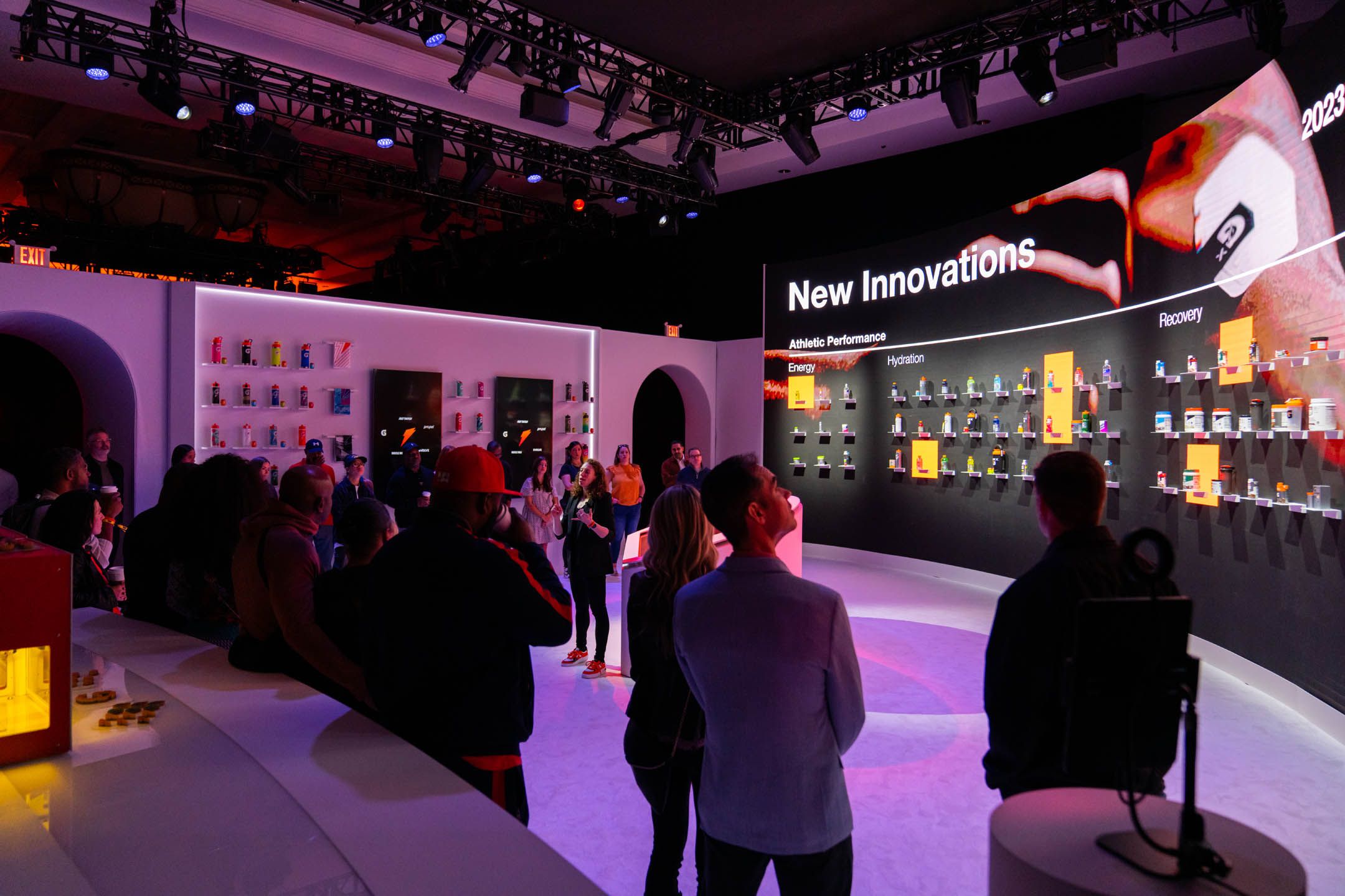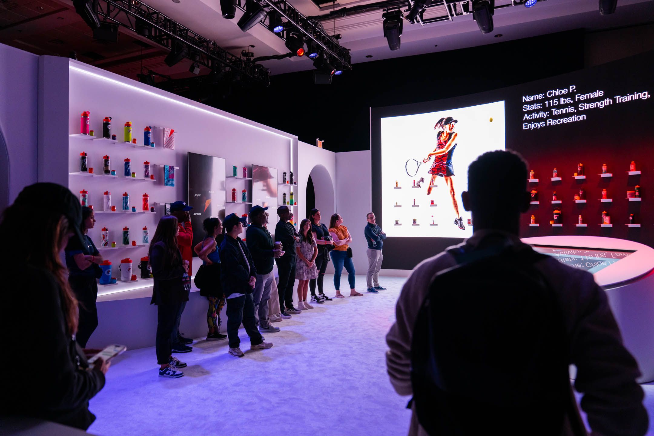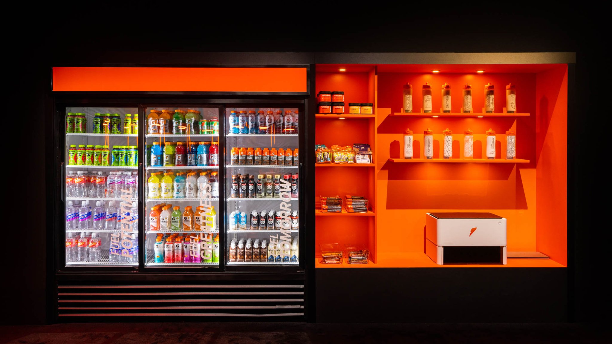 Yet, the experience was more than some cutting-edge displays. The neutrality of the physical backdrop served as the perfect canvas for the vibrant hues of each Gatorade product to burst forth and captivate the eye.