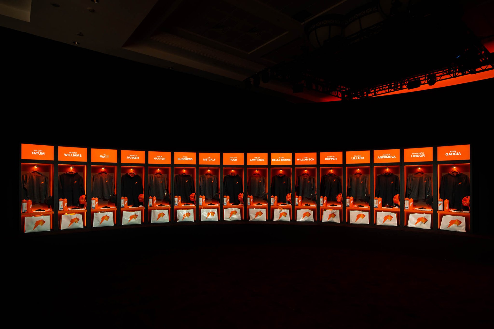 The walk through ended at our finale feature—the personalized locker room. Attendees were astounded to find high-tech individual locker room inspired compartments bearing their names, filled to the brim with curated swag.