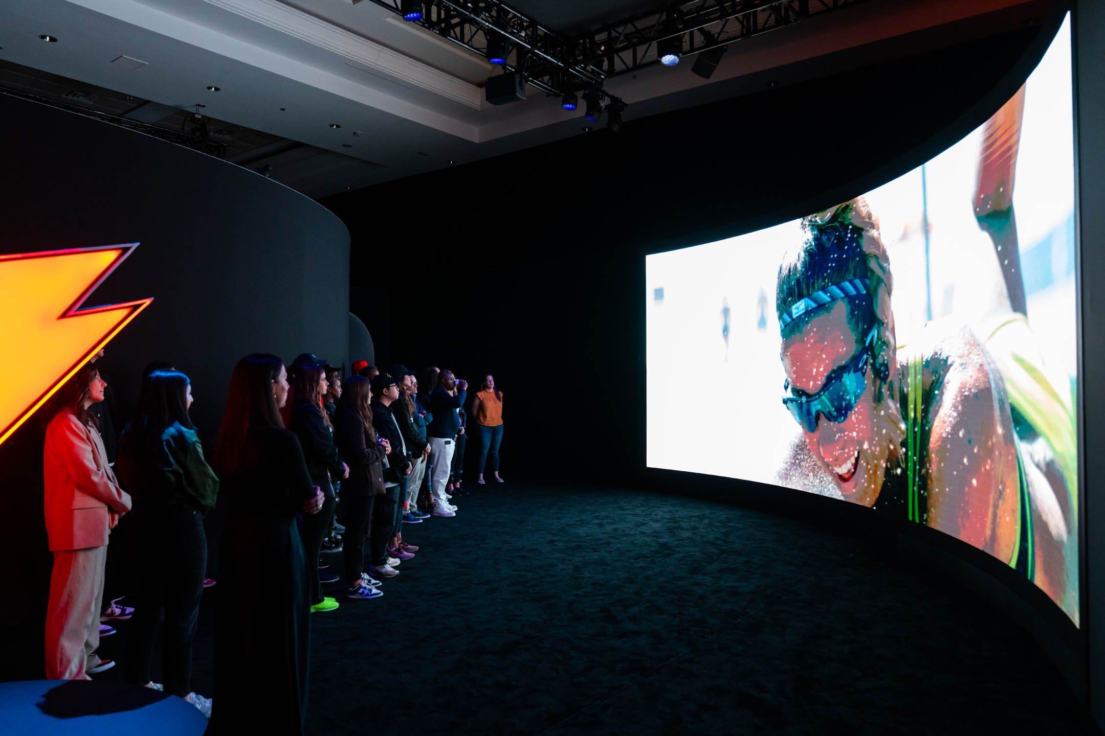 Notably impressive was the Future Film, projected onto a sweeping, curved LED wall that enveloped the audience. This mesmerizing audiovisual journey directed their gaze toward an immersive spectacle that moved guests into the Gatorade brand story, emphasizing its position as a technologically advanced, sports culture brand with lasting relevance.