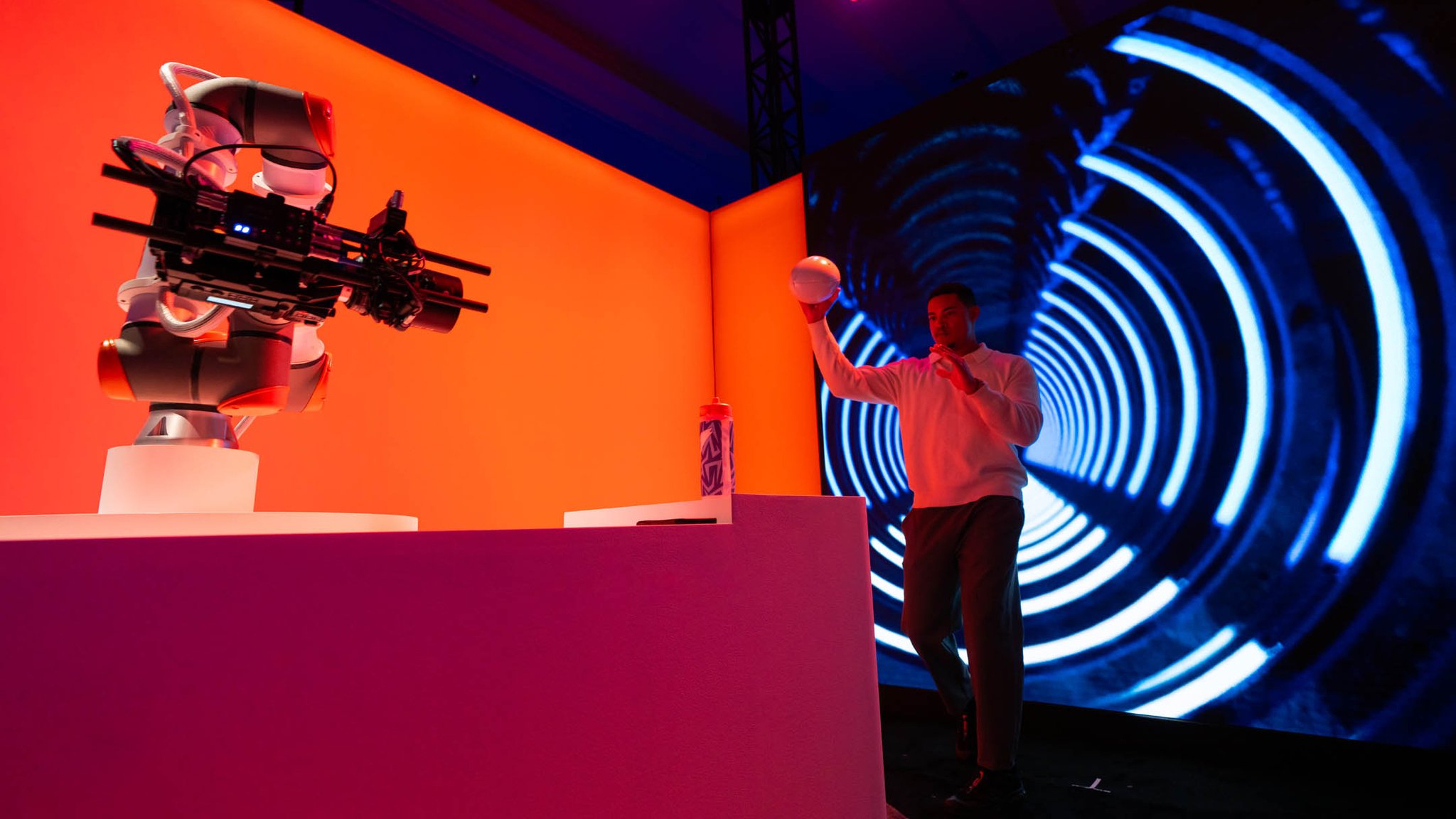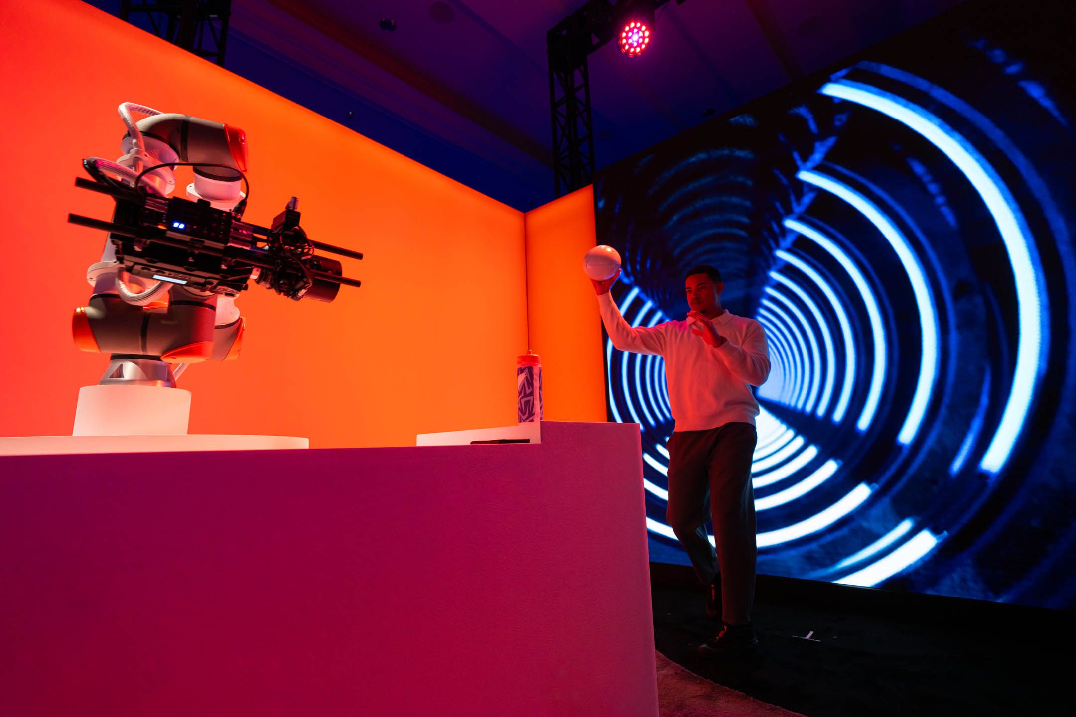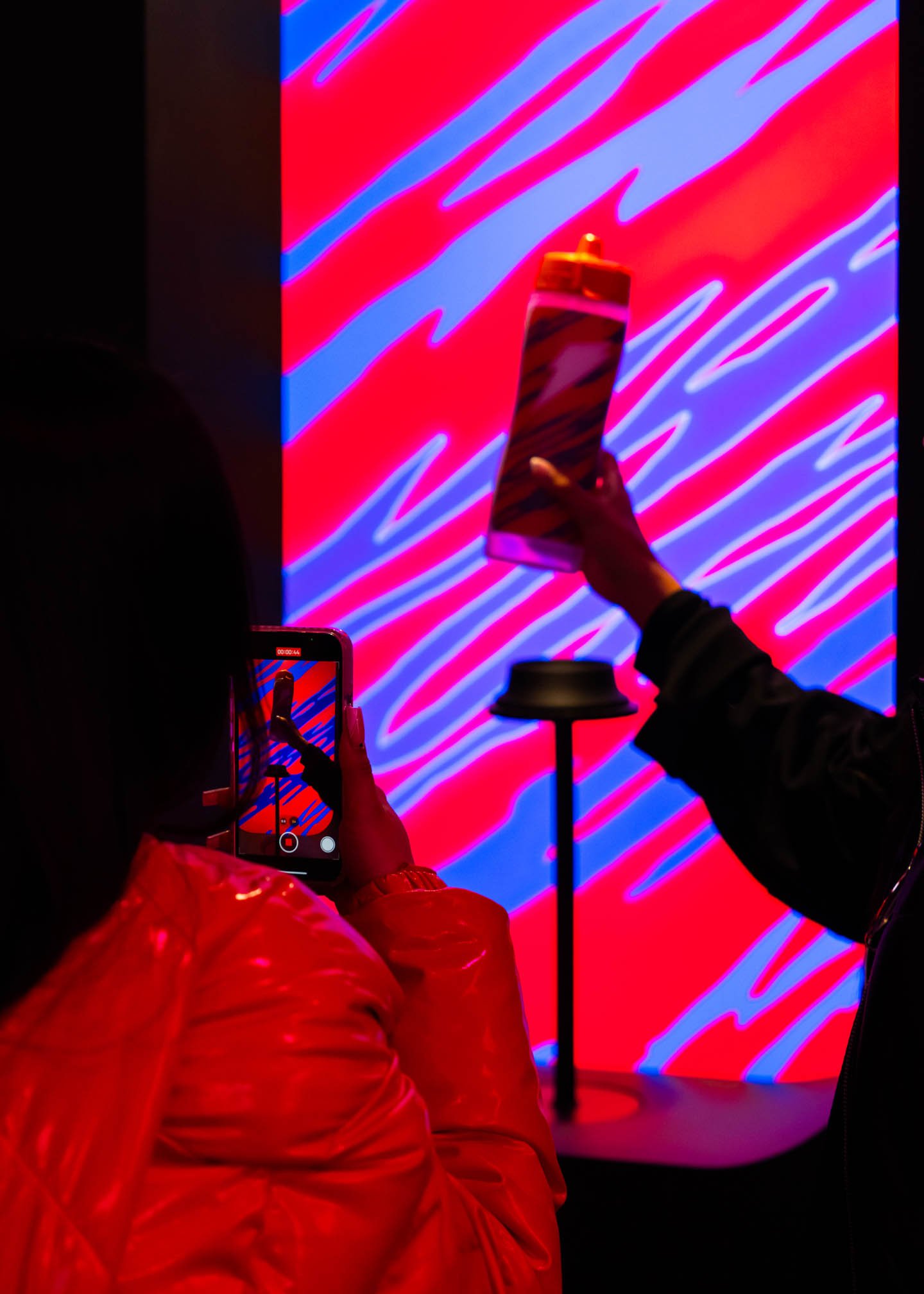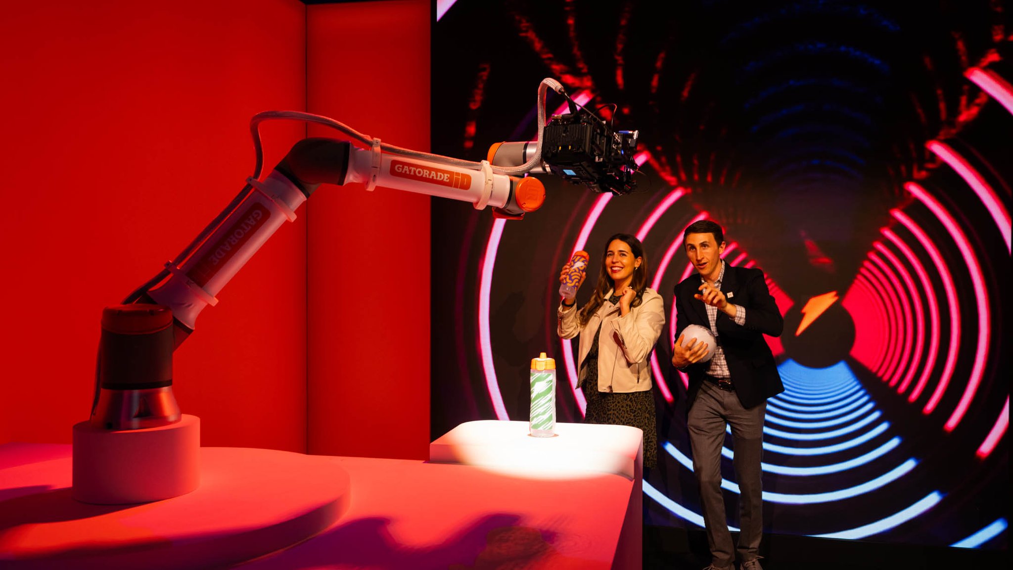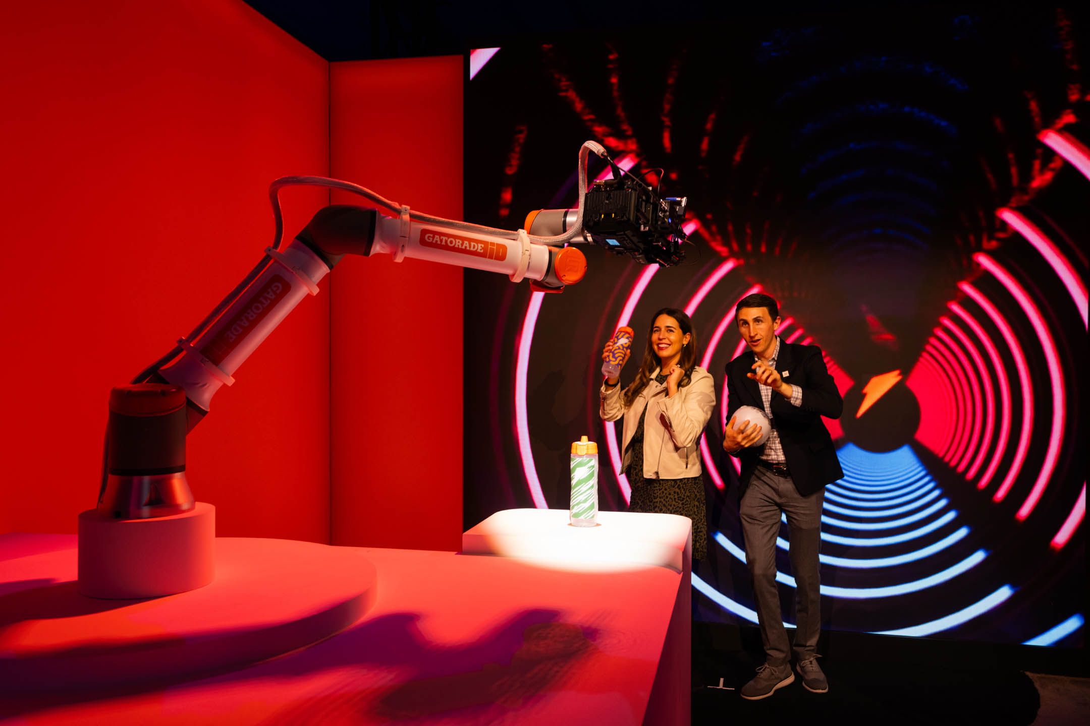 To extend the event’s impact beyond the physical space, we animated a robot designed to capture guests’ personalized experiences so they could share them on social media. Attendees engaged with the Bolt Bot Studio by placing their customized bottles on a pedestal, which activated the robotic content capture process. The robotic camera recorded video content of the attendees with their bottles, which was then emailed to them. The backdrop changed dynamically based on the bottle’s design, ensuring personalized and shareable digital content.