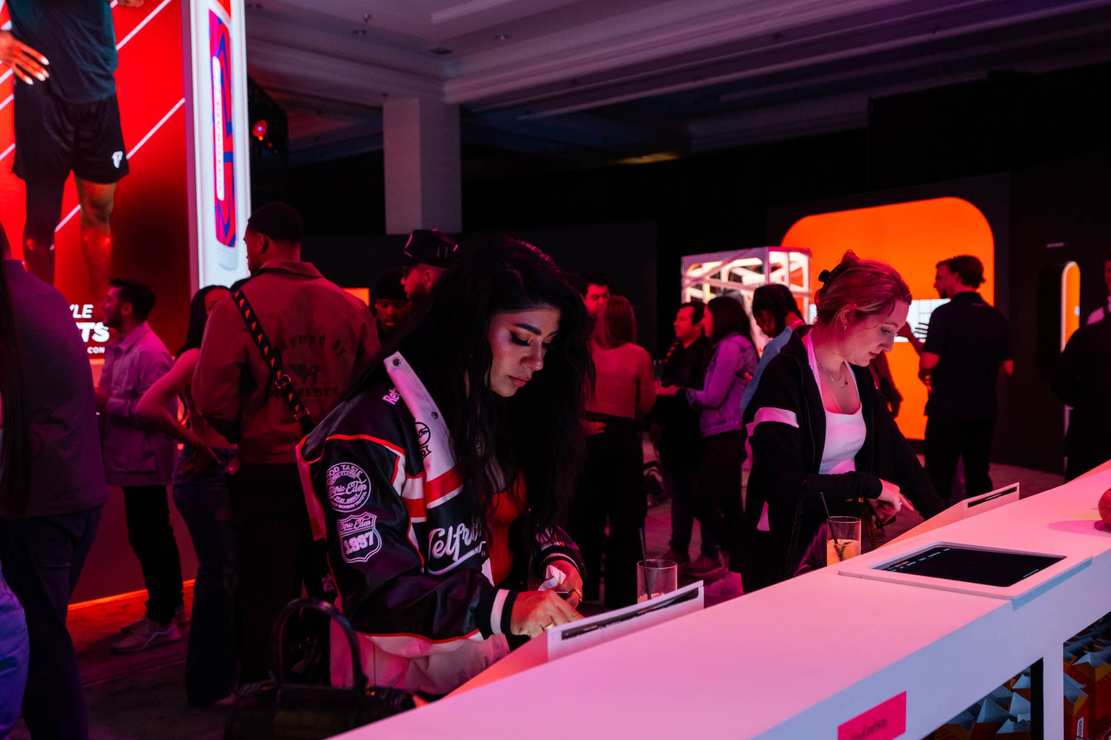 Customization was at the heart of the experience, so we used RFID technology throughout the experience to ensure a smooth flow through the nine key interactive touchpoints. Everything began with the Portal Entrance, which transported guests into the main space. Once there, guests could choose from either an open world flow or a linear user experience. Through the linear experience, guests first encountered the Artist Collab and Bottle Design station where they could create personalized equipment that reflected their unique style.