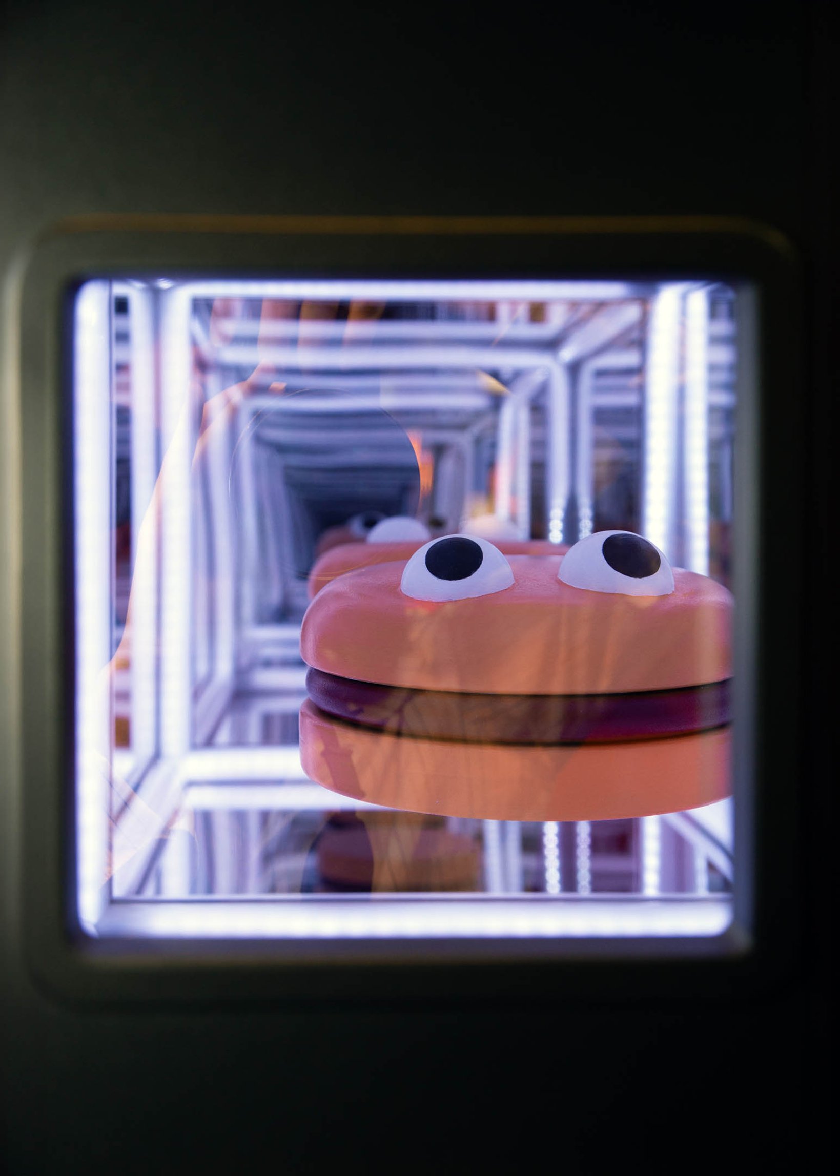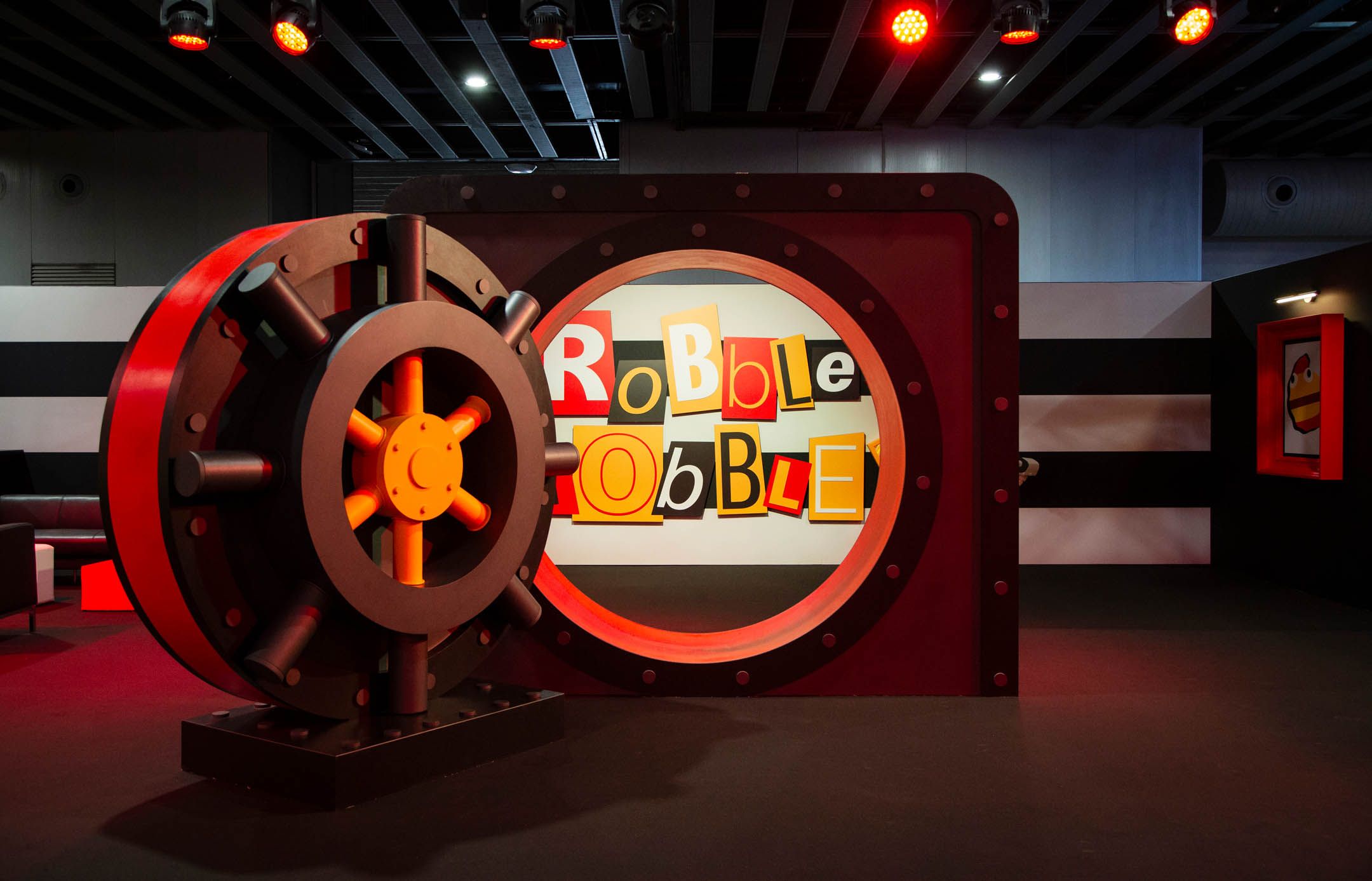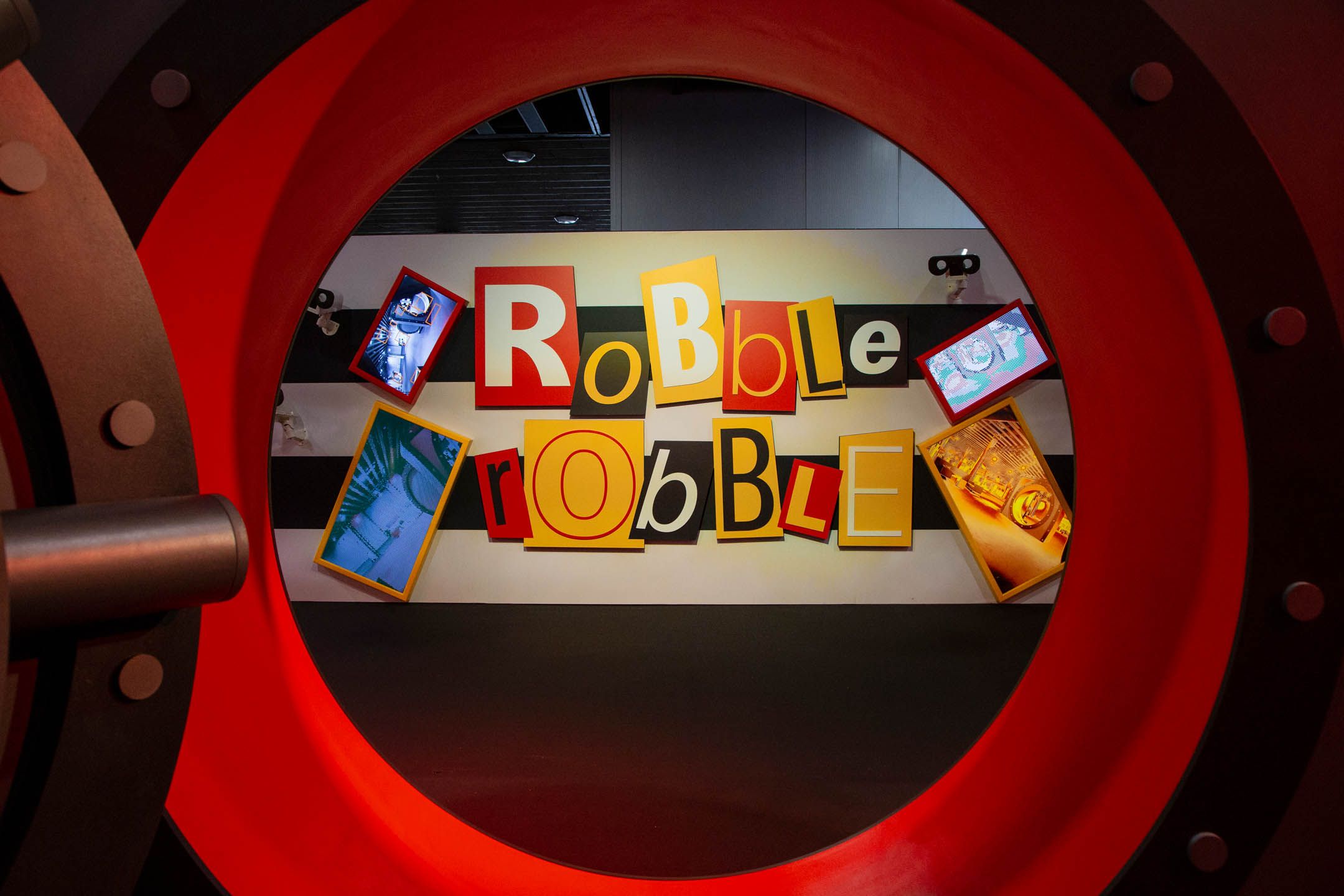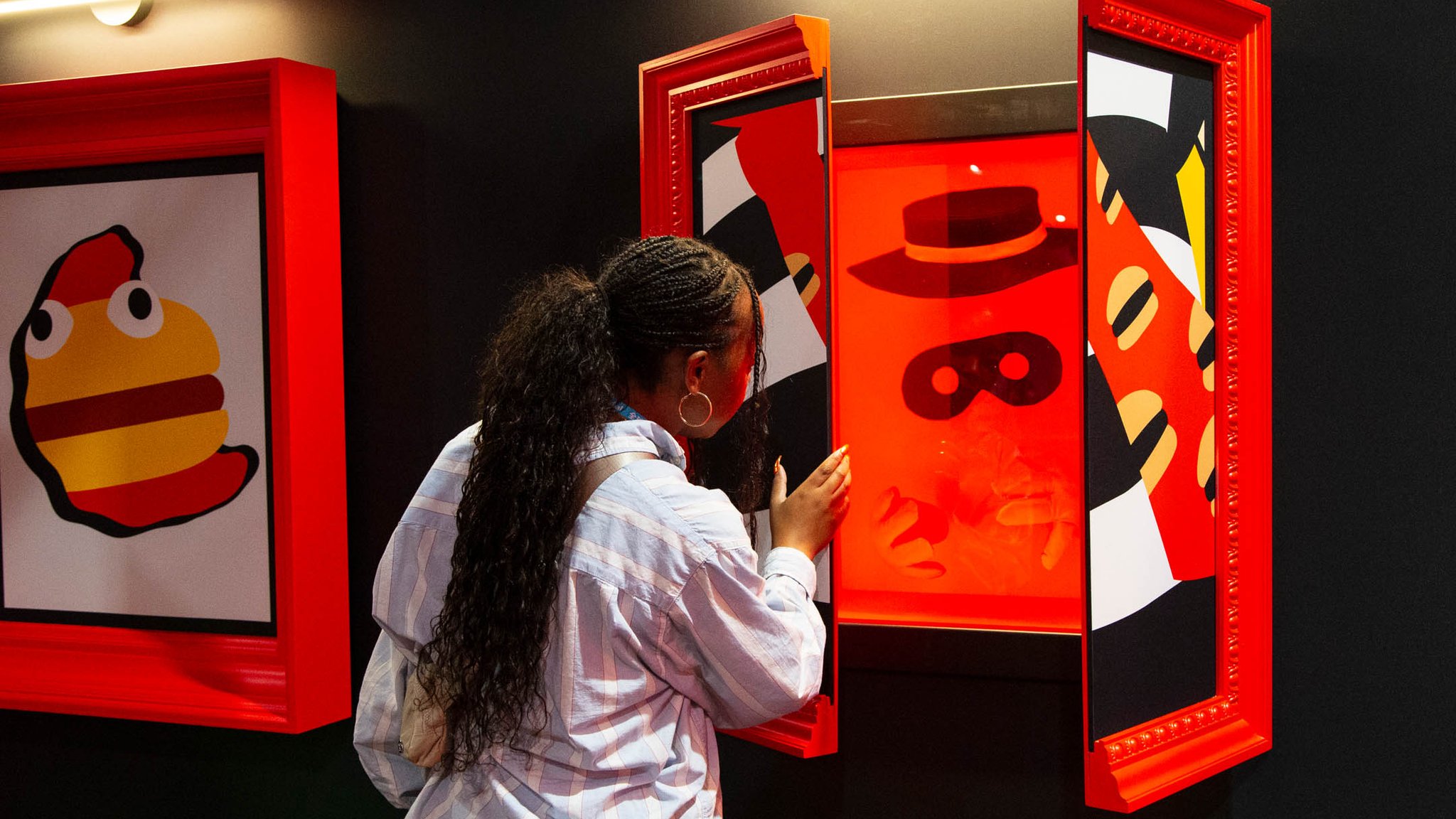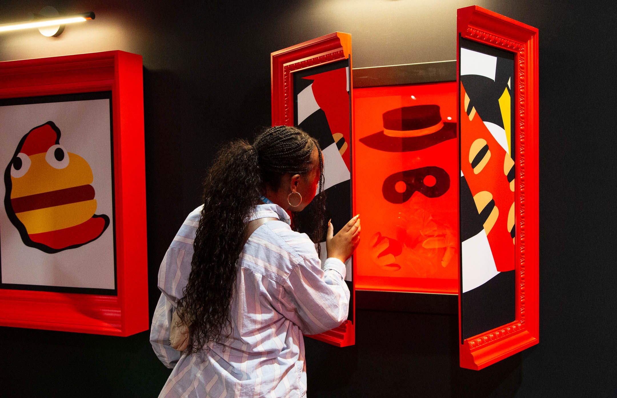 The first neighborhood was Hamburgurlar’s Vault. Surrounded by black and white striped walls as a callback to Hamburglar’s iconic attire, this space featured an open vault door with the character’s well-known “Robble Robble,” catchphrase, and a triptych of framed artwork that opened to reveal a stash of hamburgers, the character’s costume, and an escape ladder.