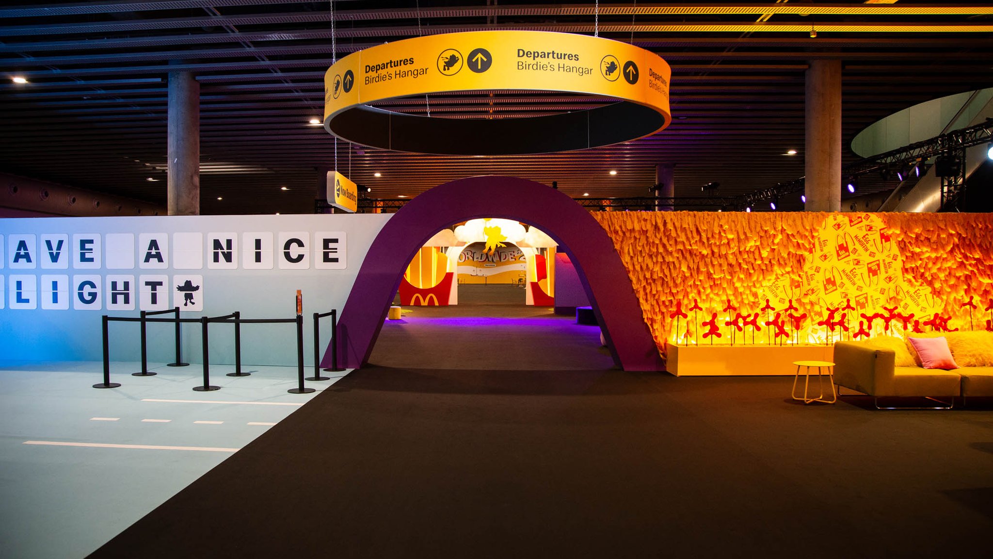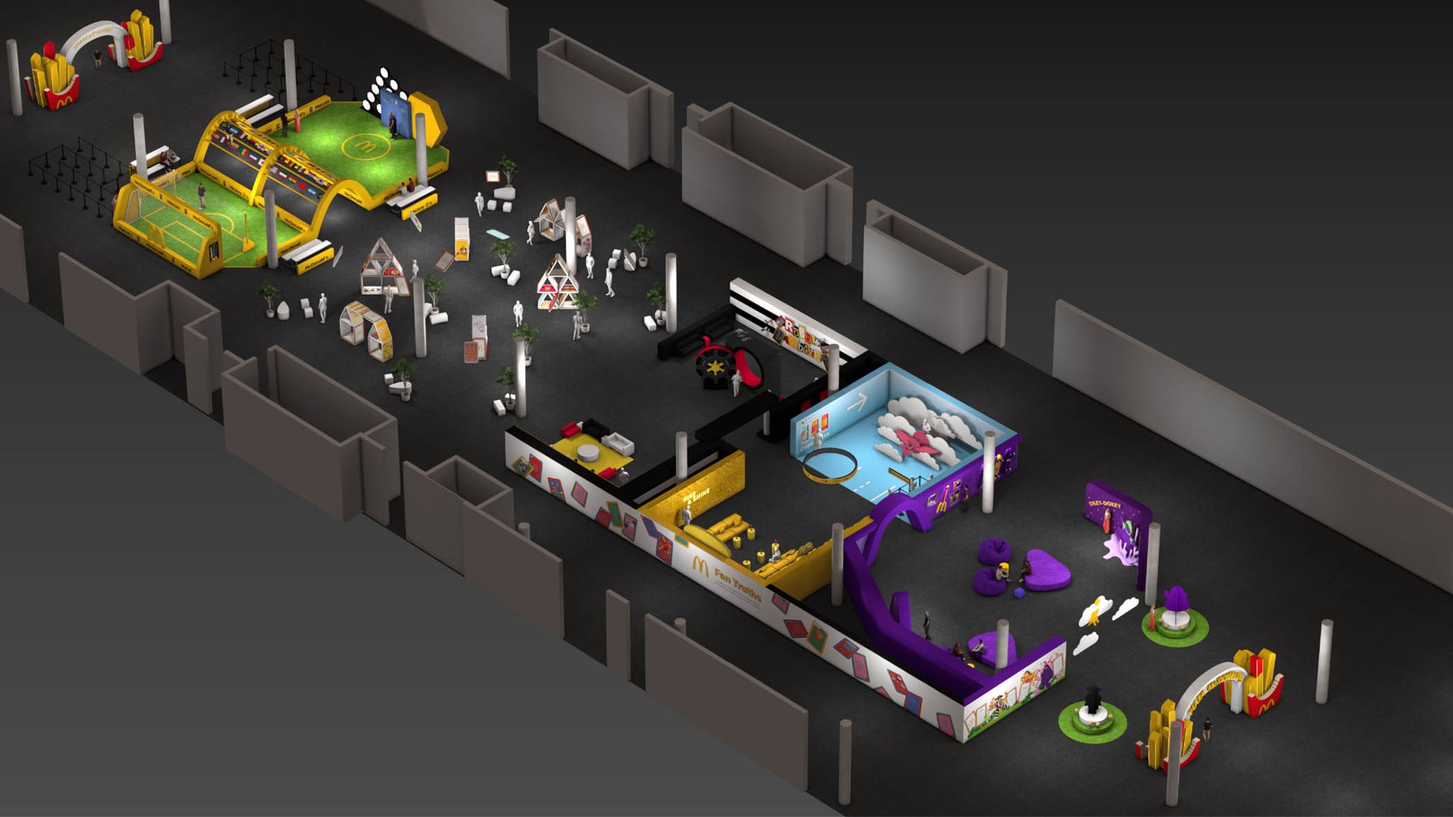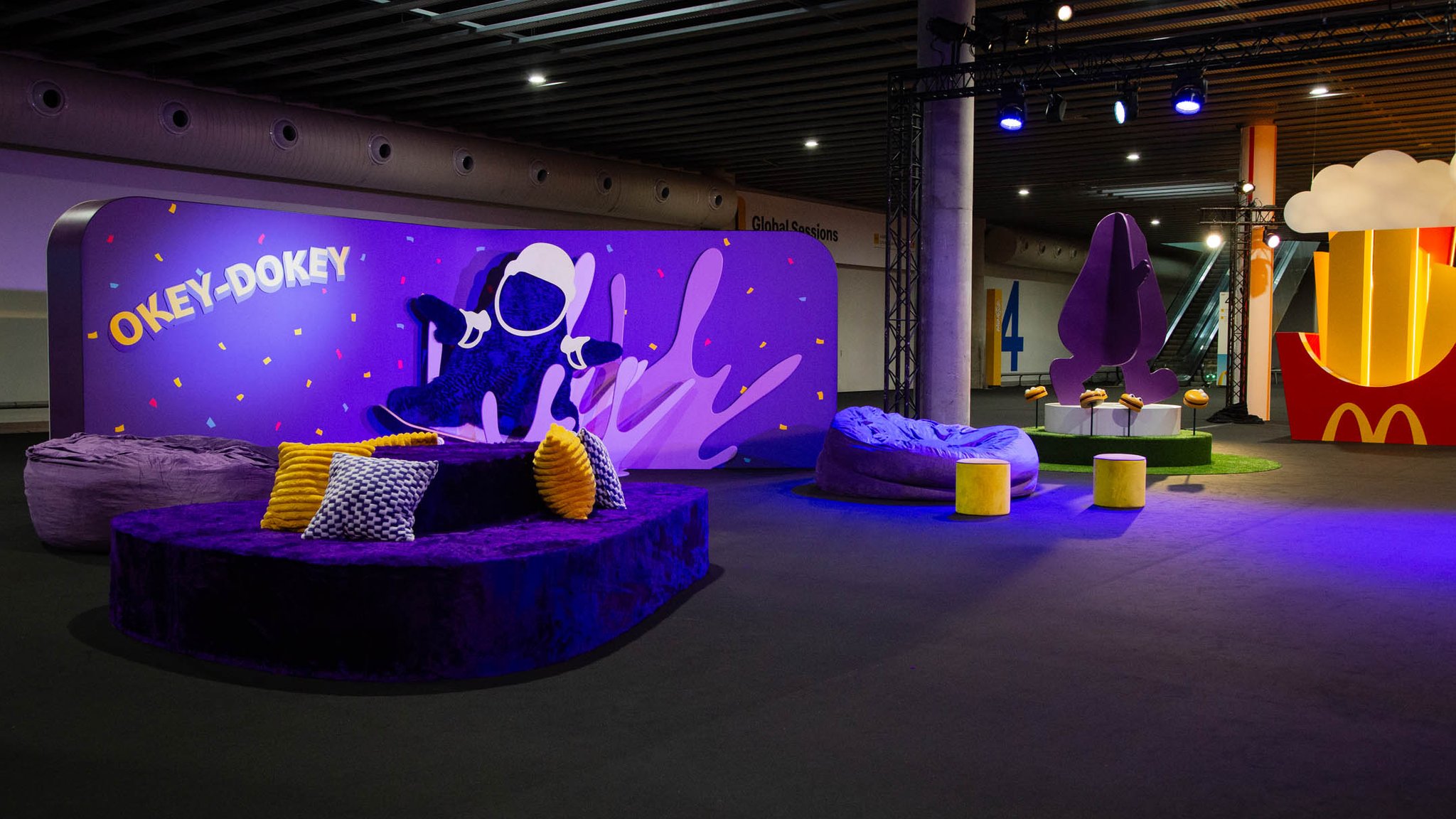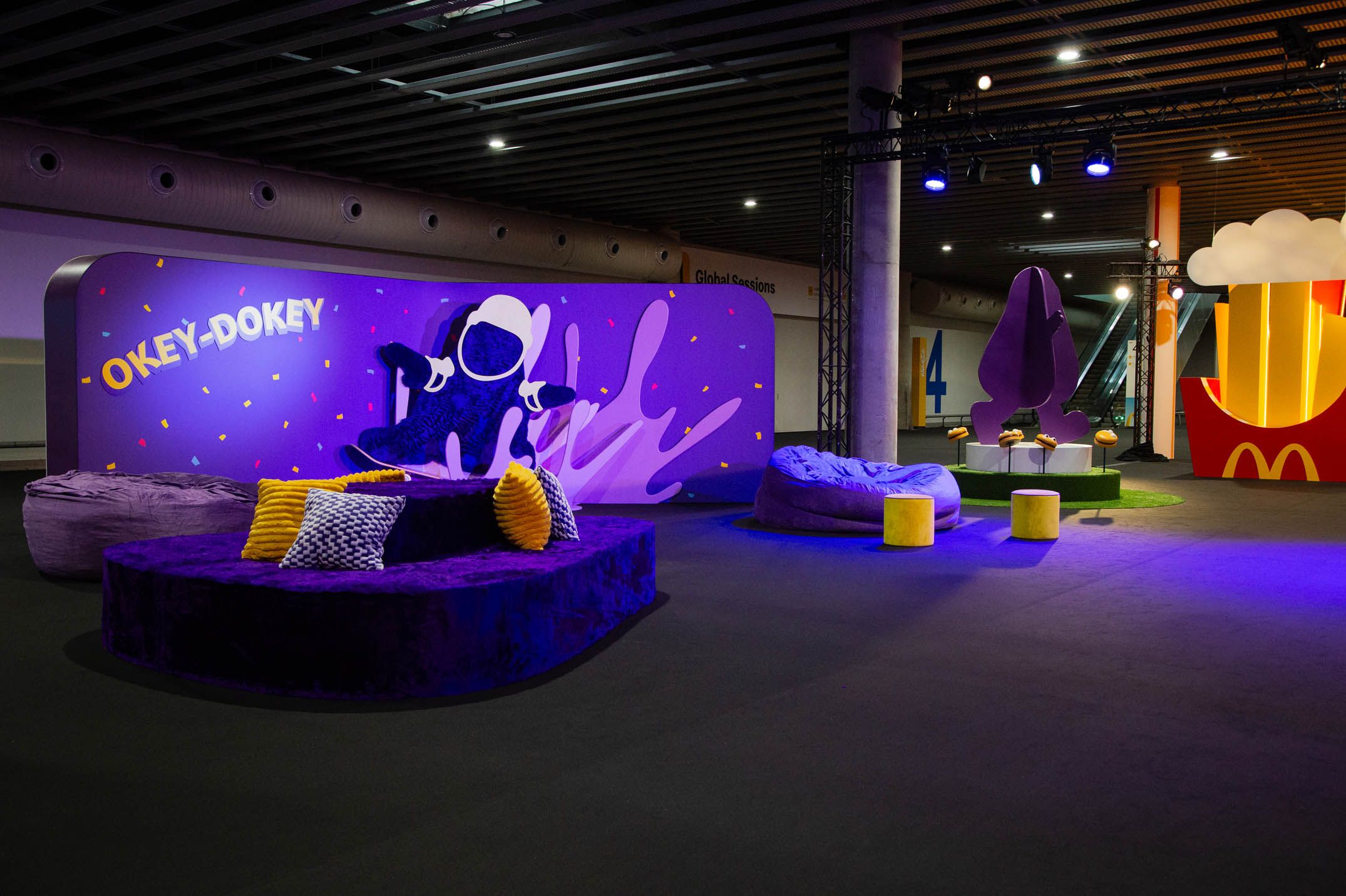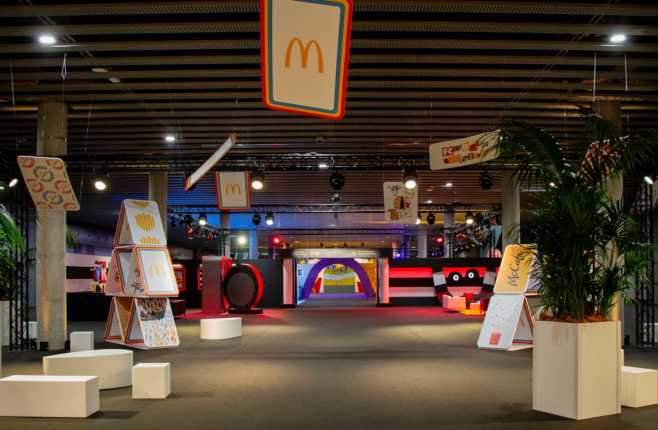 To do this, we aimed to transport people back to the time that made them fall in love with McDondald’s in the first place from the very moment they stepped into the conference. For the Entry Gateway, situated at the bottom of the escalators, we leaned into whimsy, enlarging the scale of one of the most iconic menu items: the french fries. Illuminated by LED accents and lit up by canned lettering at the top, it was both a portal directly into the McDonald’s Universe and a photographable moment.