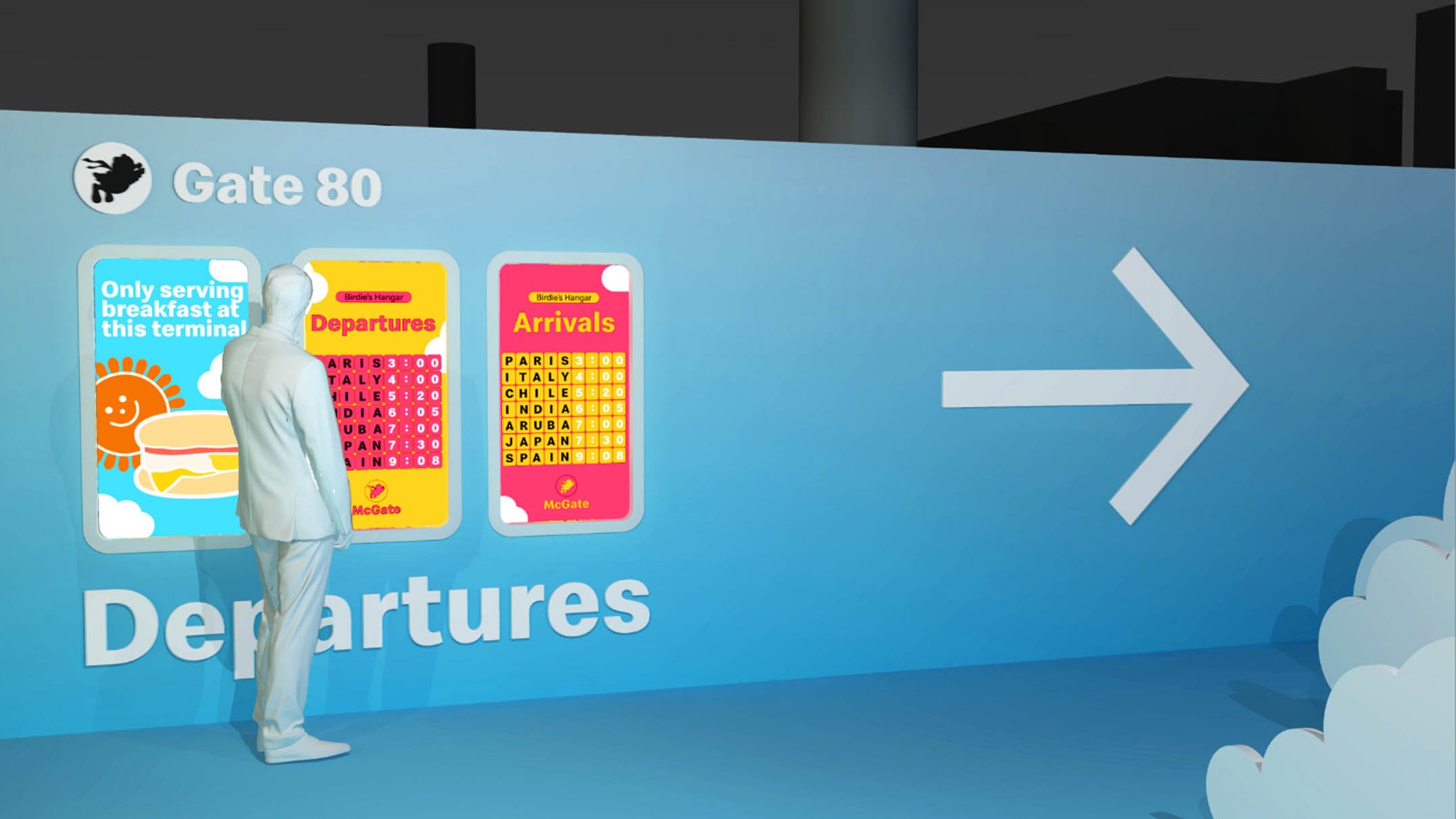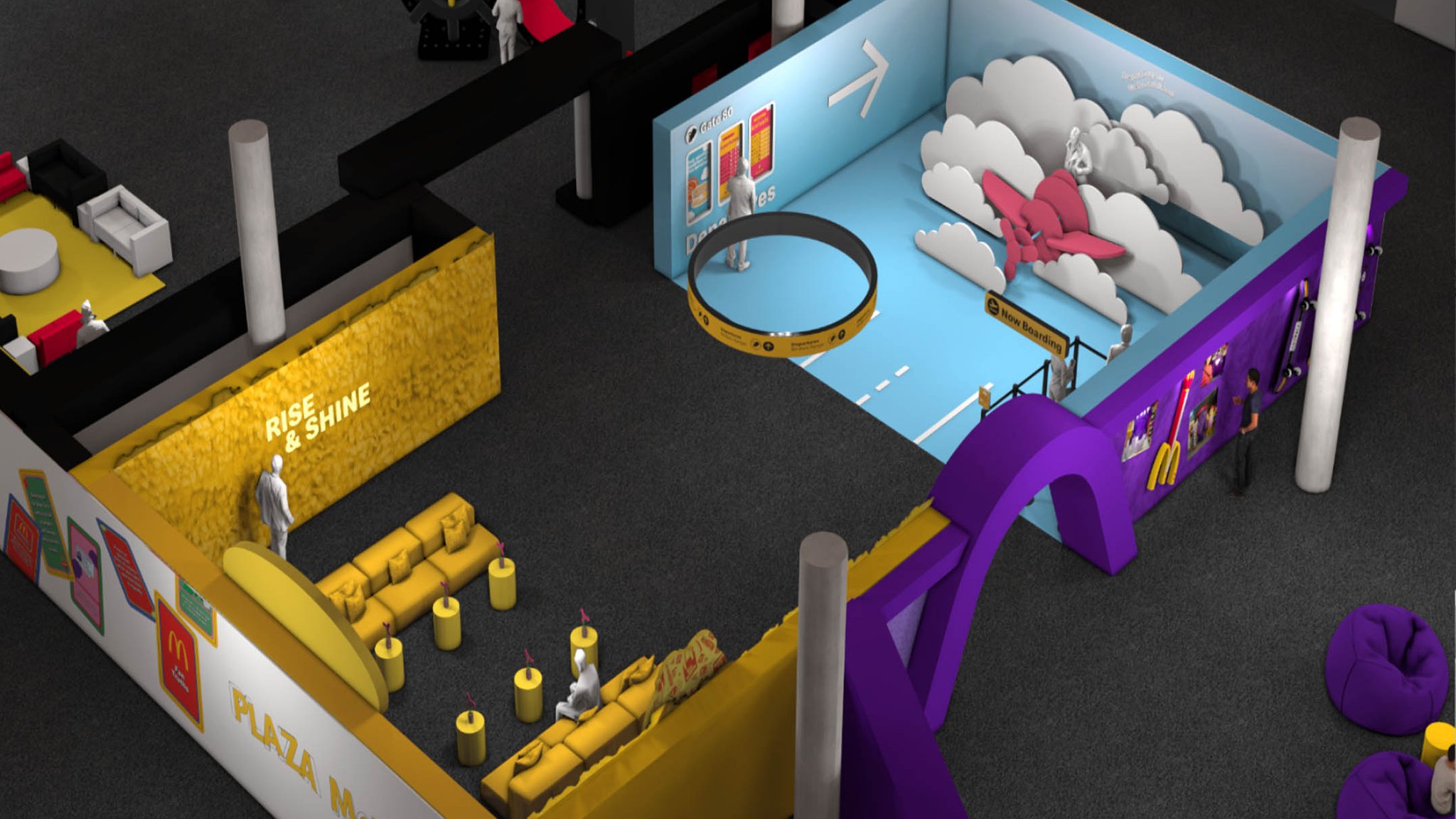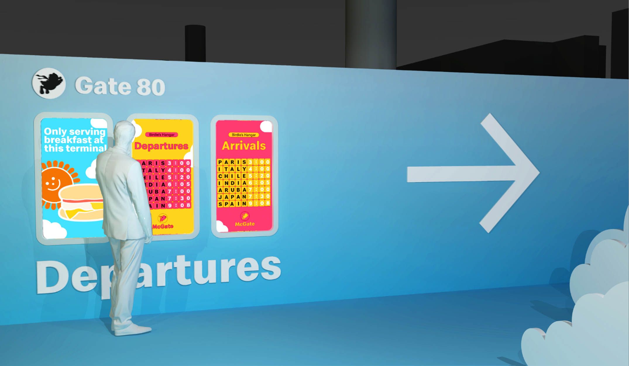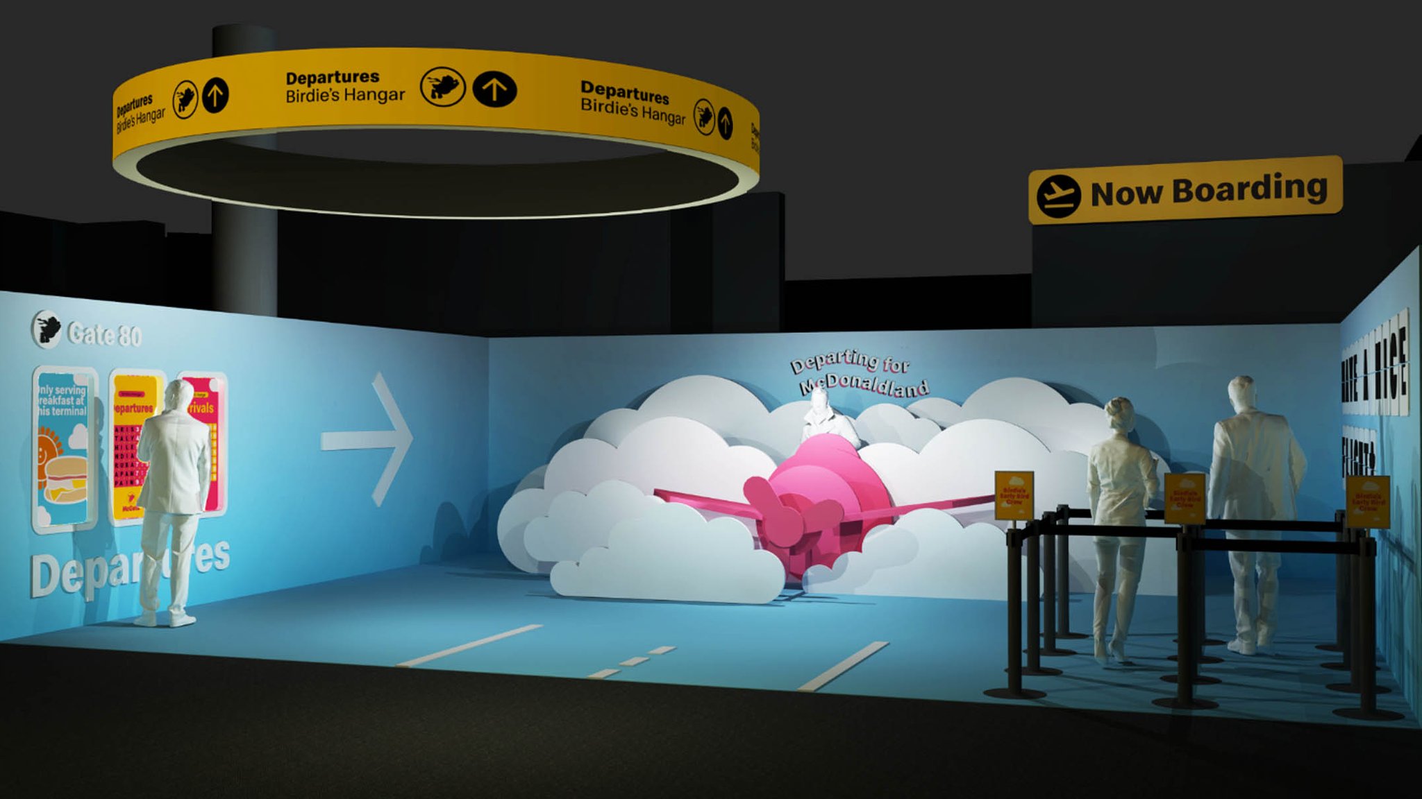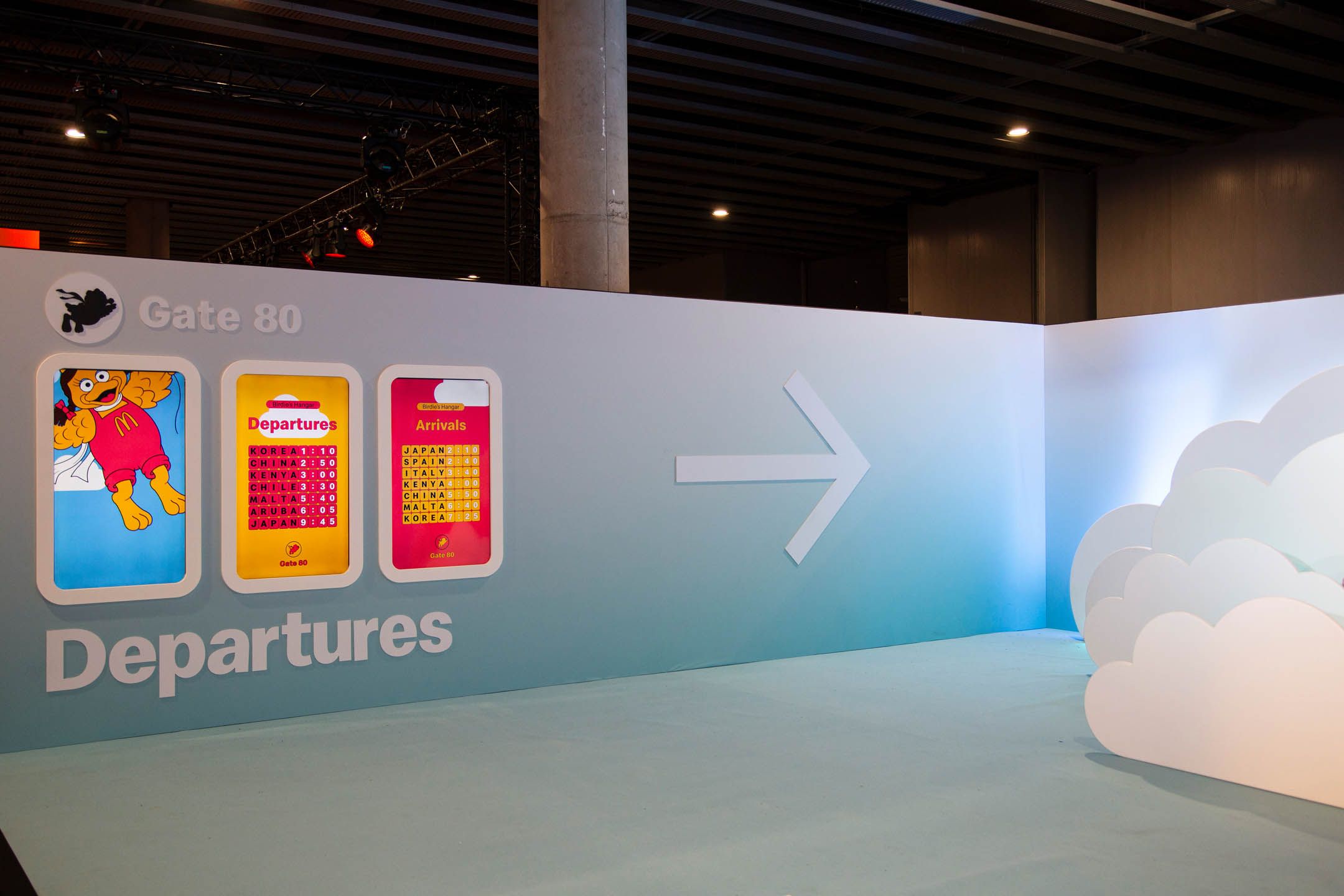 To do this, we aimed to transport people back to the time that made them fall in love with McDondald’s in the first place from the very moment they stepped into the conference. For the Entry Gateway, situated at the bottom of the escalators, we leaned into whimsy, enlarging the scale of one of the most iconic menu items: the french fries. Illuminated by LED accents and lit up by canned lettering at the top, it was both a portal directly into the McDonald’s Universe and a photographable moment.