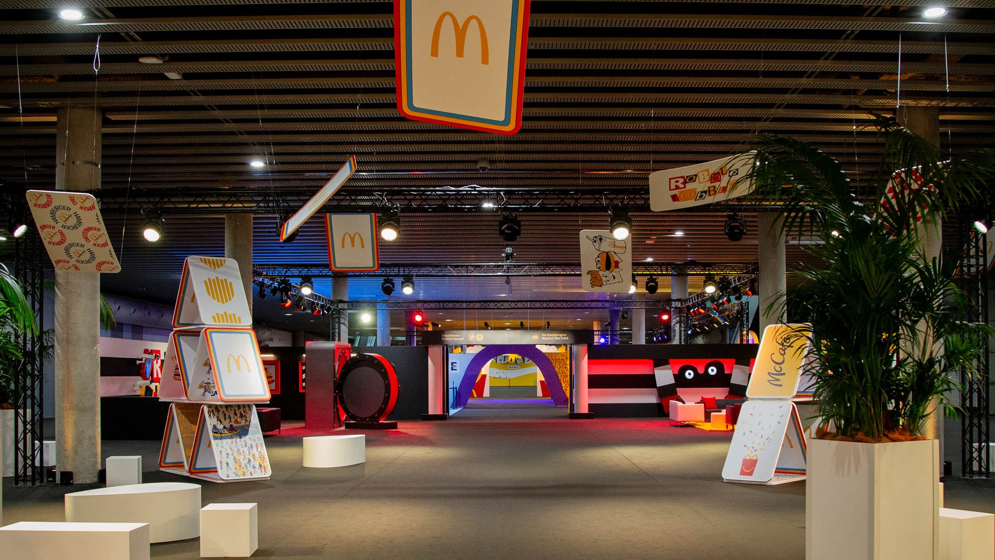 The Golden Arches in Barcelona4759 People that have worked with us know that we know a thing or two about doing things on a massive scale. Following our successful collaboration on their Investor Day, we partnered with McDonald’s for its most important event of the year: The McDonald’s Worldwide Conference. Held in Barcelona, this event was to be the gathering spot for franchisees from around the world–arguably their biggest fans–to fully immerse themselves in the brand they love so much. More than just an opportunity to create a location, we saw this as a challenge to create a destination; to bring the well-beloved brand to life in a fresh way and show its track record of celebrating and investing in its rich history, regardless of language.