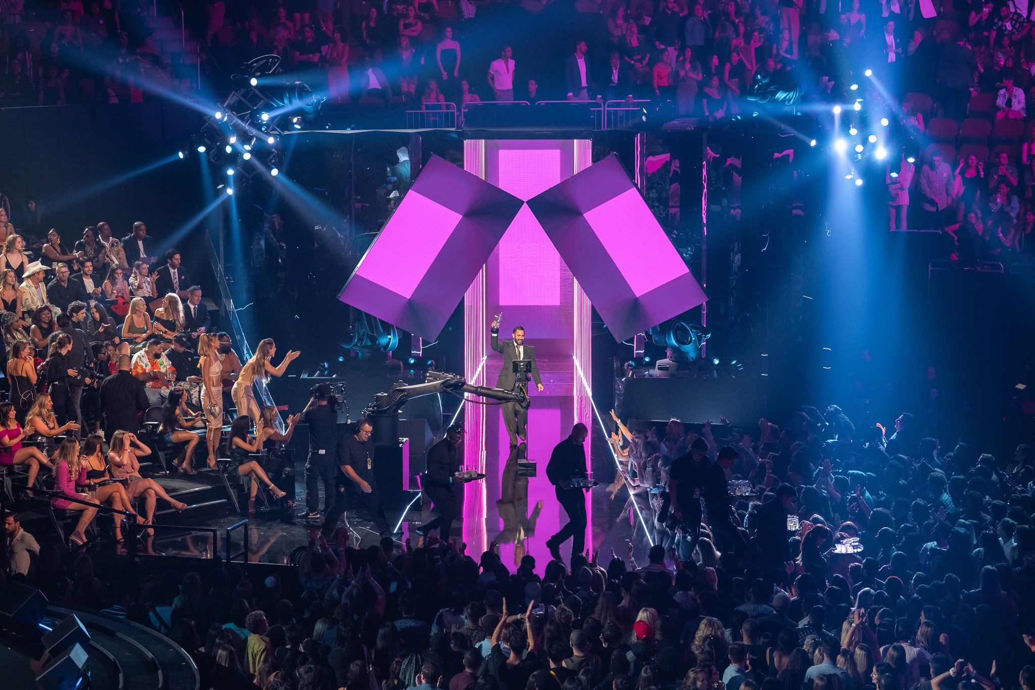 Operating Robots at a Live Event1247 The Design and Production for the MTV VMAs engaged us to design a number of methodologies for robots to reveal presenters at the show.
