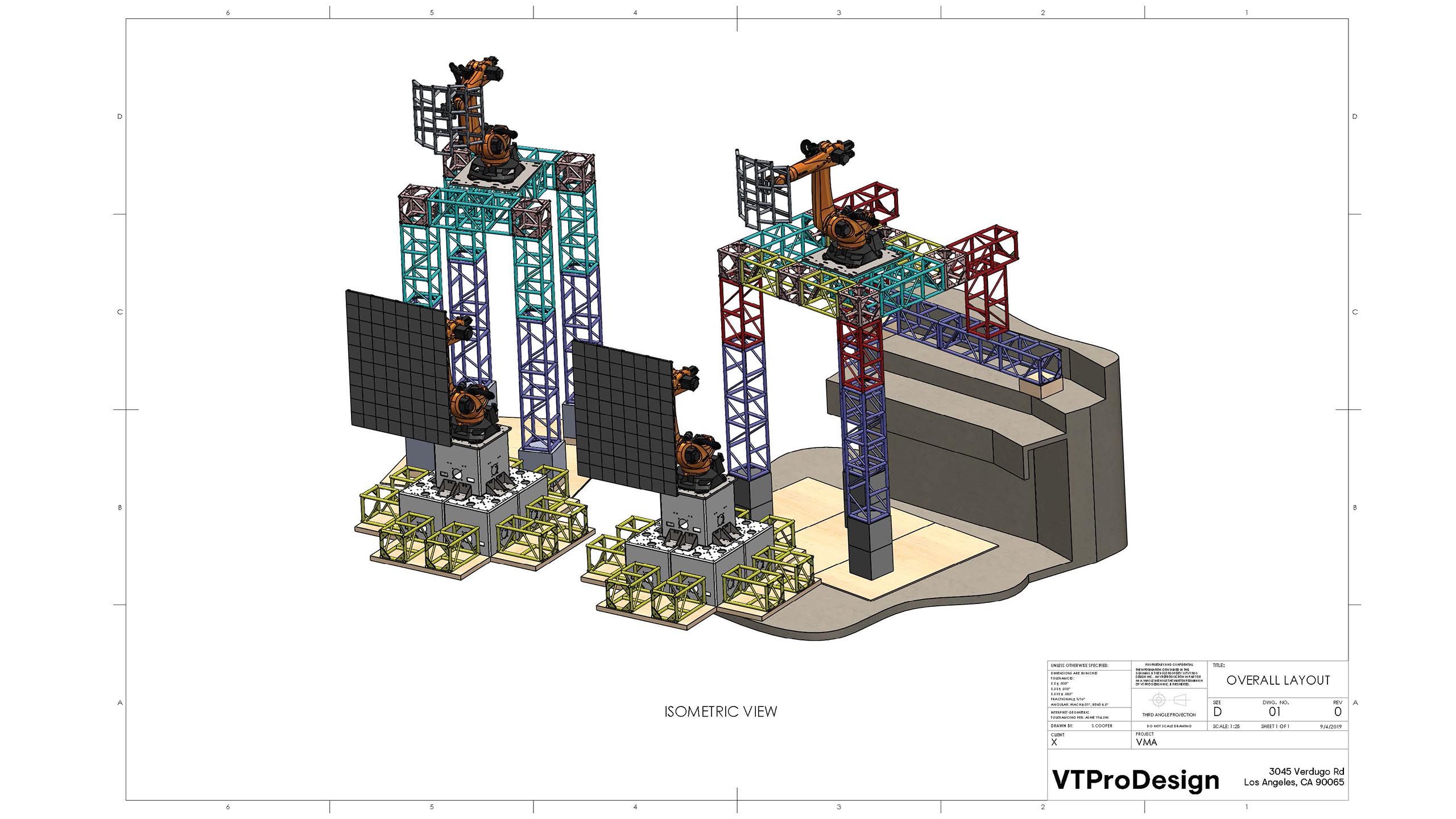 To achieve this the team designed and engineered custom truss structures with proper ballast to ensure the robots were safe under their active load.