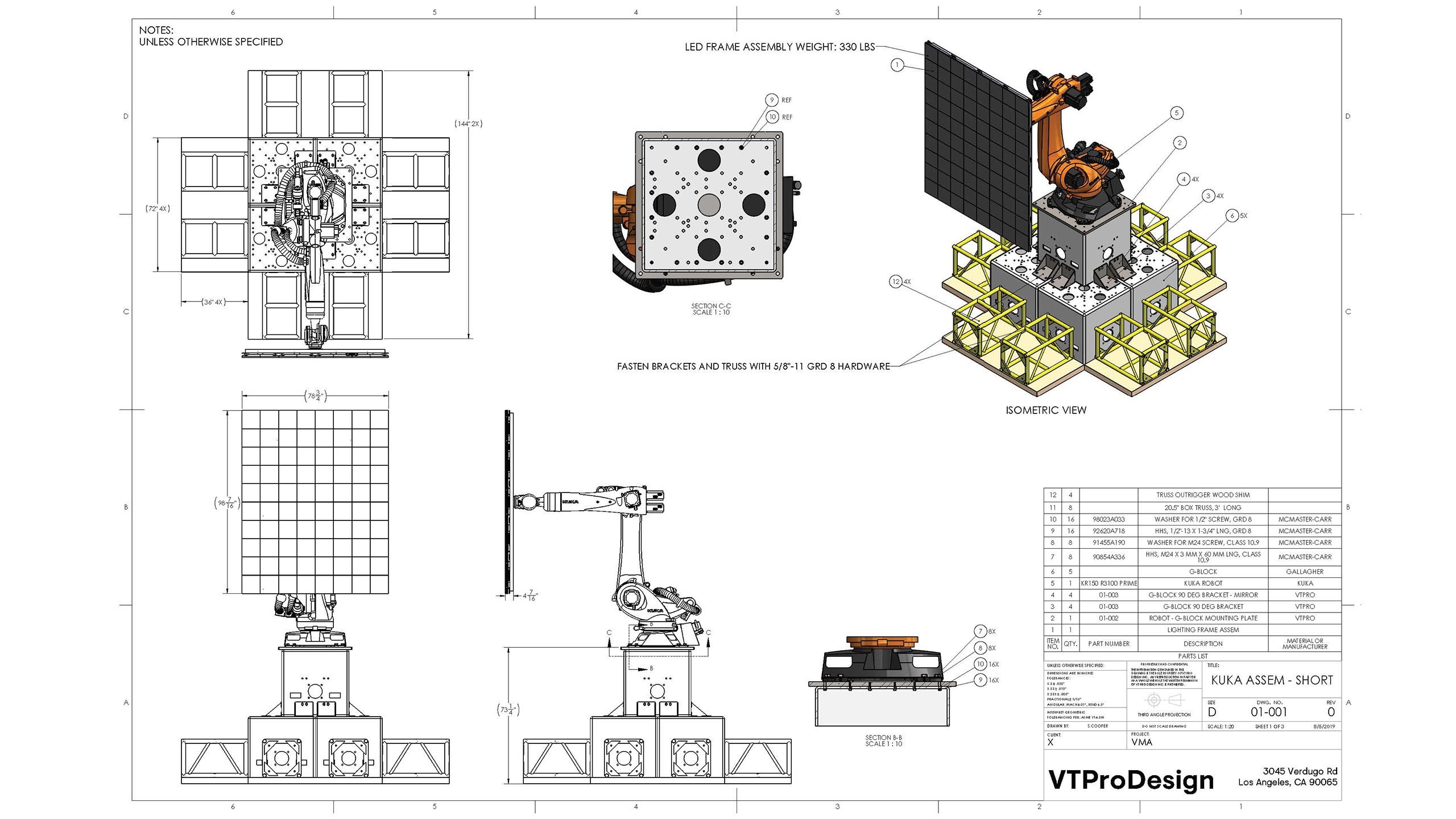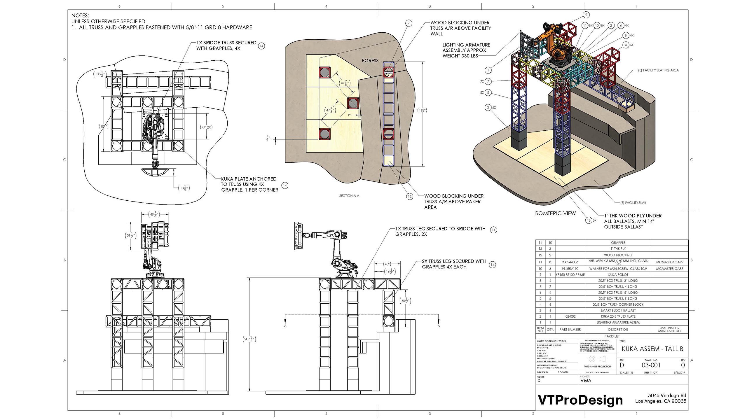 Mechanical and structural design was crucial to the success of the program. One of the biggest challenges was placing two robots almost 20 feet off of the stadium floor.