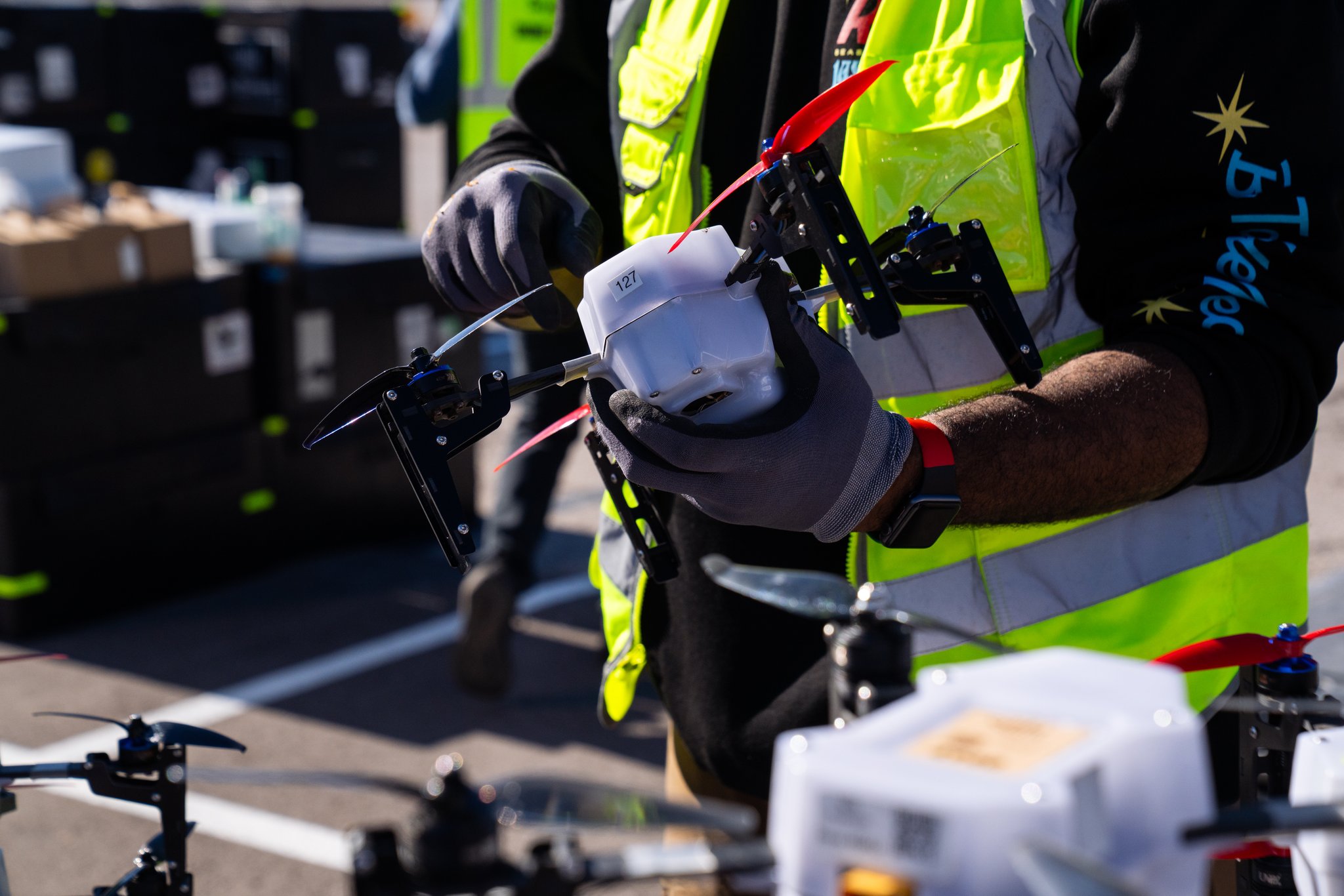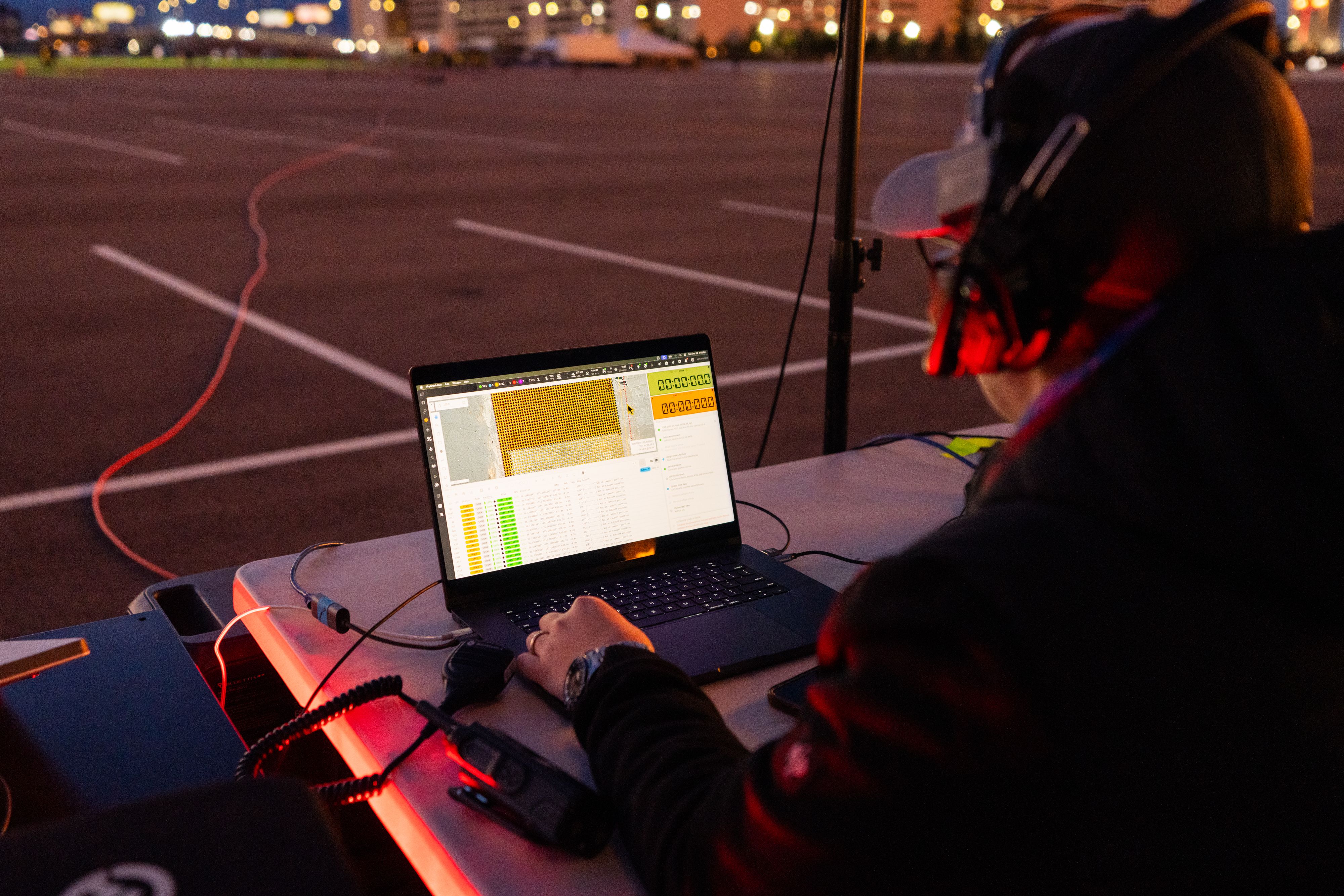 Behind the scenes, the clock was our biggest enemy. Each drone only had about 10 minutes of battery life, and nearly three of those minutes were eaten up by takeoff and landing. That left us with very little room for error. To make it work, we reprogrammed the show’s choreography to aggressively optimize transitions between scenes, shaving down every unnecessary movement to squeeze maximum storytelling into a very tight window.