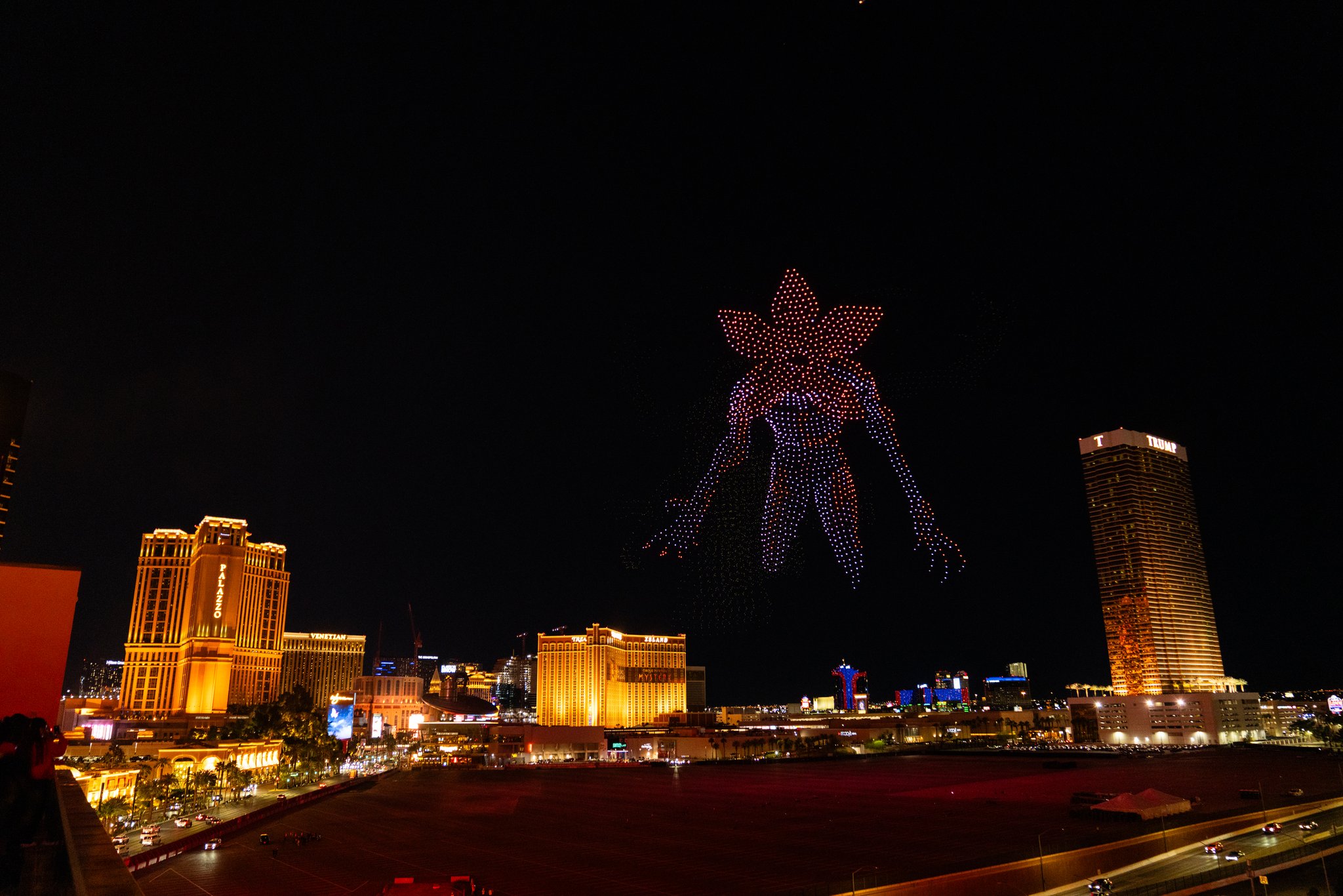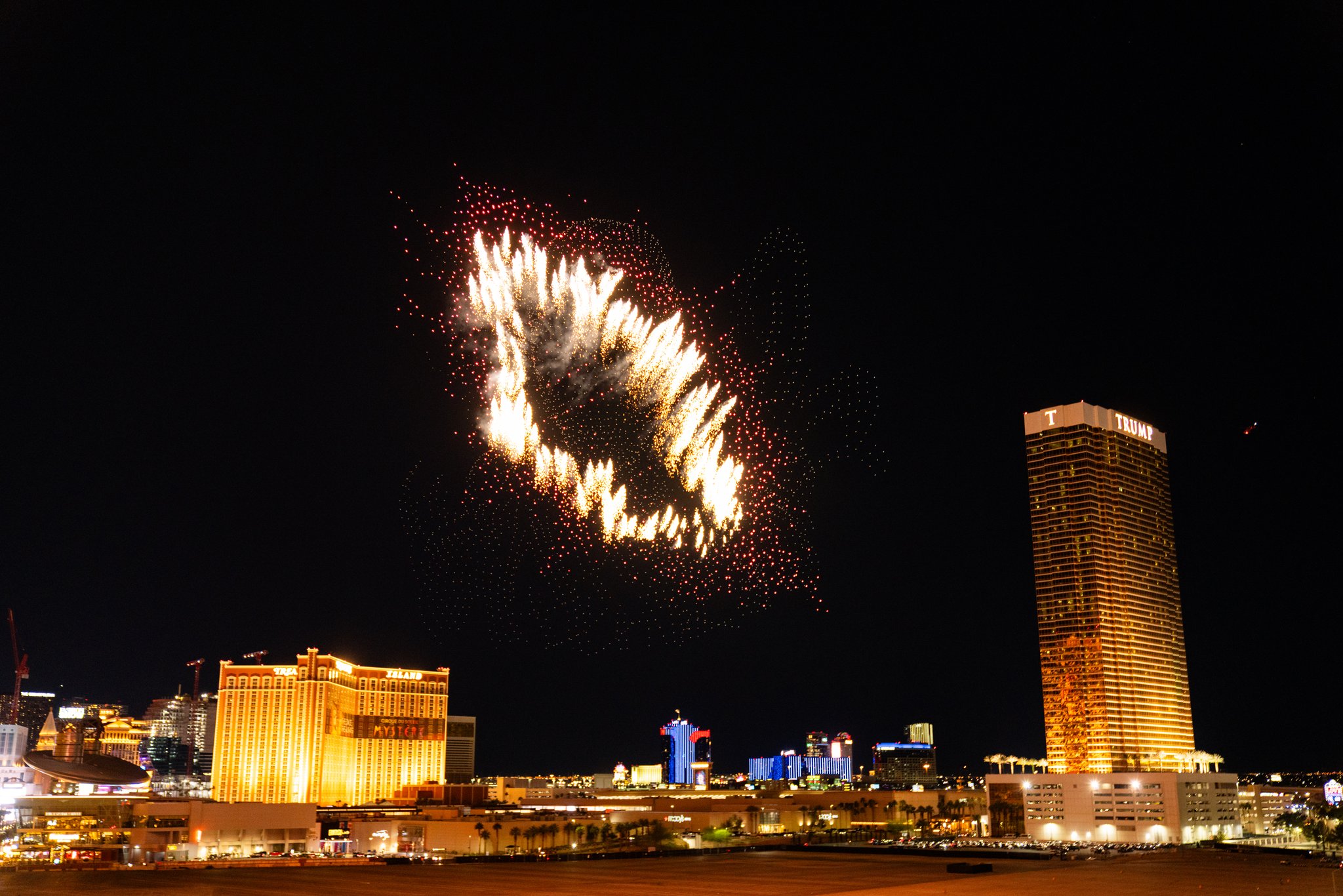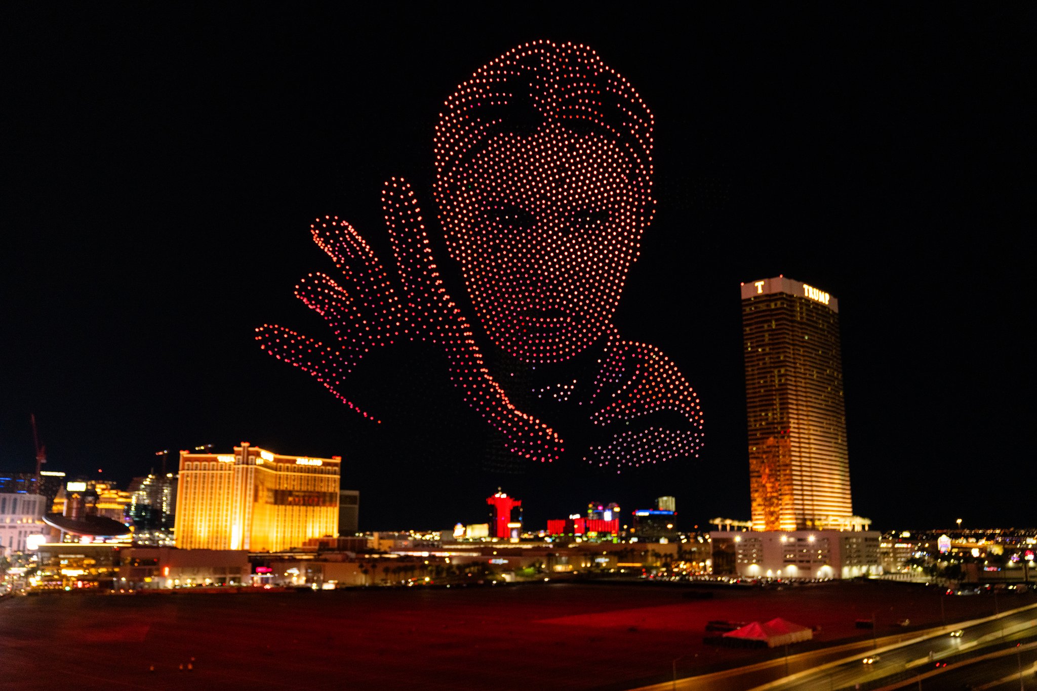 We created one of the largest drone shows ever produced in the United States, turning the night air into a full-blown spectacle built to stop people in their tracks. An eight-minute performance unfolded across a 950-foot-wide canvas, climbing 500 feet into the air, powered by 5,500 drones, including 450 pyro drones that brought real heat to the moment.