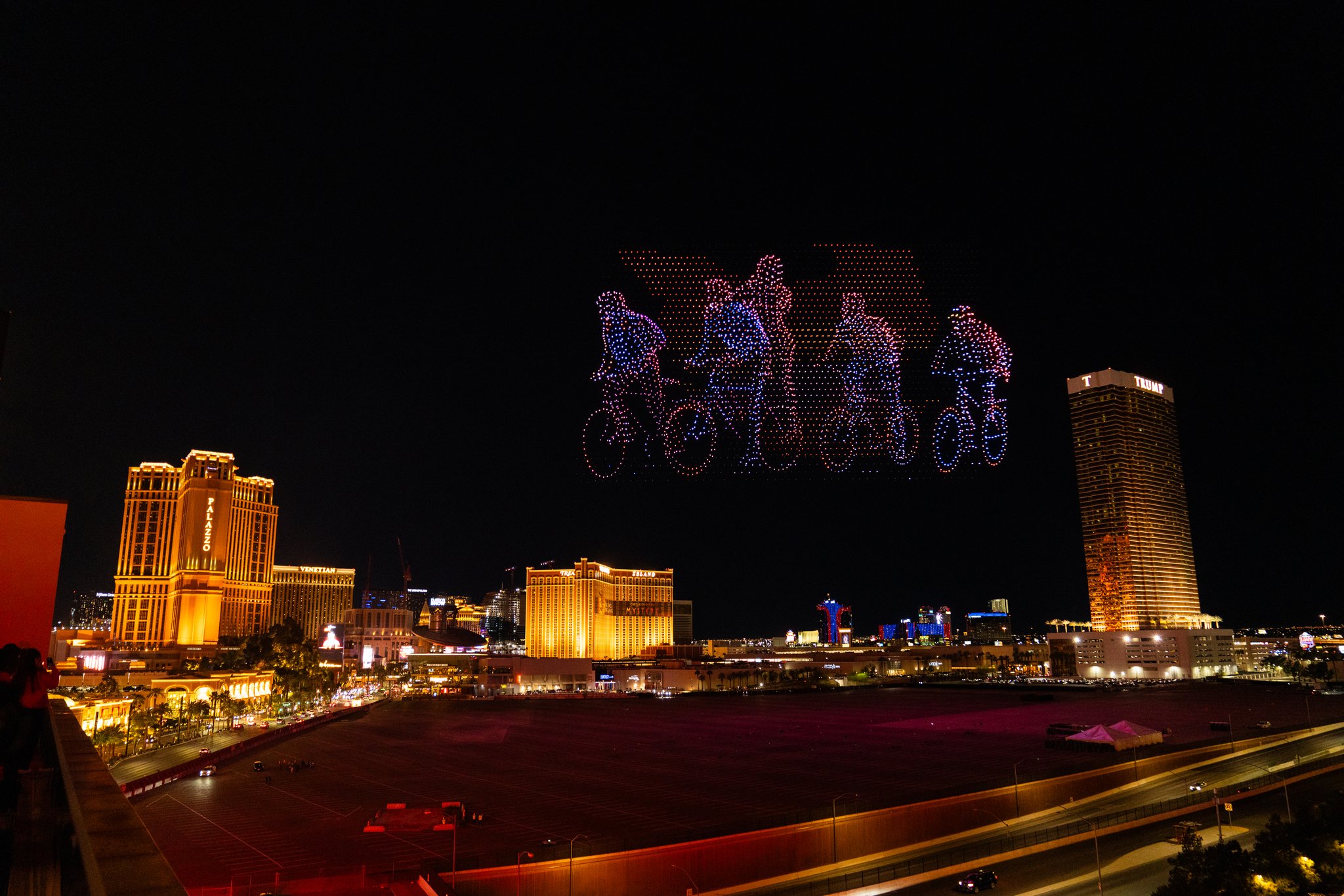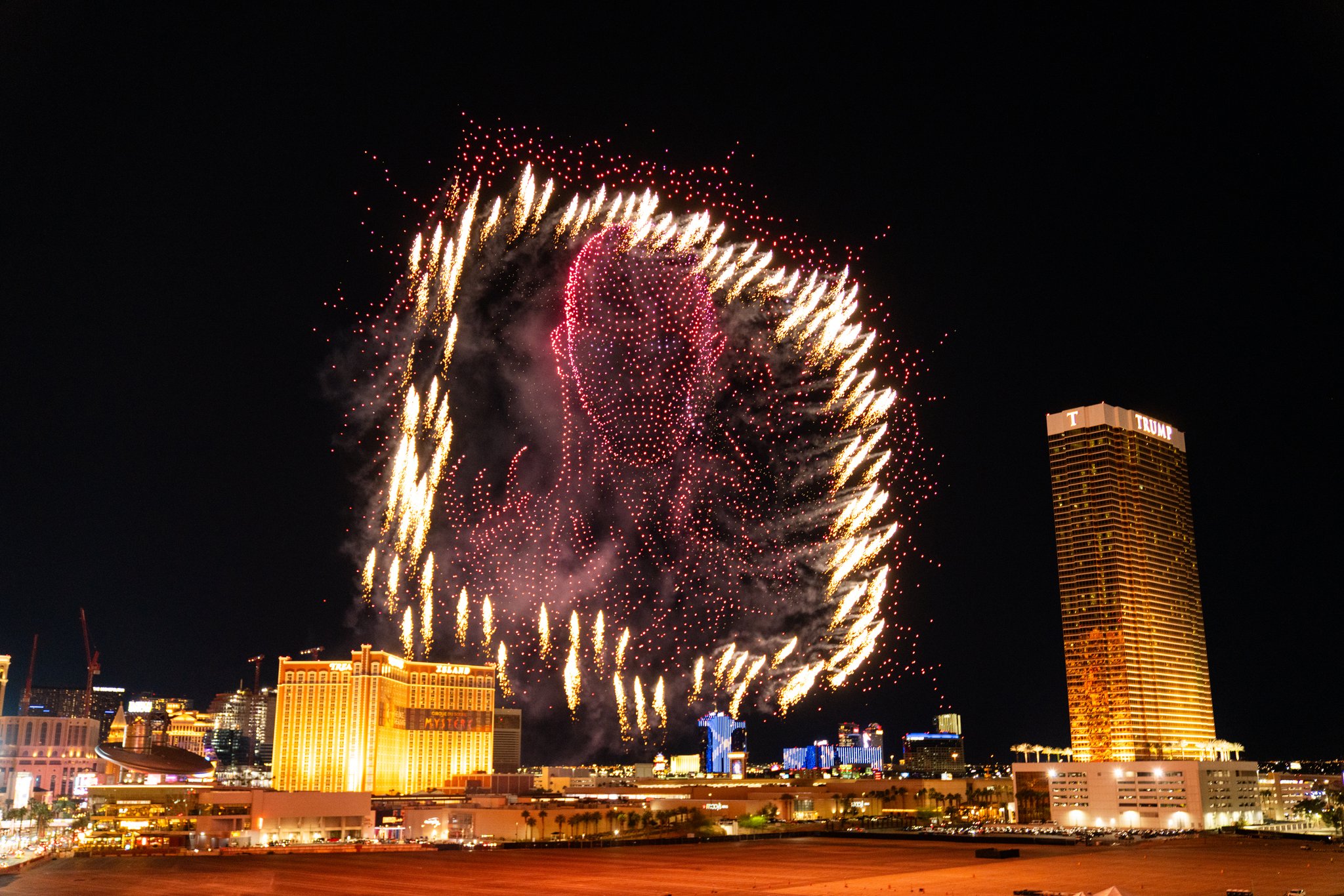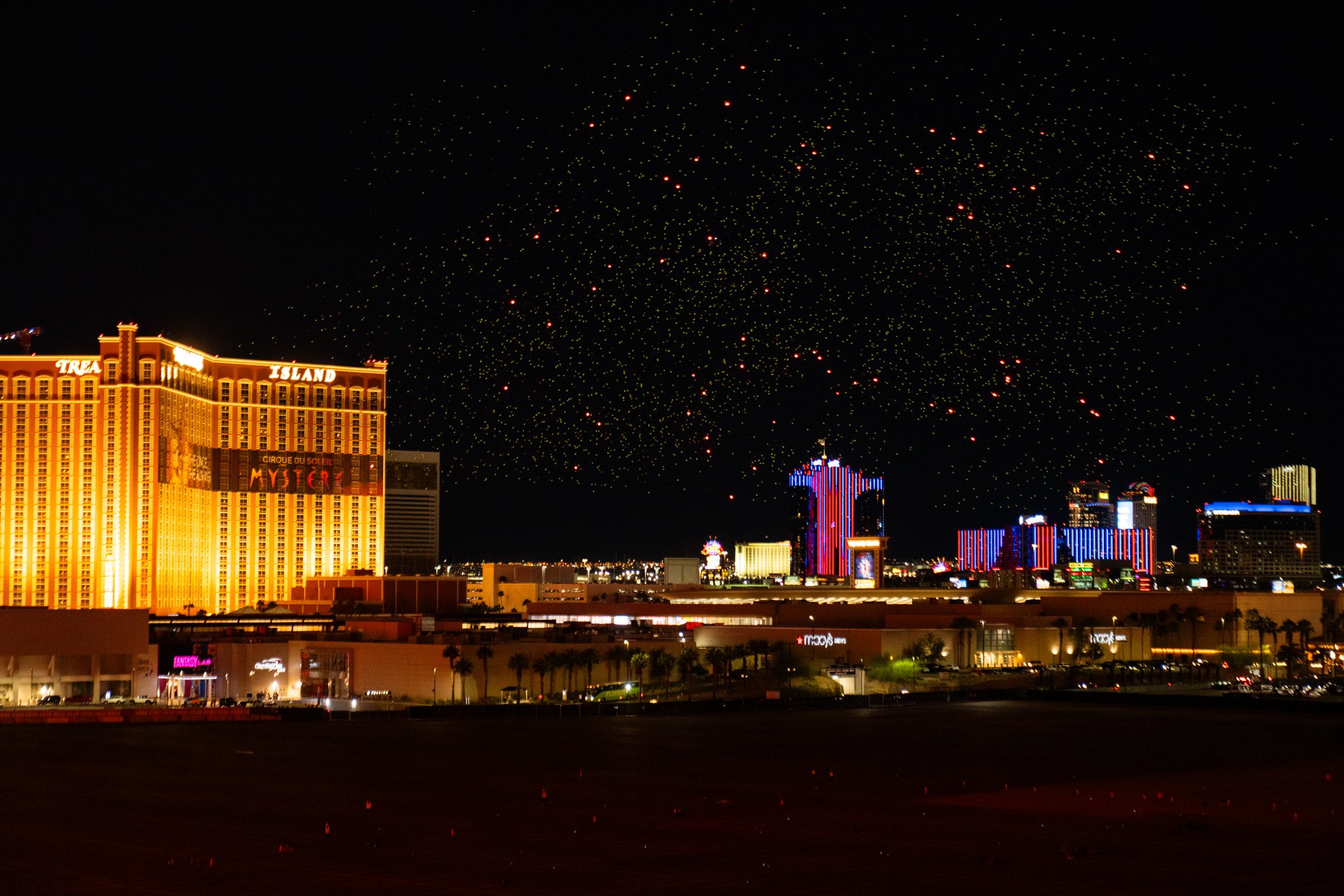 We created one of the largest drone shows ever produced in the United States, turning the night air into a full-blown spectacle built to stop people in their tracks. An eight-minute performance unfolded across a 950-foot-wide canvas, climbing 500 feet into the air, powered by 5,500 drones, including 450 pyro drones that brought real heat to the moment.