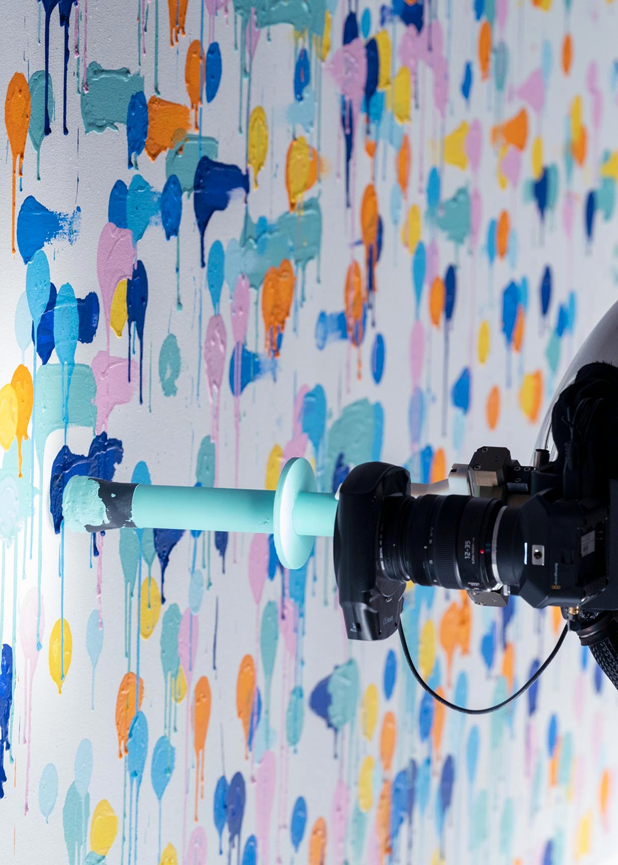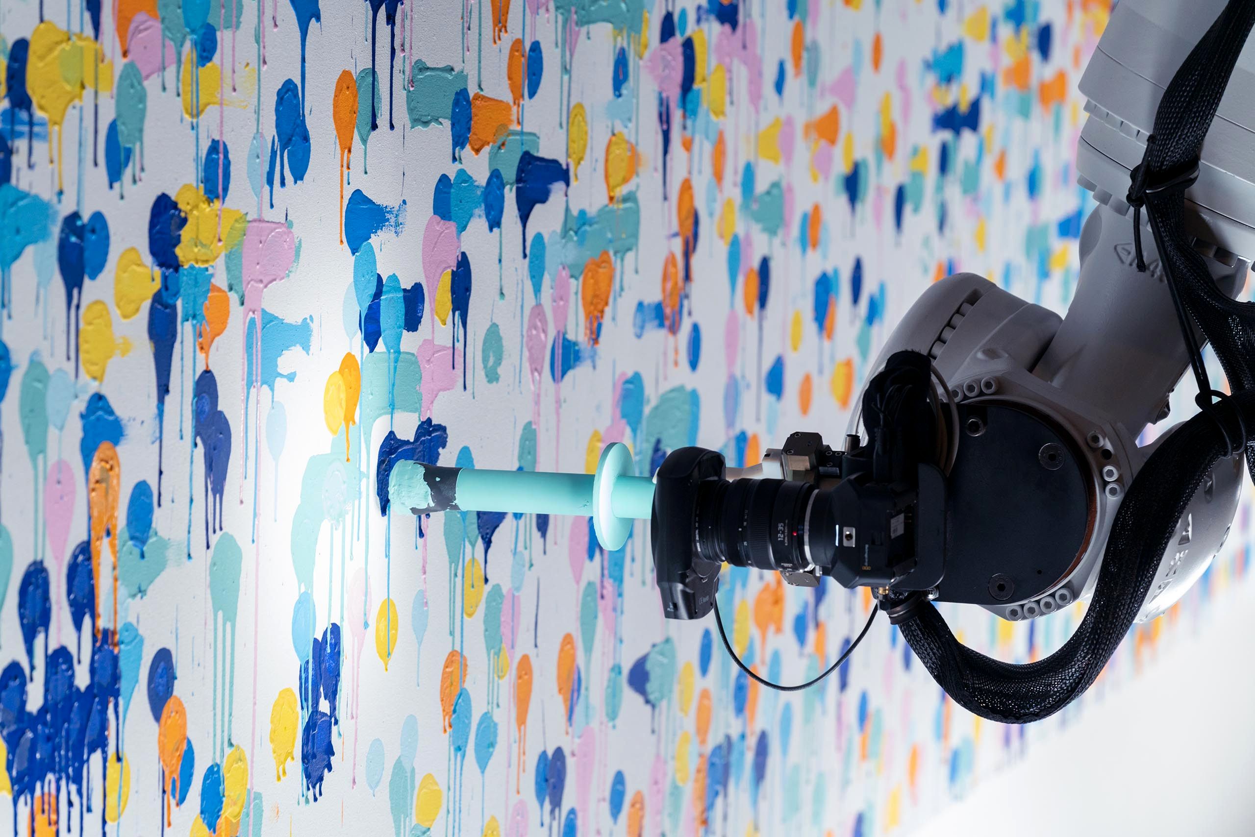 Also incorporated into the experience, a macro lens camera was attached to the arm to capture the freshly painted dot while pulling away from the canvas to produce a unique personalized view into the participants mark on the canvas.
