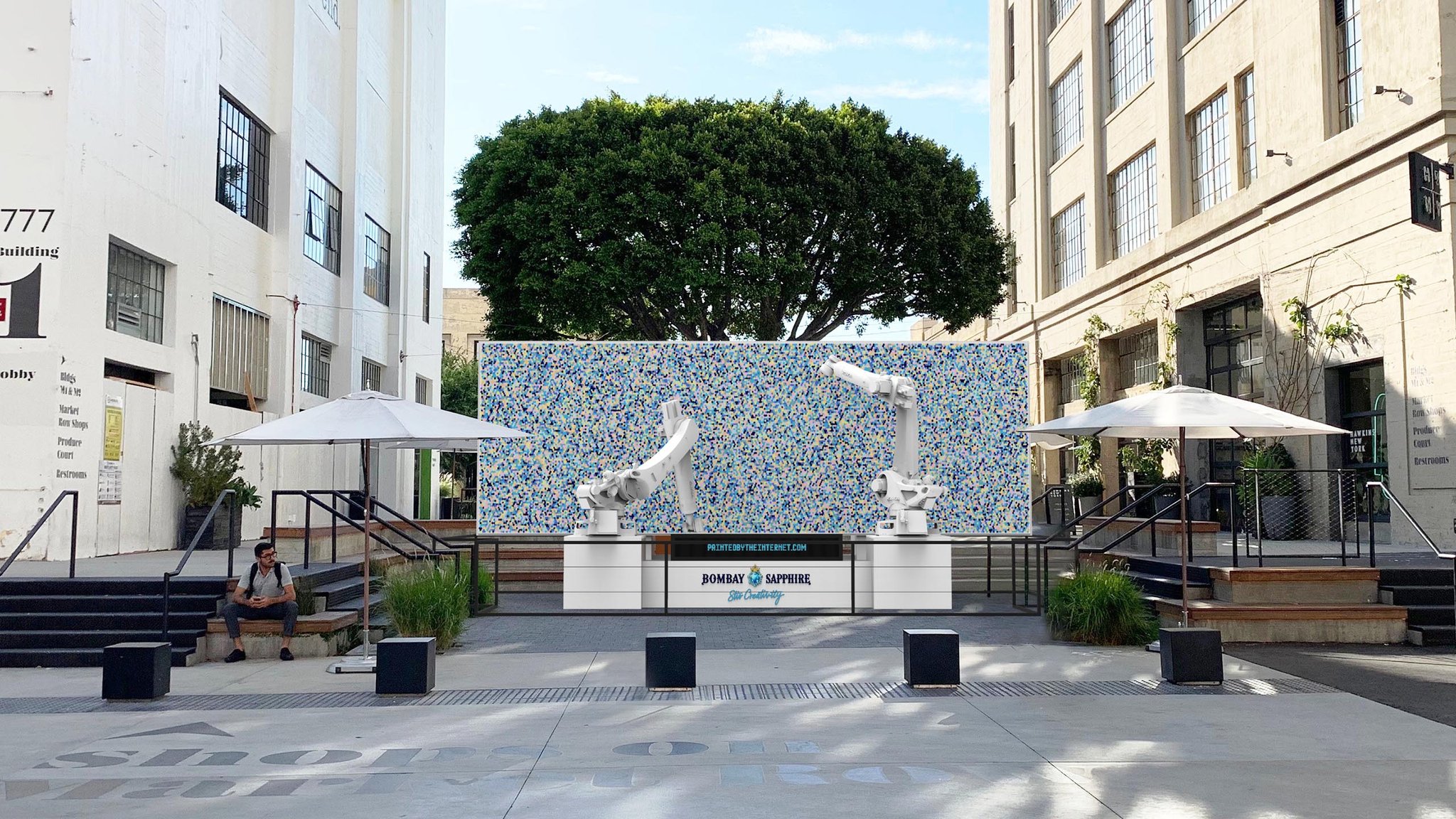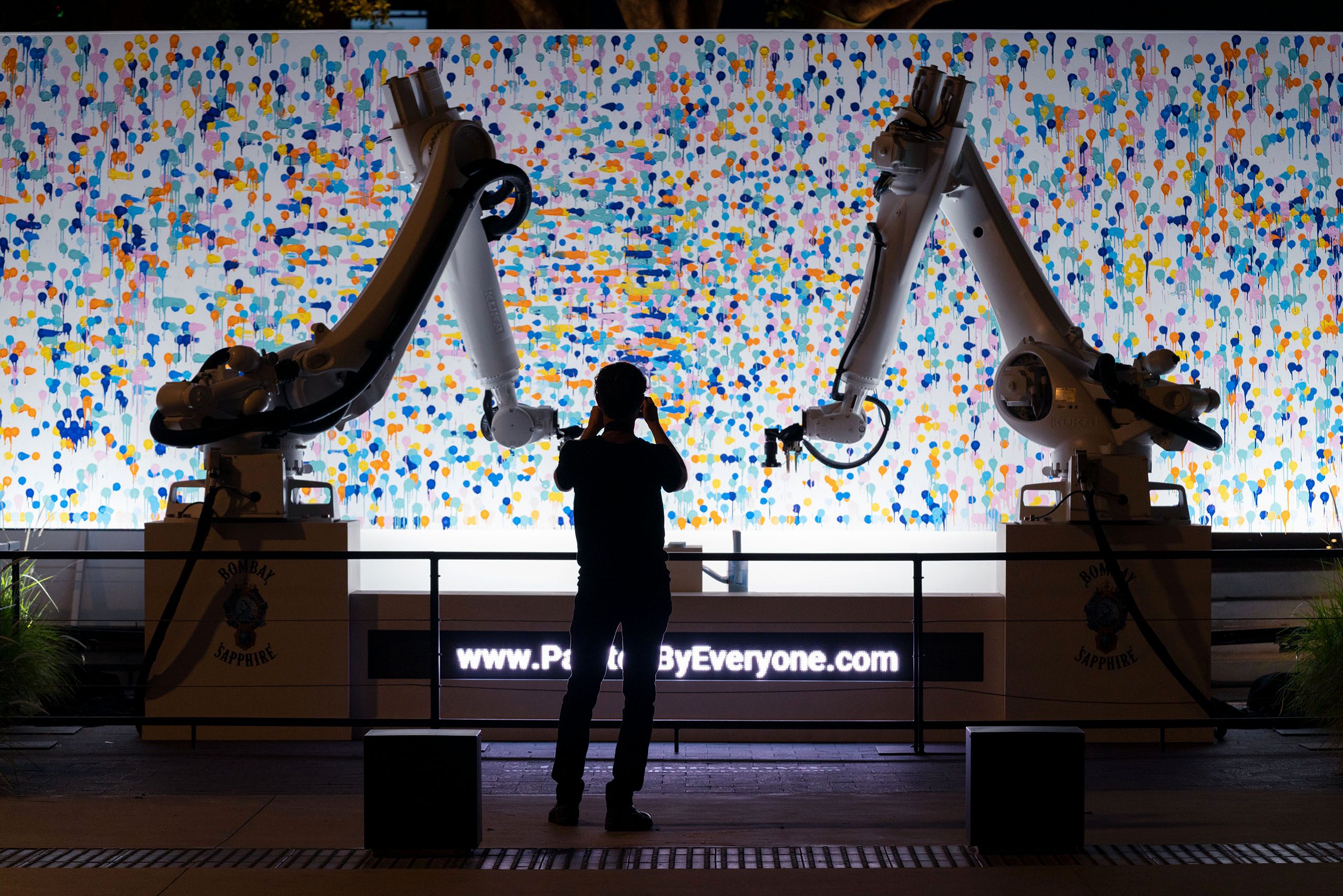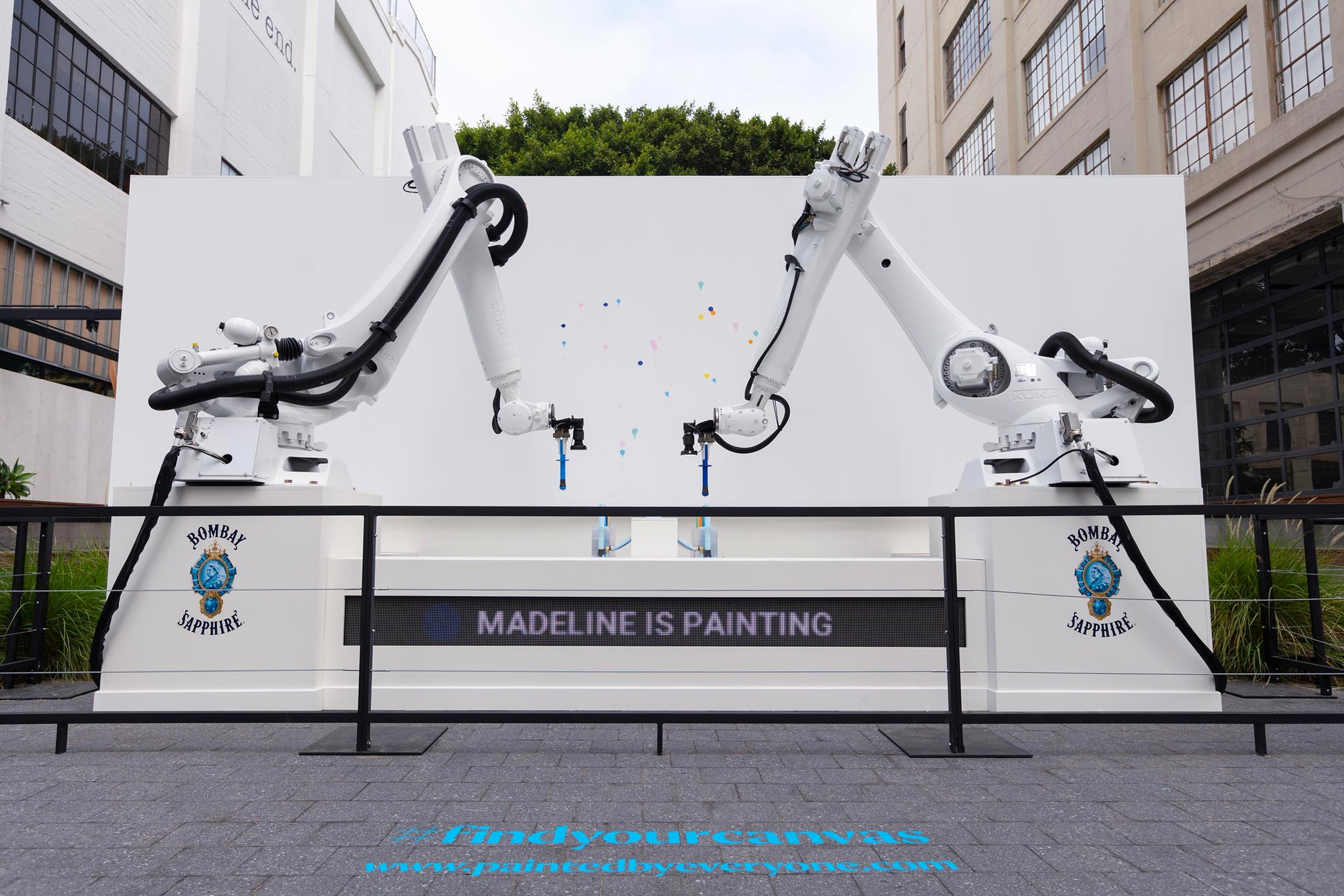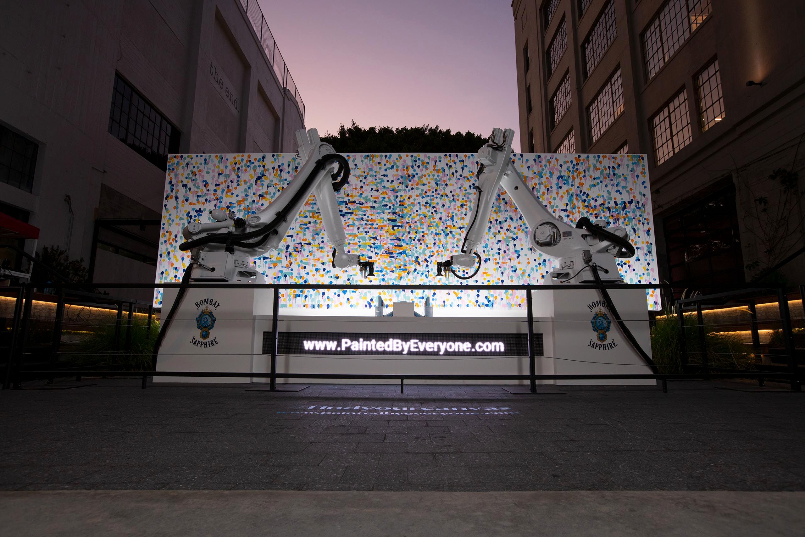 A Crowd-sourced Piece of Art1501 Working with BBDO New York we were brought on to create an experience for Bombay Sapphire that utilized two of our Kuka Robots to produce a crowdsourced piece of art.
