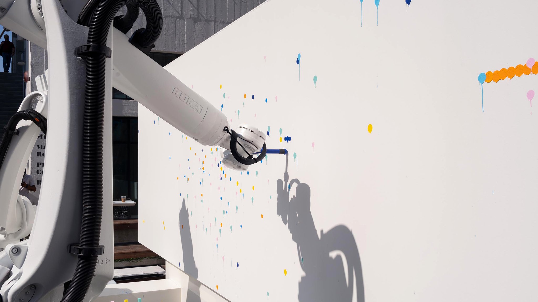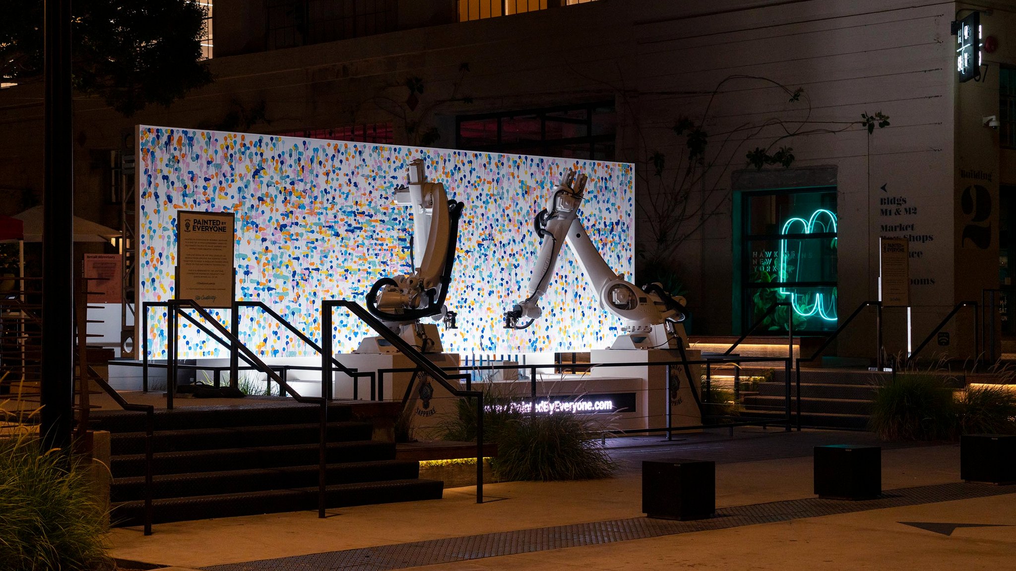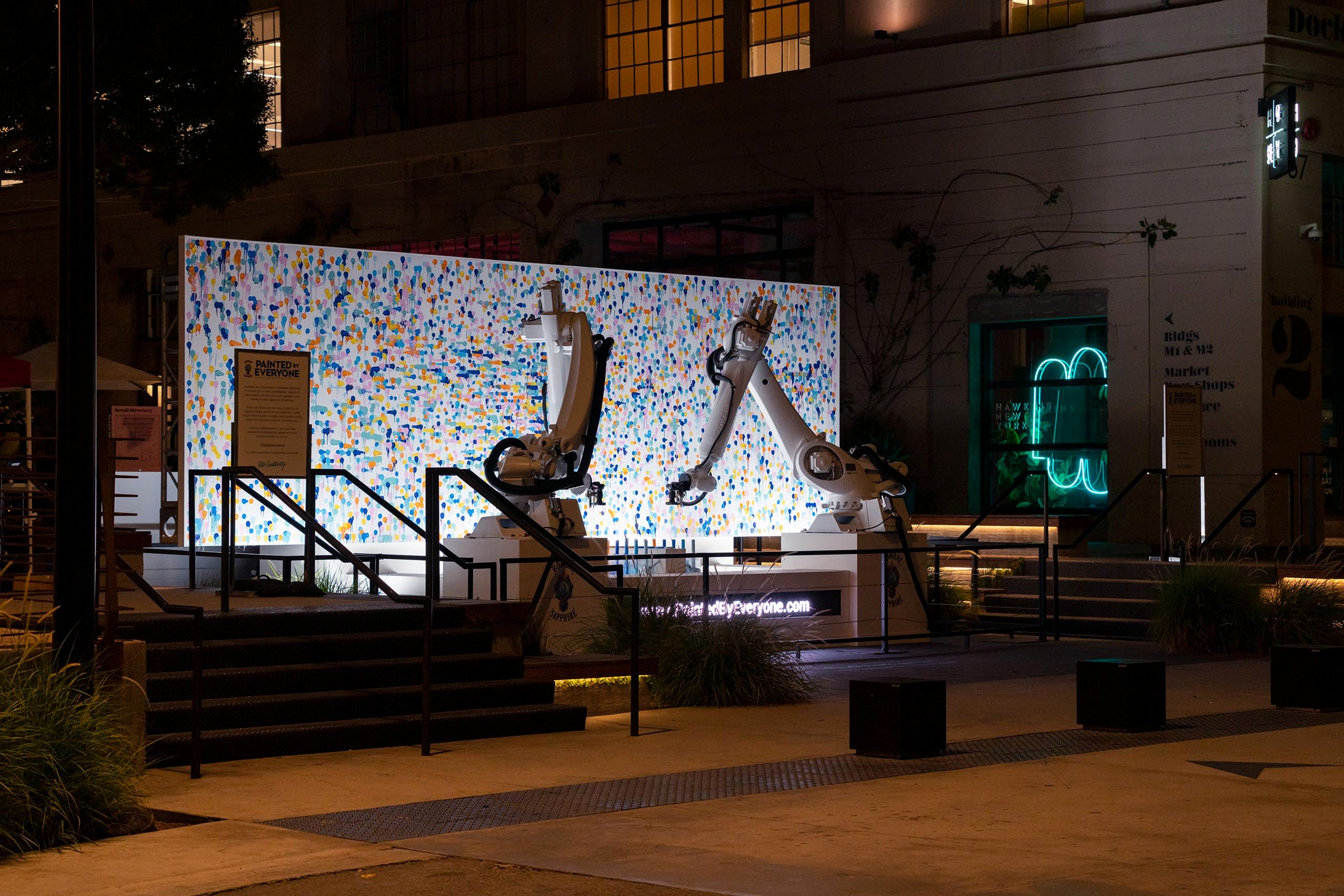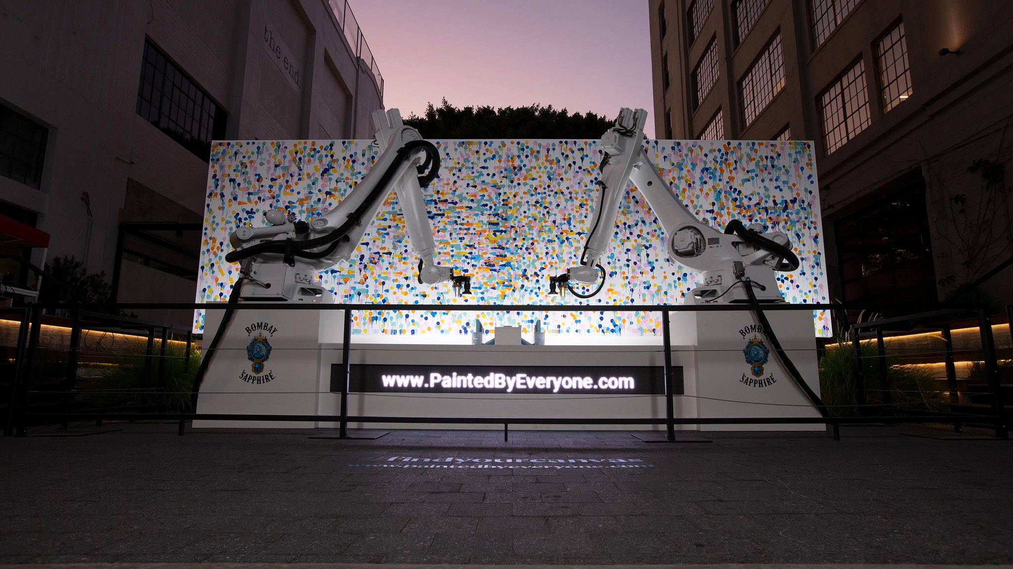 Participants were invited to visit a web portal to select a color and its corresponding placement on the canvas. They could then view a live feed as their contributions were painted onto the canvas in real time by the robotic arms, living at ROW DTLA.