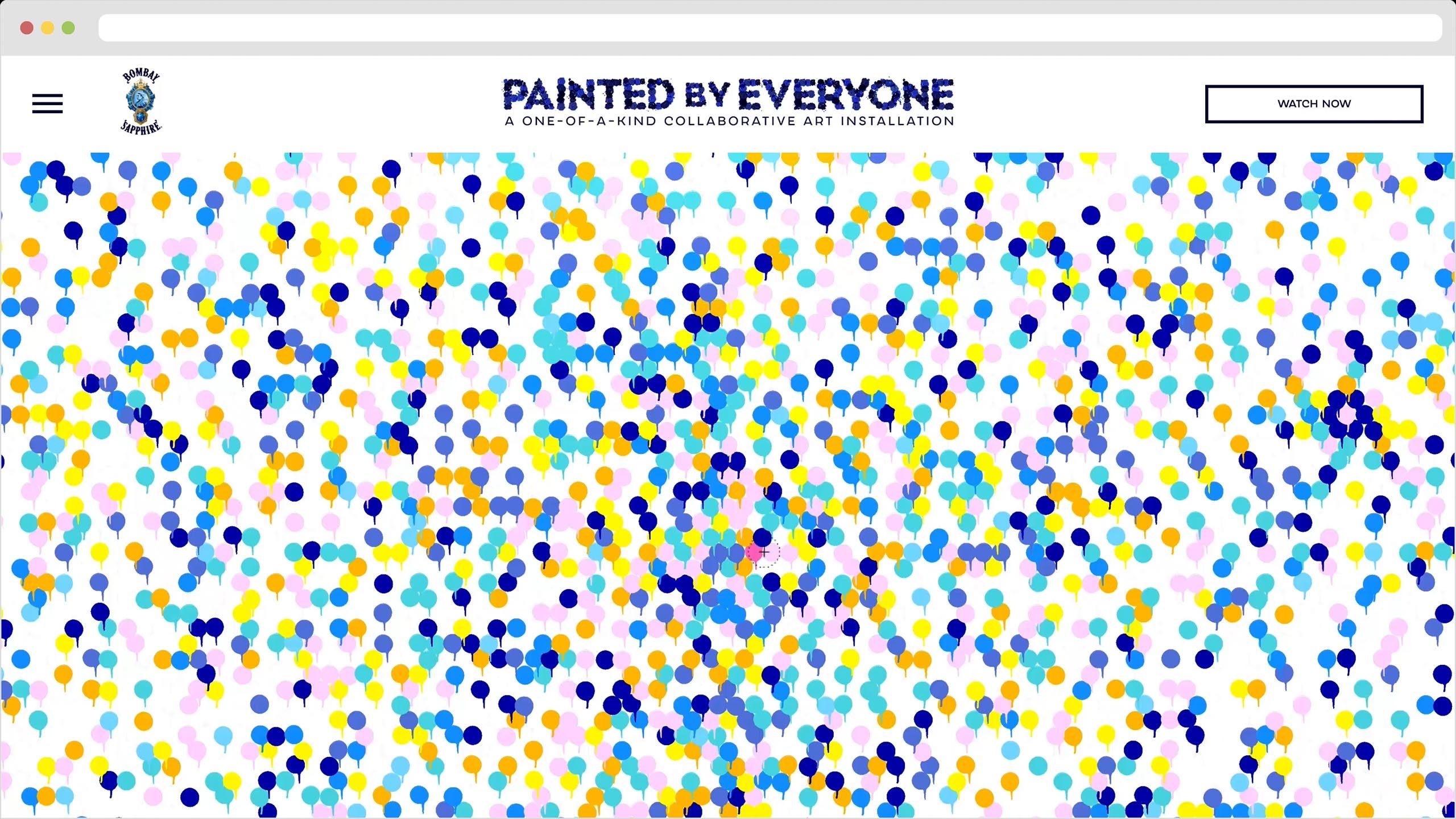 The web portal was a single page experience featuring an interactive area for user participation, a live stream area to watch the experience in real time, and a digital gallery of dots to represent painted areas on the canvas. This portal allowed users from all across the world to participate and collaboratively paint together on one canvas.