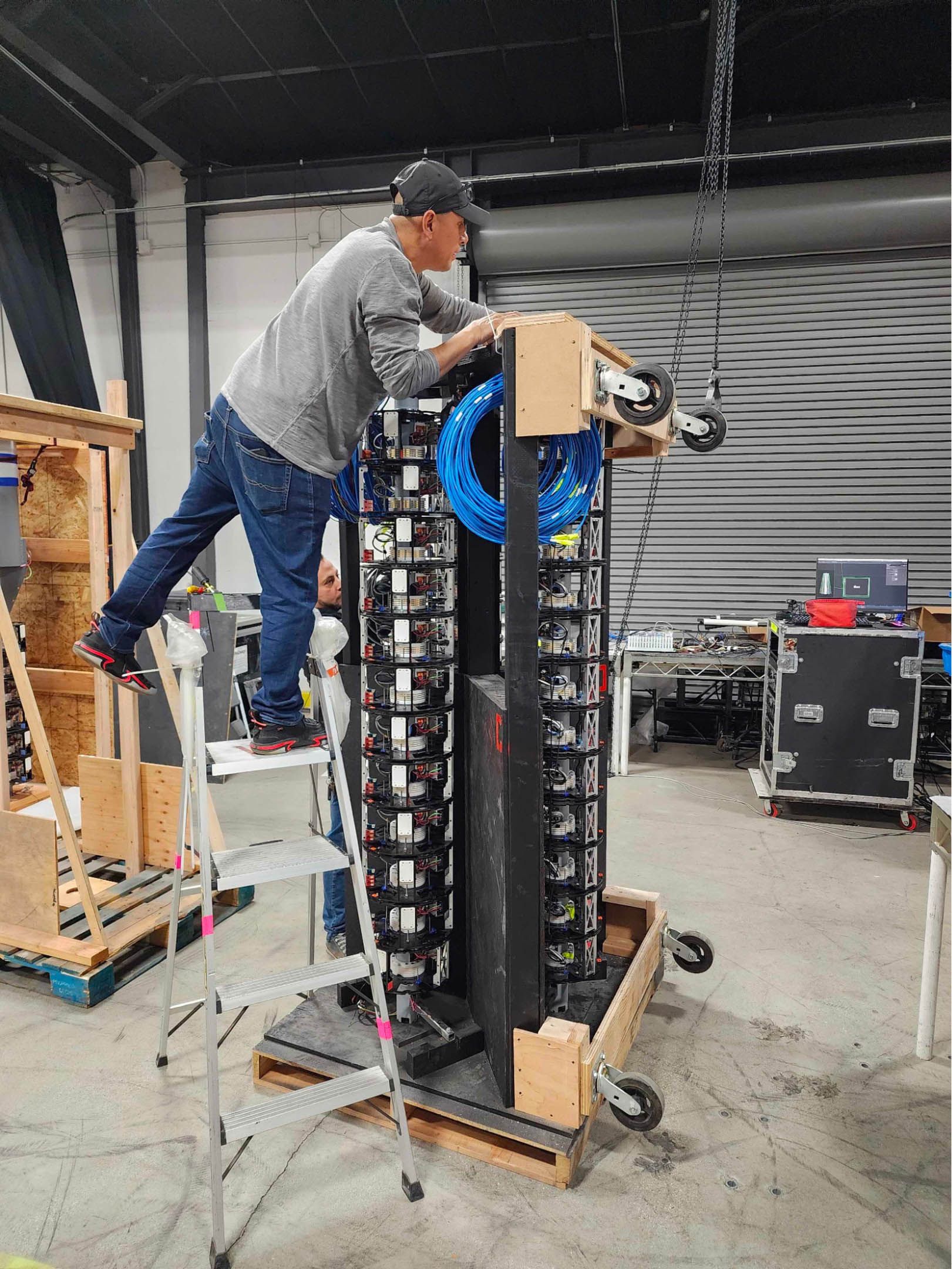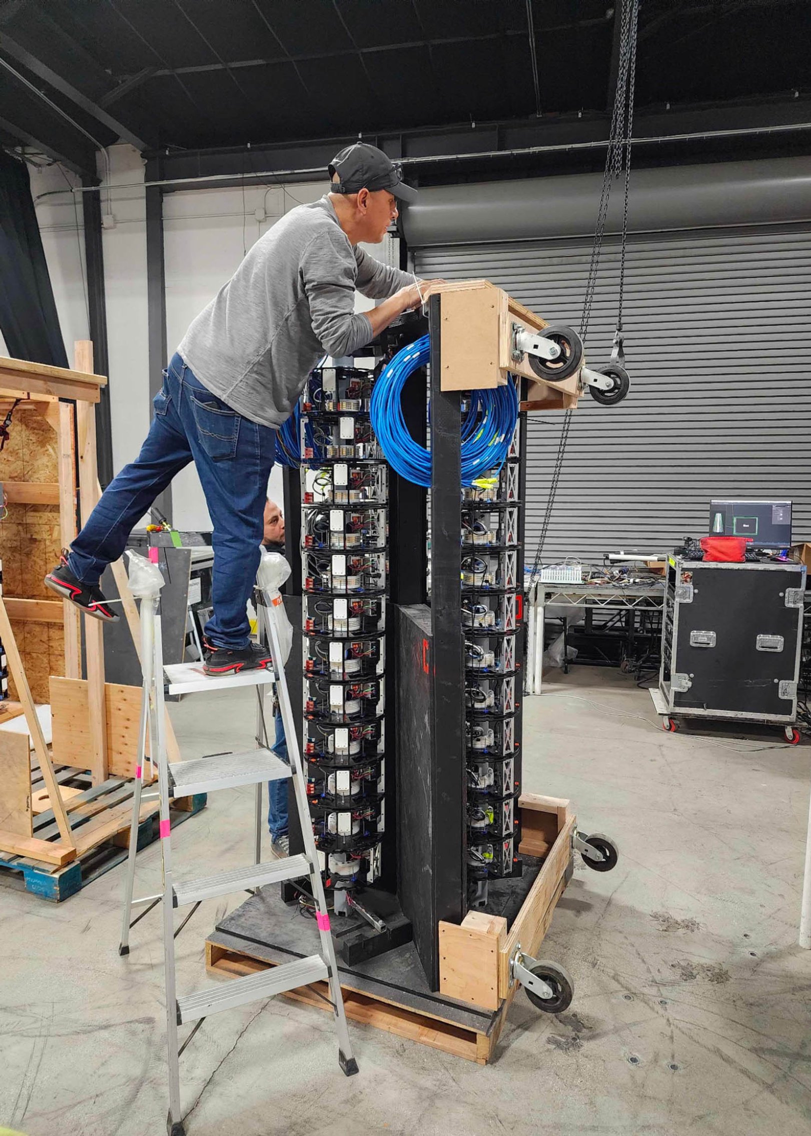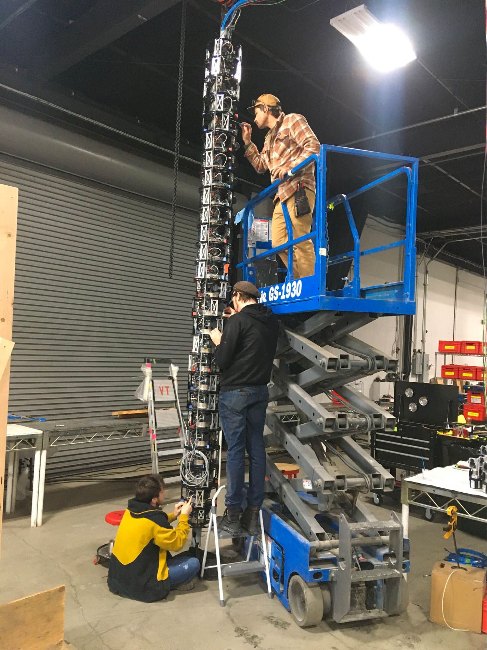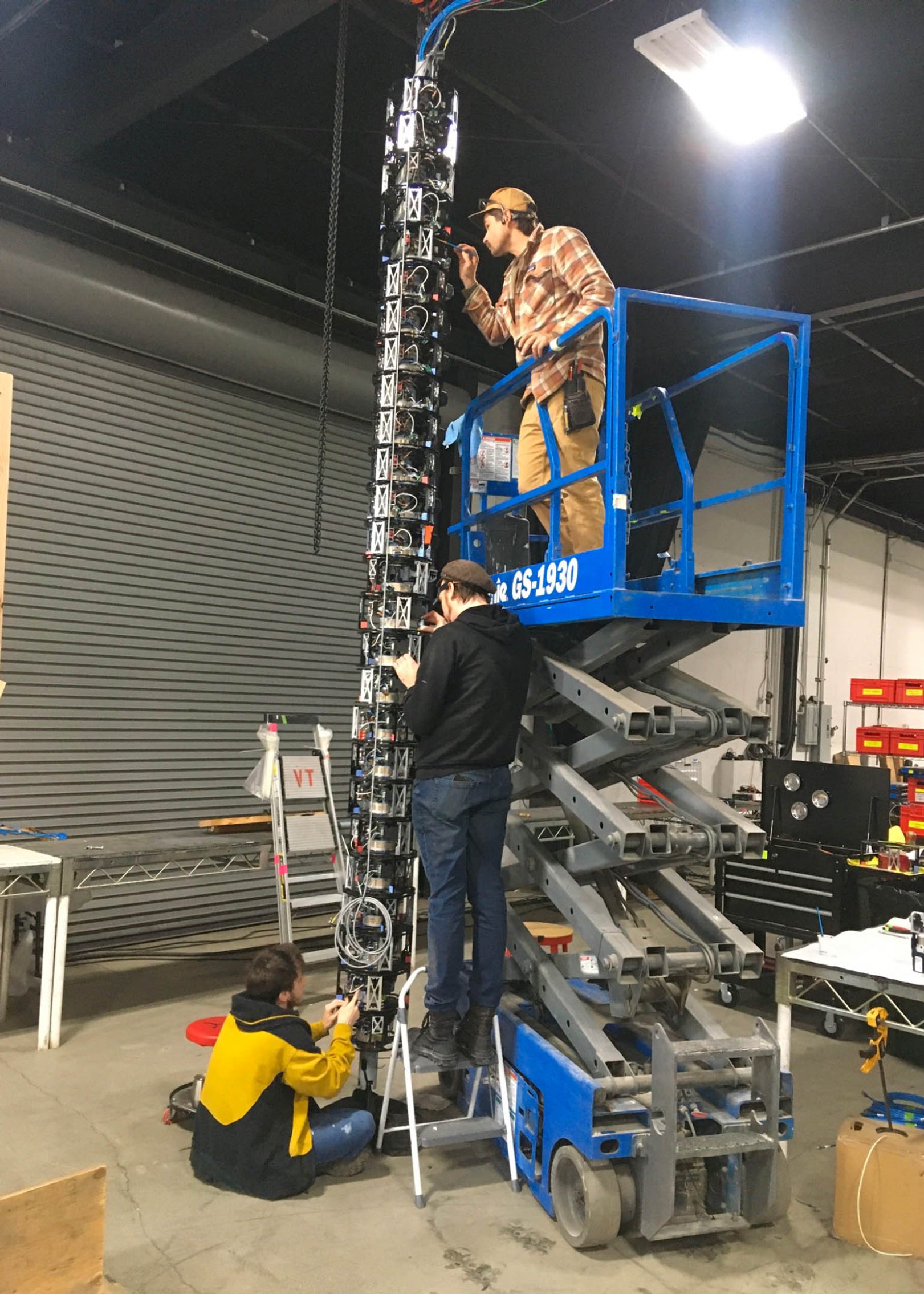 We then assembled the final production elements in three sections and thoroughly QC'd them in LA to ensure the final assembly was flawless. The installation process was not without its challenges, as we had to hoist sections of the sculpture into place and join them together with some components needing to be assembled onsite and in the air.