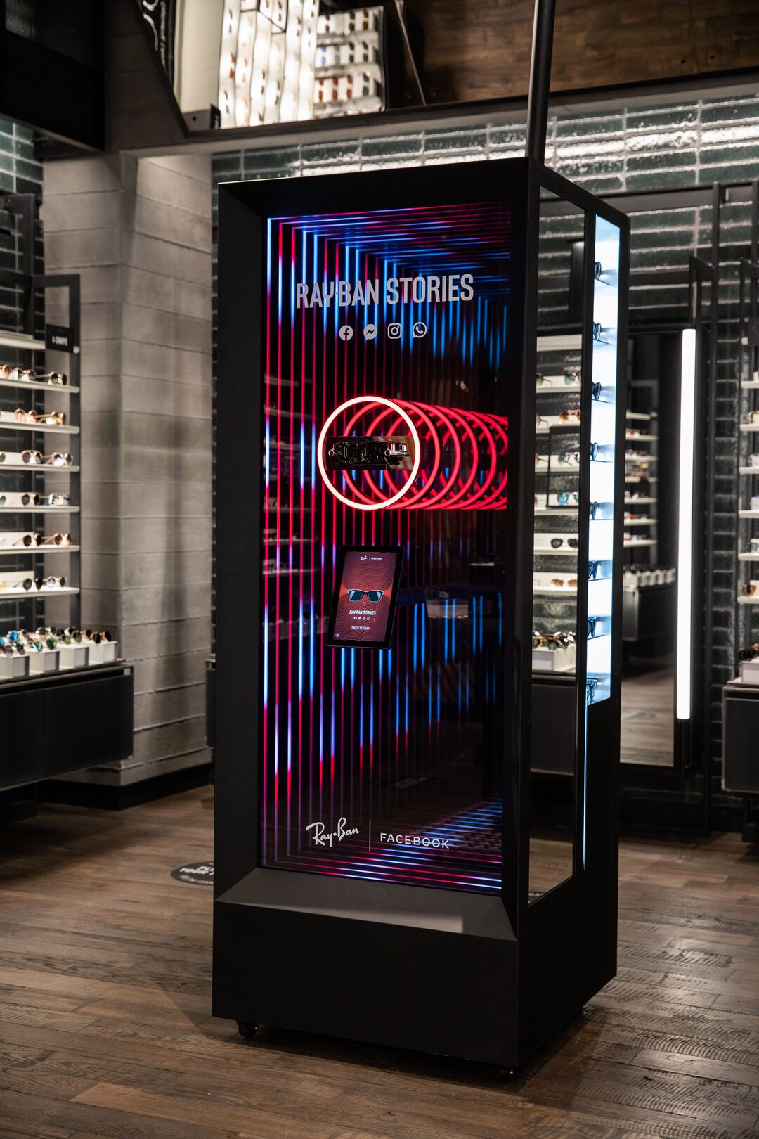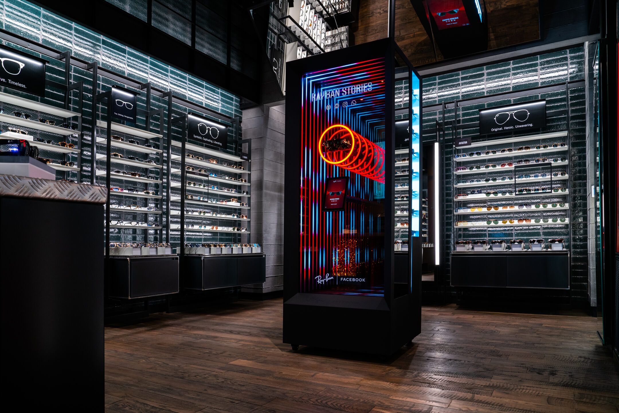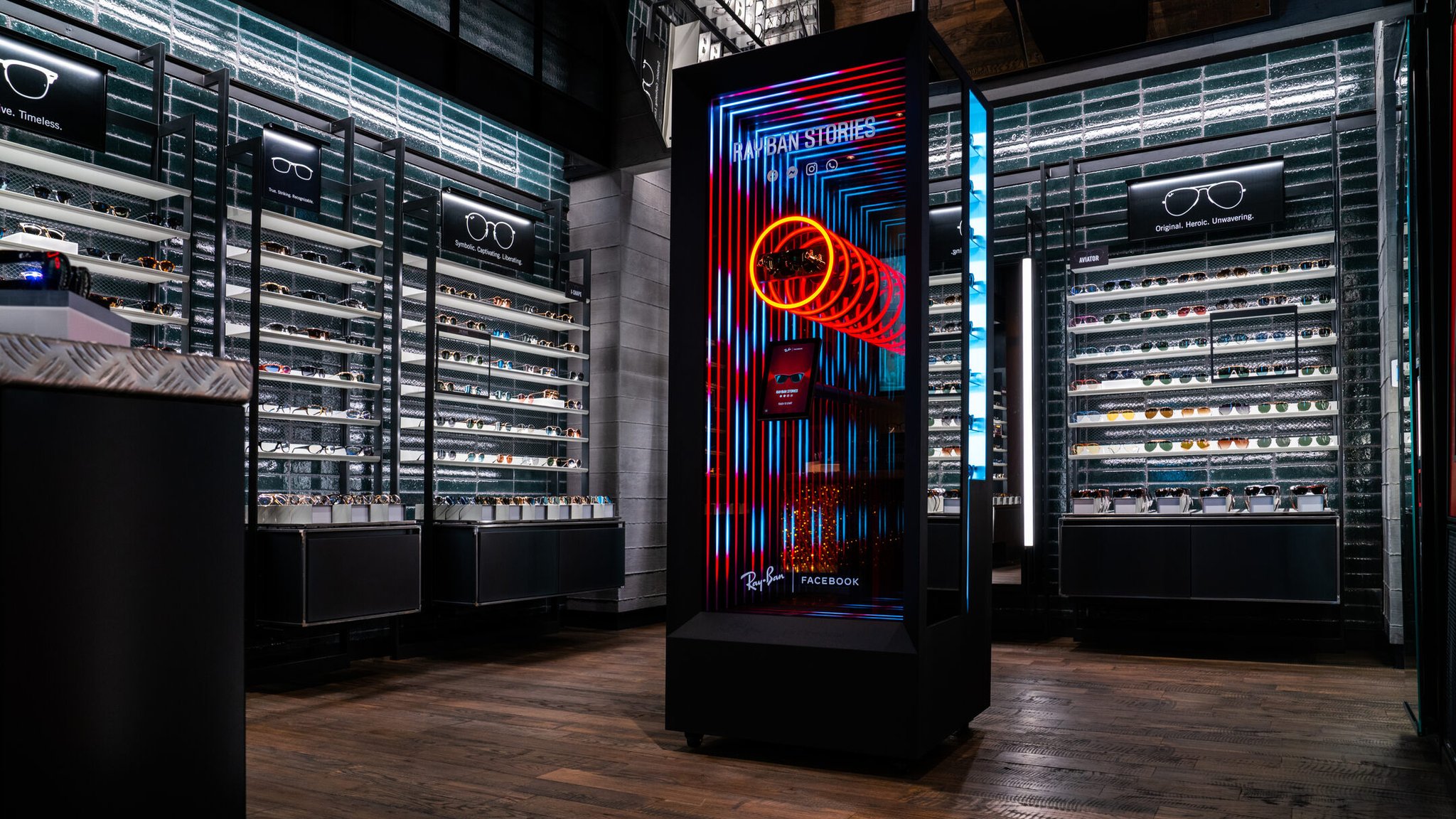 The Ray-Ban Stories activation also required us to apply our spatial design abilities. Working within the confines of a limited space forced us to think outside the metaphorical box, maximizing each and every cubic inch of a fixture’s area. Each display also incorporated interactive elements.