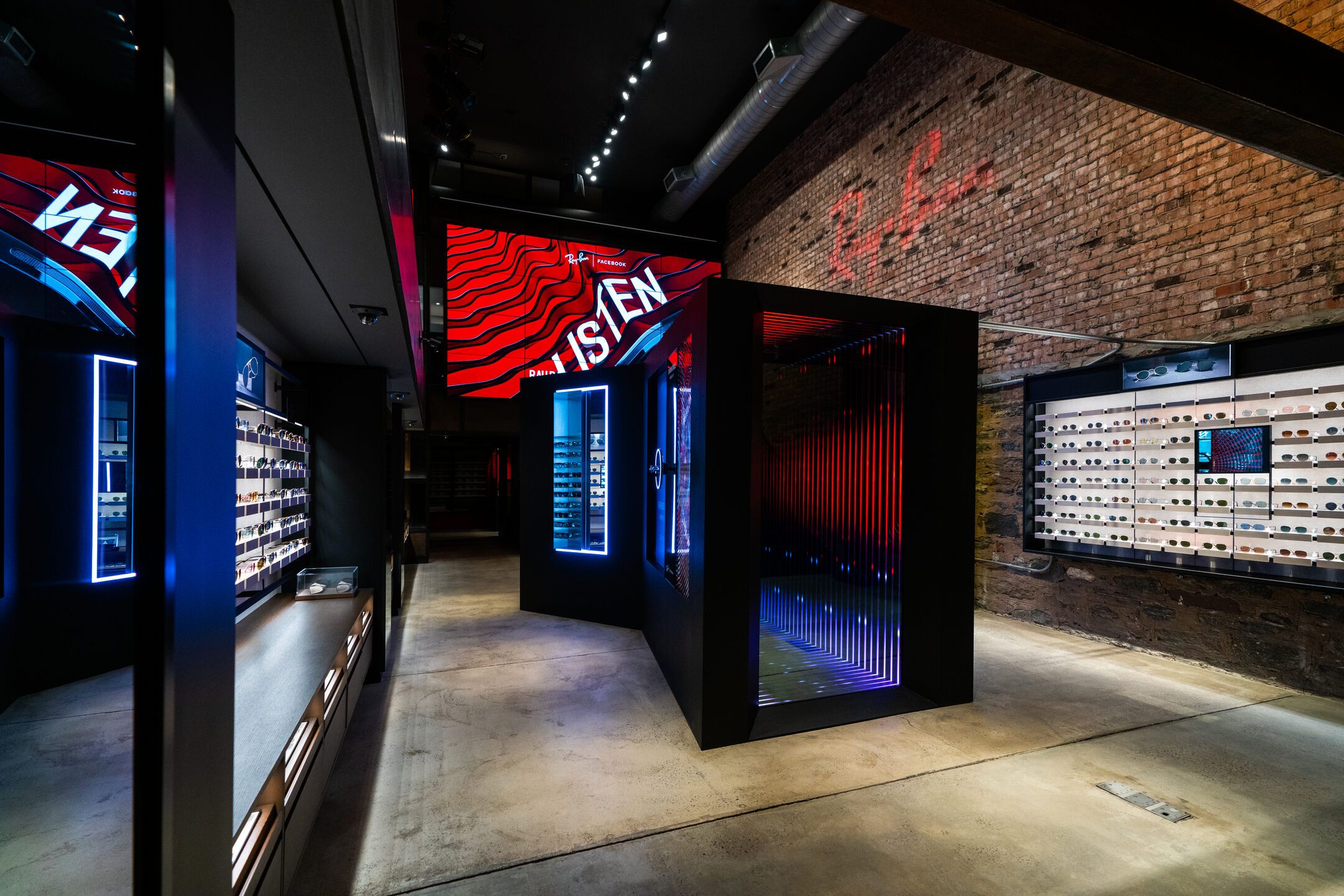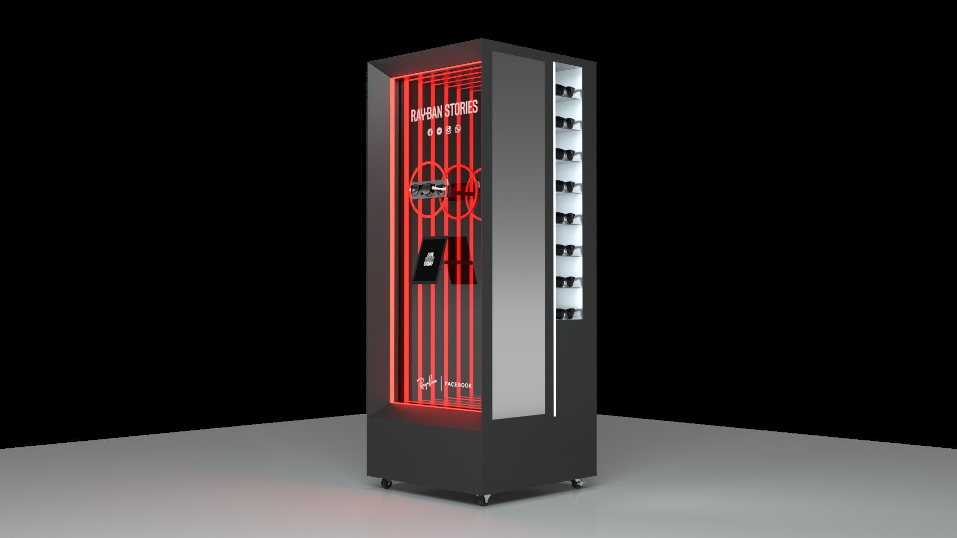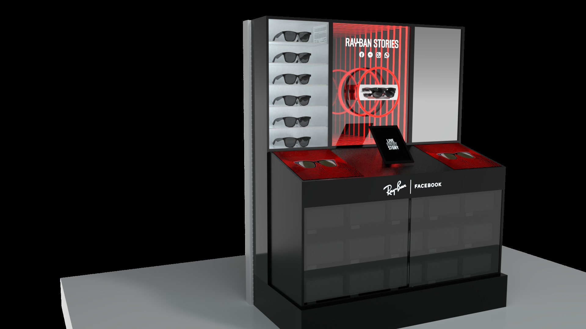 The Ray-Ban Stories activation also required us to apply our spatial design abilities. Working within the confines of a limited space forced us to think outside the metaphorical box, maximizing each and every cubic inch of a fixture’s area. Each display also incorporated interactive elements.