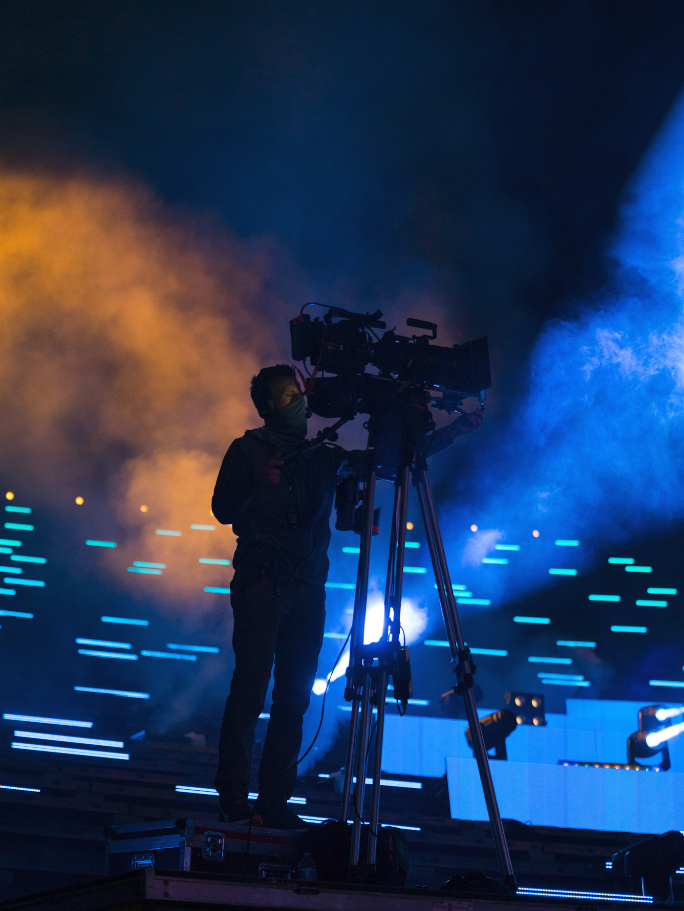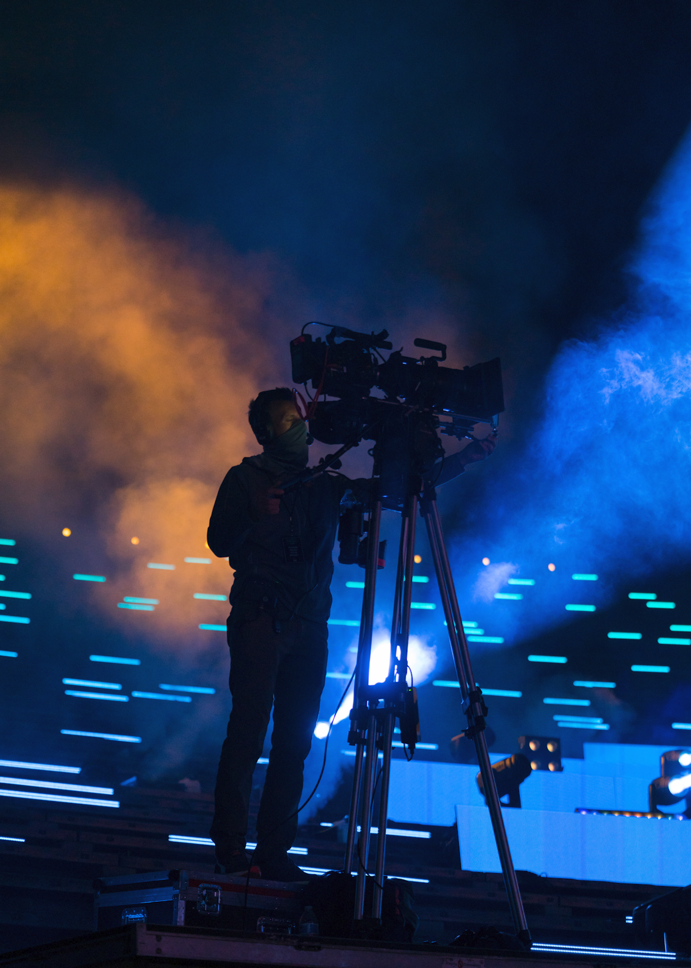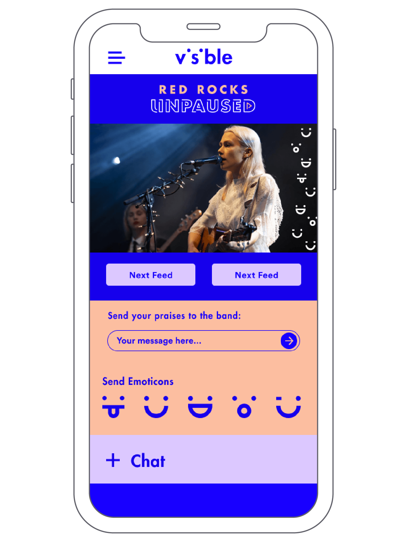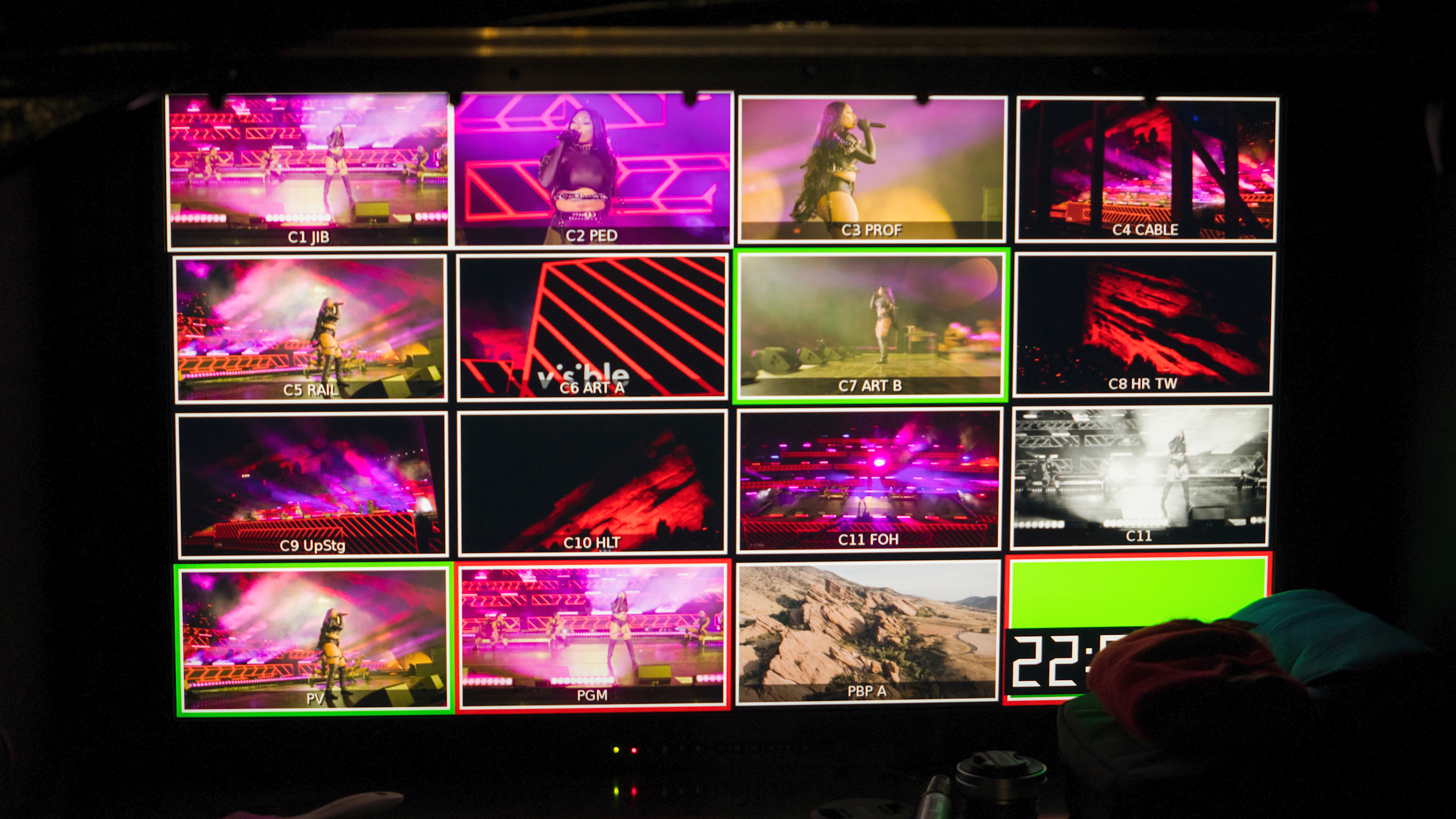 With the help of our friend Master of Shapes, we created a custom website that hosted the experience, provided multiple angles to view the show, and added interactive moments throughout to connect the at home audience to the artists on stage. These included pumping at home audiences cheering into the venue and projecting messages and emojis onto the giant red rocks in the venue.