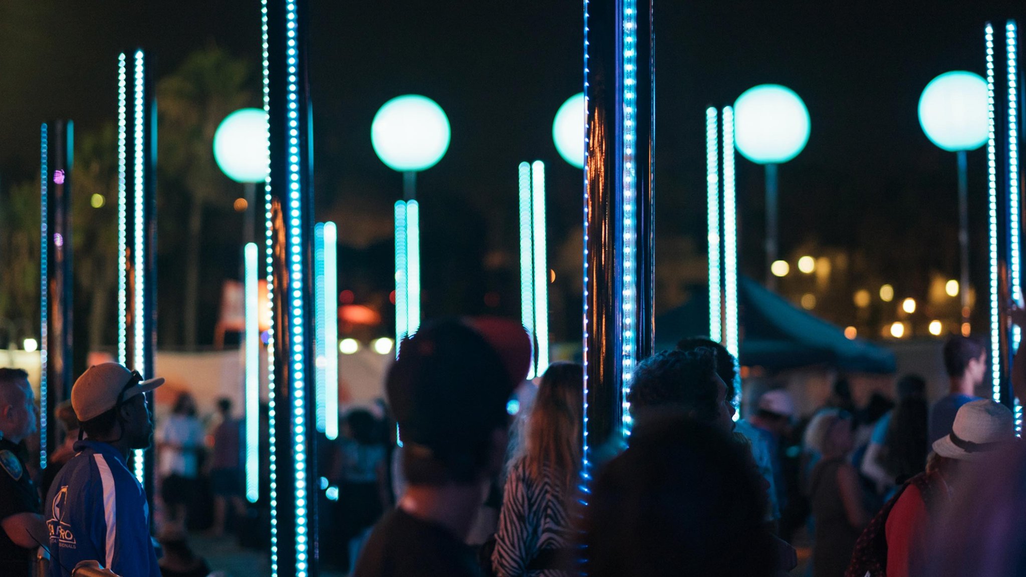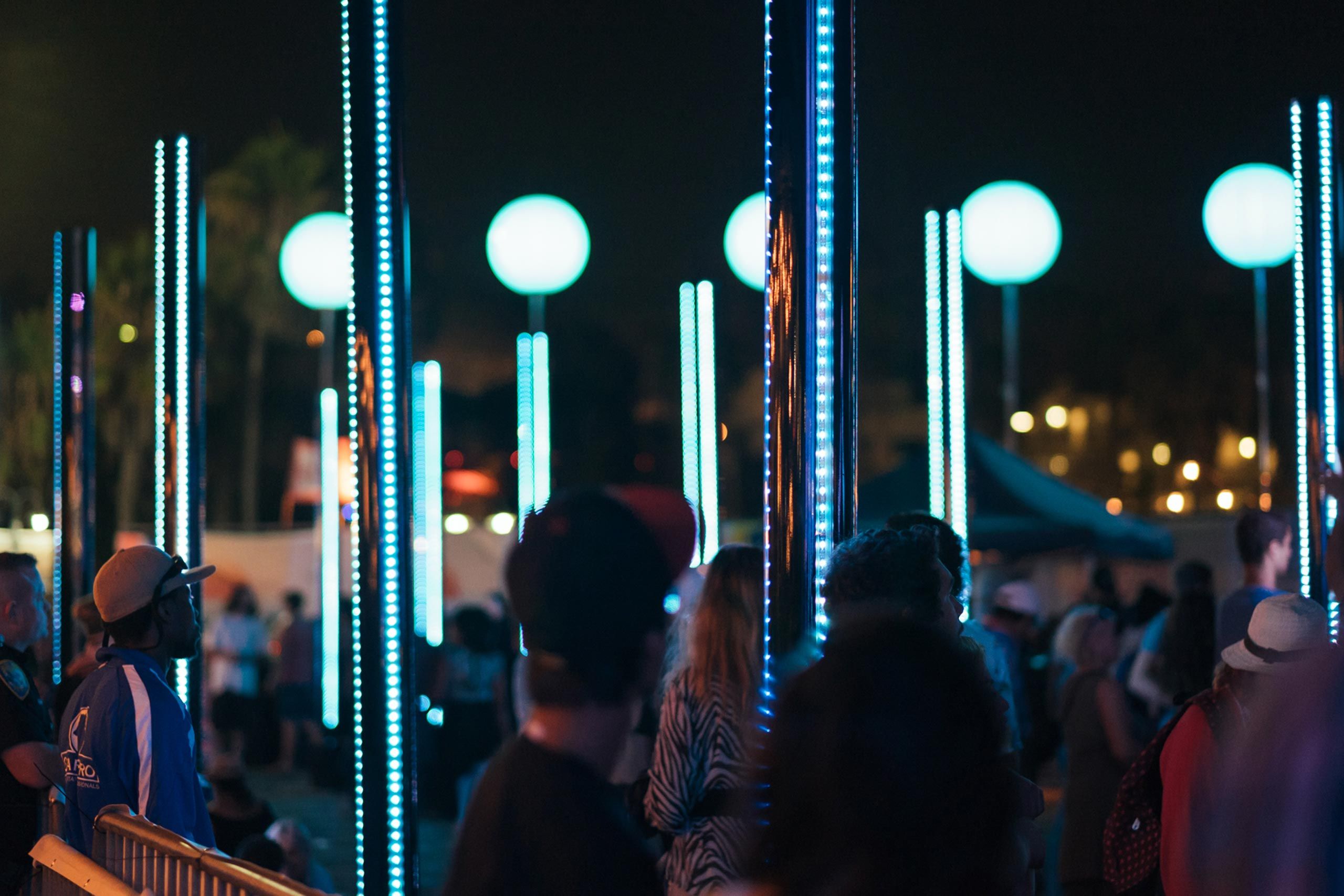 Interactive Lighting Sculpture406 For the 2015 Twilight Concert Series at the Santa Monica Pier we built an interactive lighting sculpture programmed to respond to movement gestures, crowd density, and the audio of the twilight concert series.